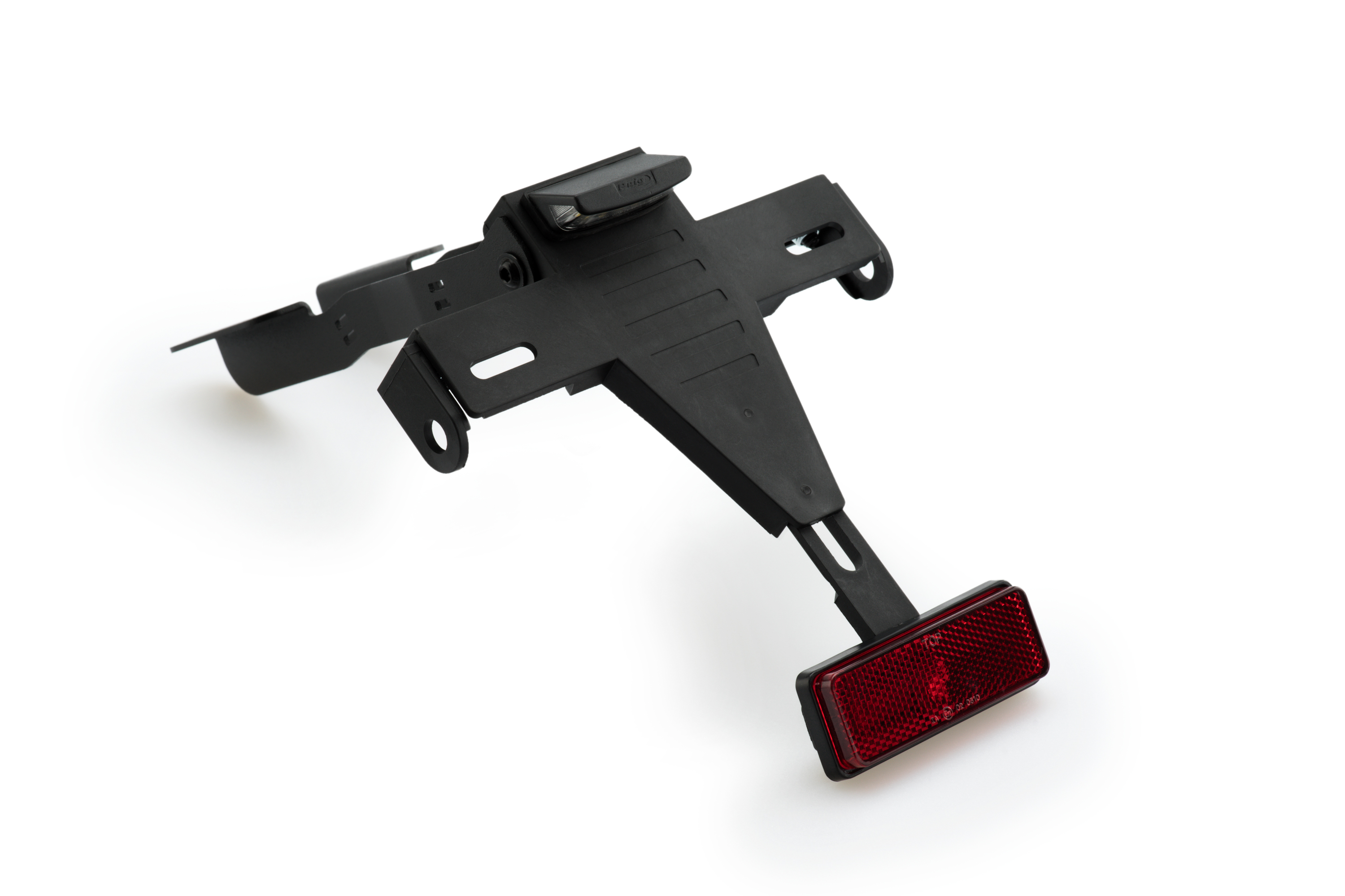 Dieser Kennzeichenhalter ist so konzipiert, dass die Original-Blinker und das Kennzeichenlicht weiterverwendet werden können.