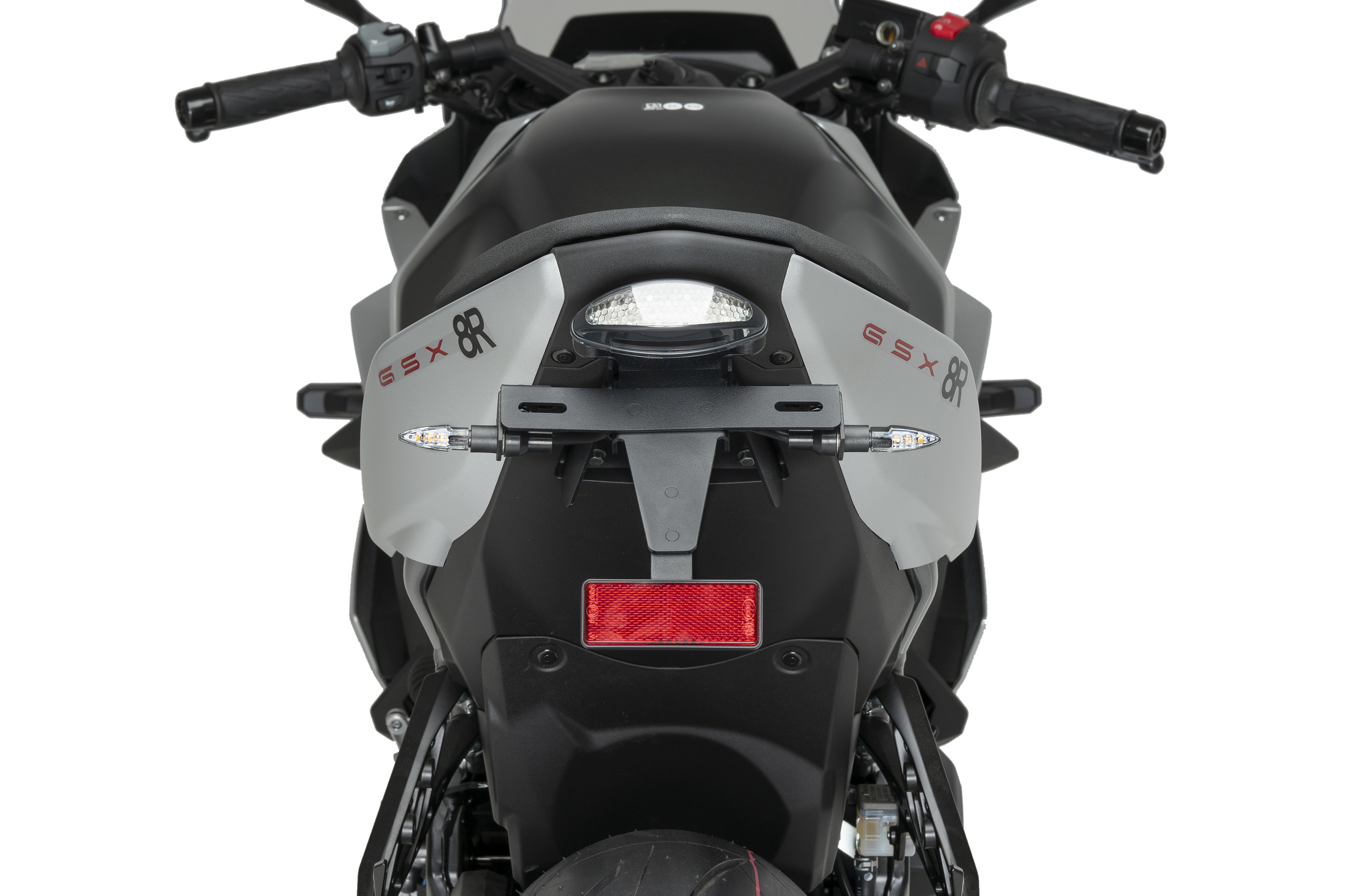 Dieser Kennzeichenhalter ist so konzipiert, dass die Original-Blinker und das Kennzeichenlicht weiterverwendet werden können.