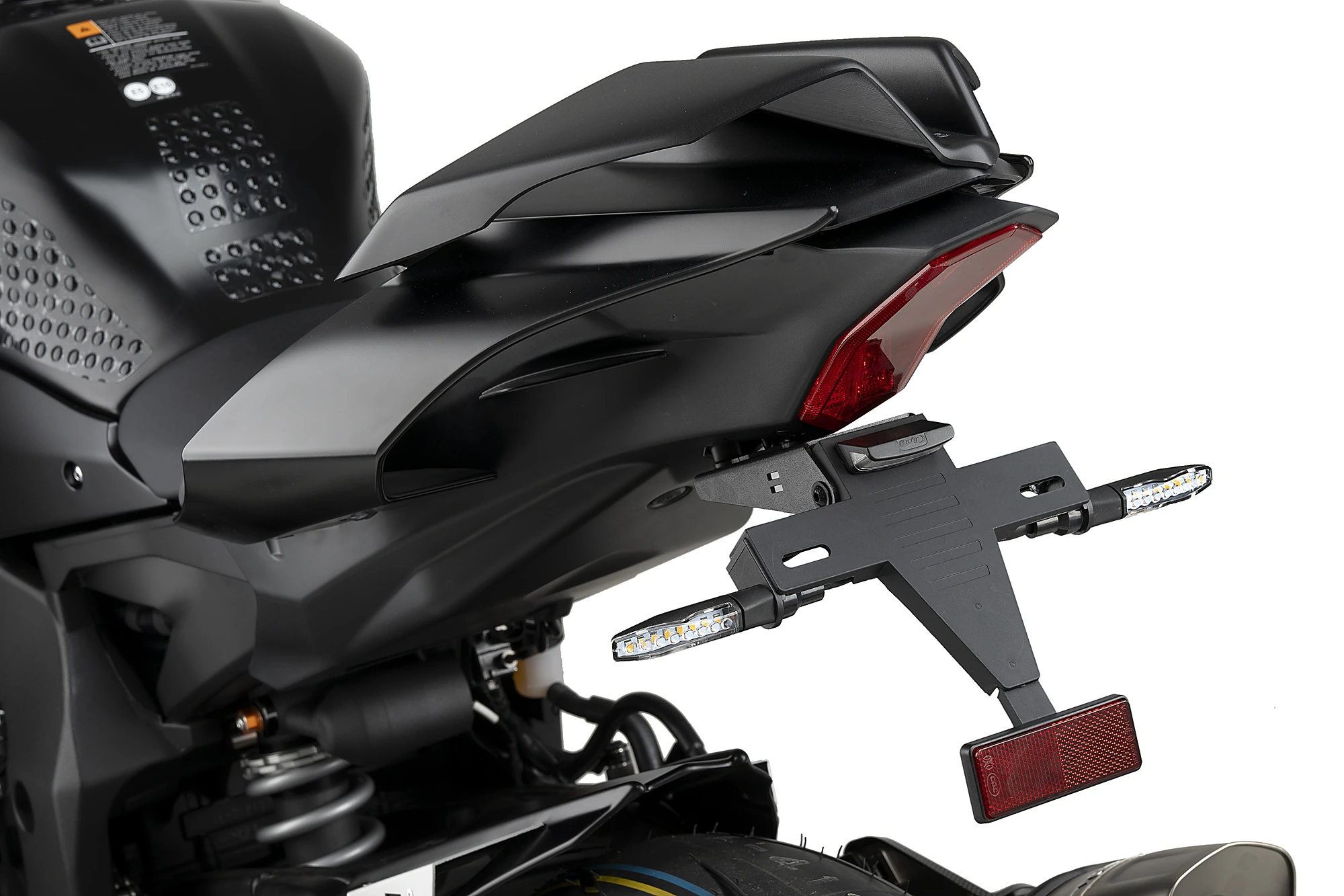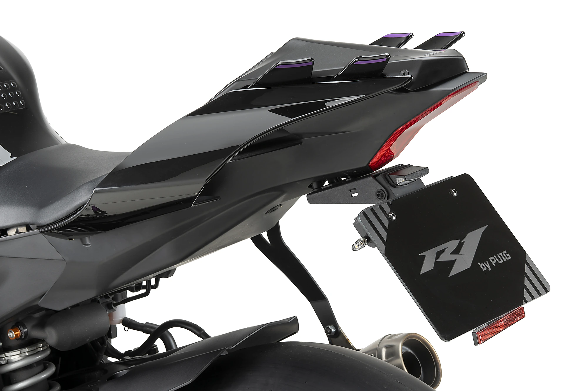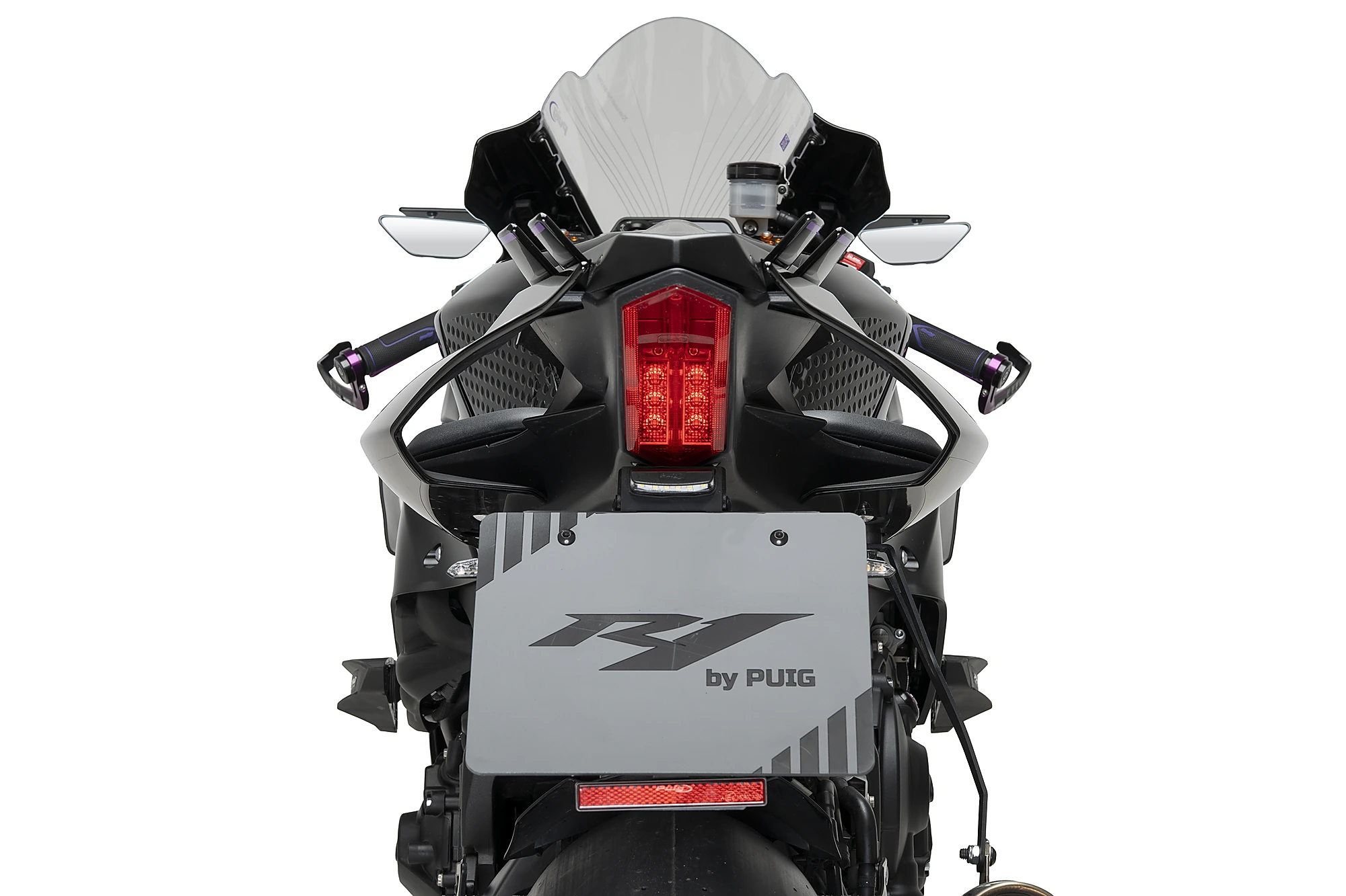 Ersetzen Sie den originalen Kennzeichenhalter Ihres Motorrads durch den Puig-Kennzeichenhalter, der dank seiner erhöhten Position Ihrem Motorrad eine sportliche Optik verleiht. Das Set kombiniert Stahlteile mit einer Epoxid-Lackierung und Polyamid-Elementen und erreicht so eine deutliche Gewichtsreduzierung im Vergleich zum Originalhalter.