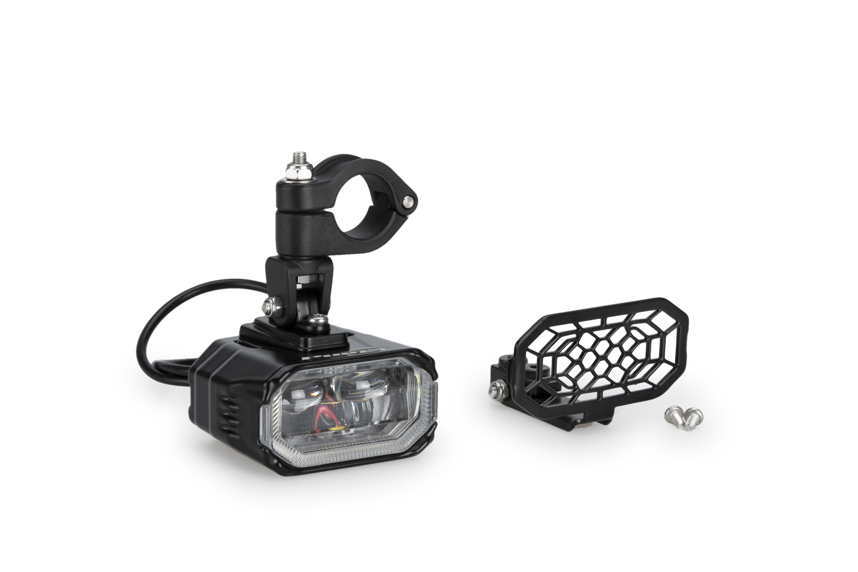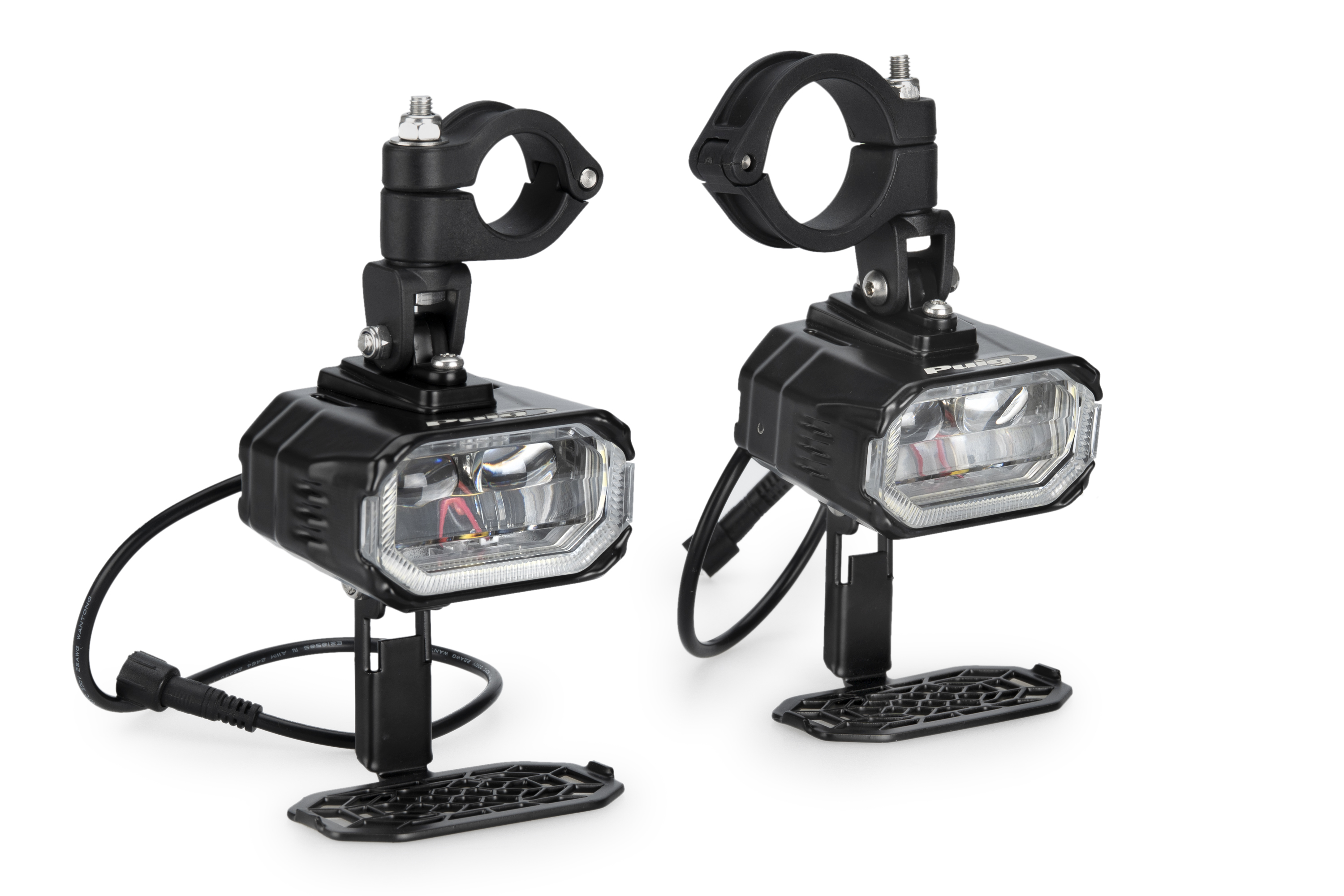 Enthält alle Zubehörteile (Verkabelungssatz + Schalter) zur Montage an Schutzbügeln mit einem Durchmesser von 23-25mm. Für die Montage an der Vorderseite des Motorrads, Verfügbarkeit prüfen.