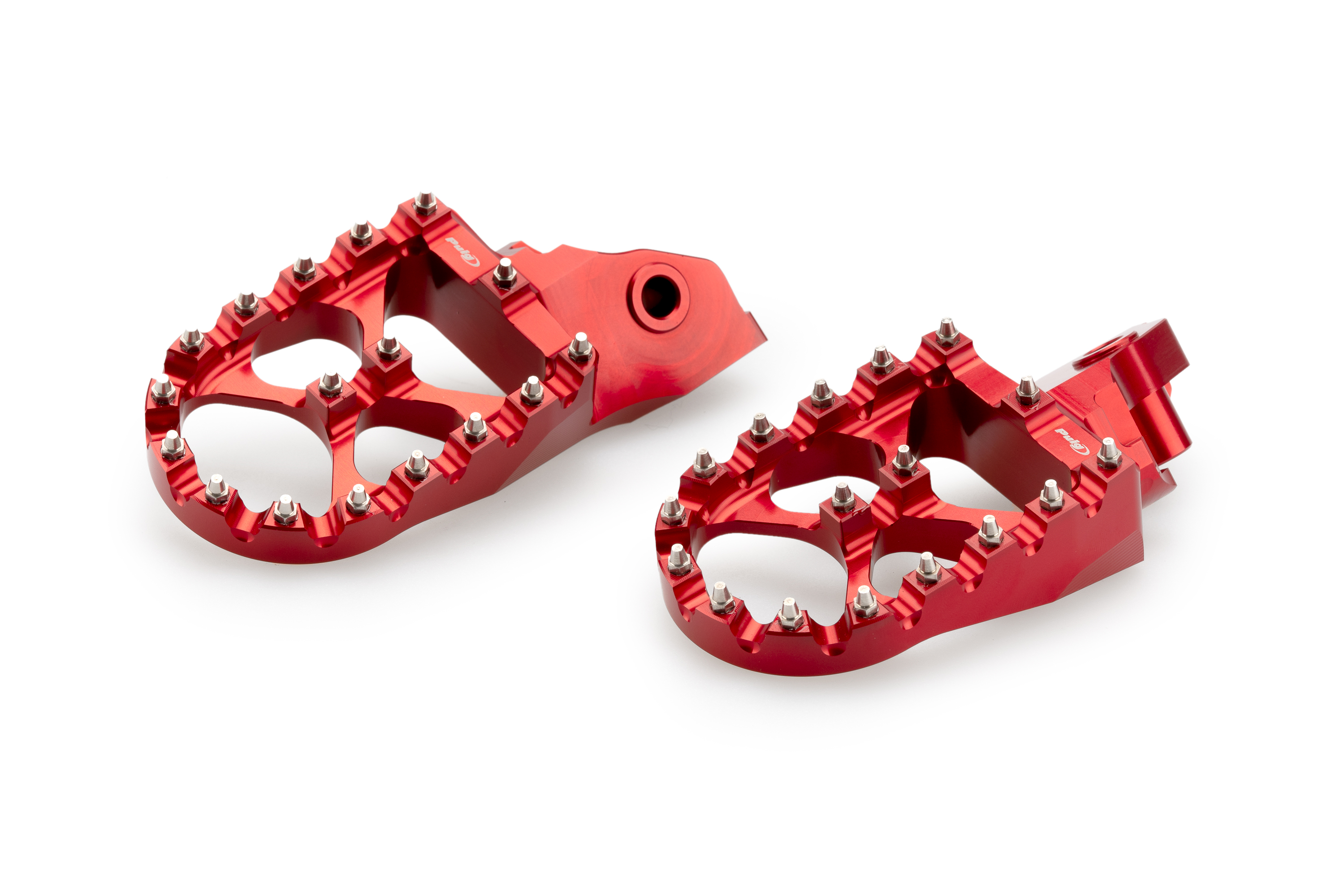 Um maximalen Grip zu garantieren, enthalten die Off-Road-Fussrasten Einsätzte aus Edelstahl, die im Falle eines Sturzes oder Verschleißes als Ersatzteil erworben werden können.