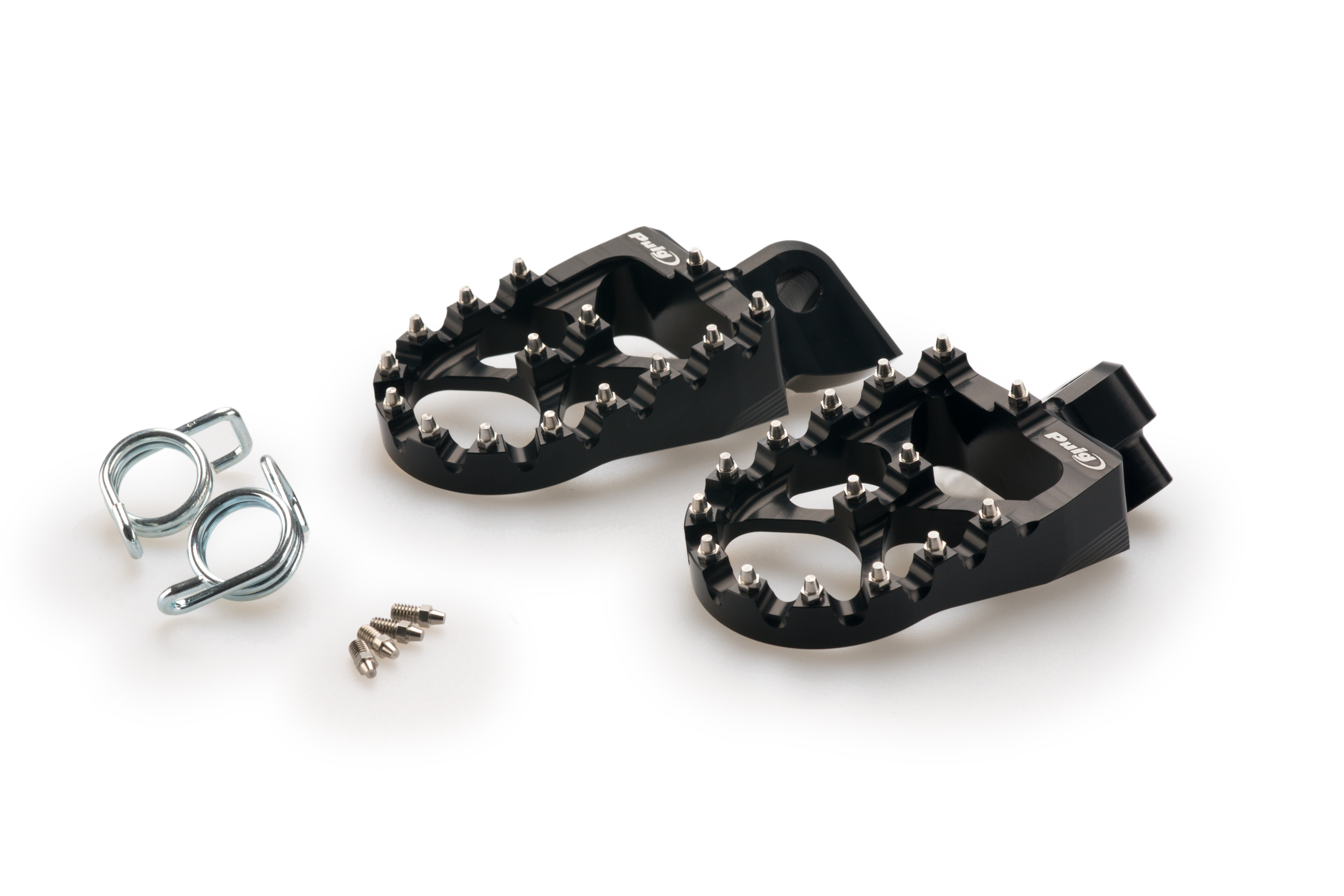 Um maximalen Grip zu garantieren, enthalten die Off-Road-Fussrasten Einsätzte aus Edelstahl, die im Falle eines Sturzes oder Verschleißes als Ersatzteil erworben werden können.