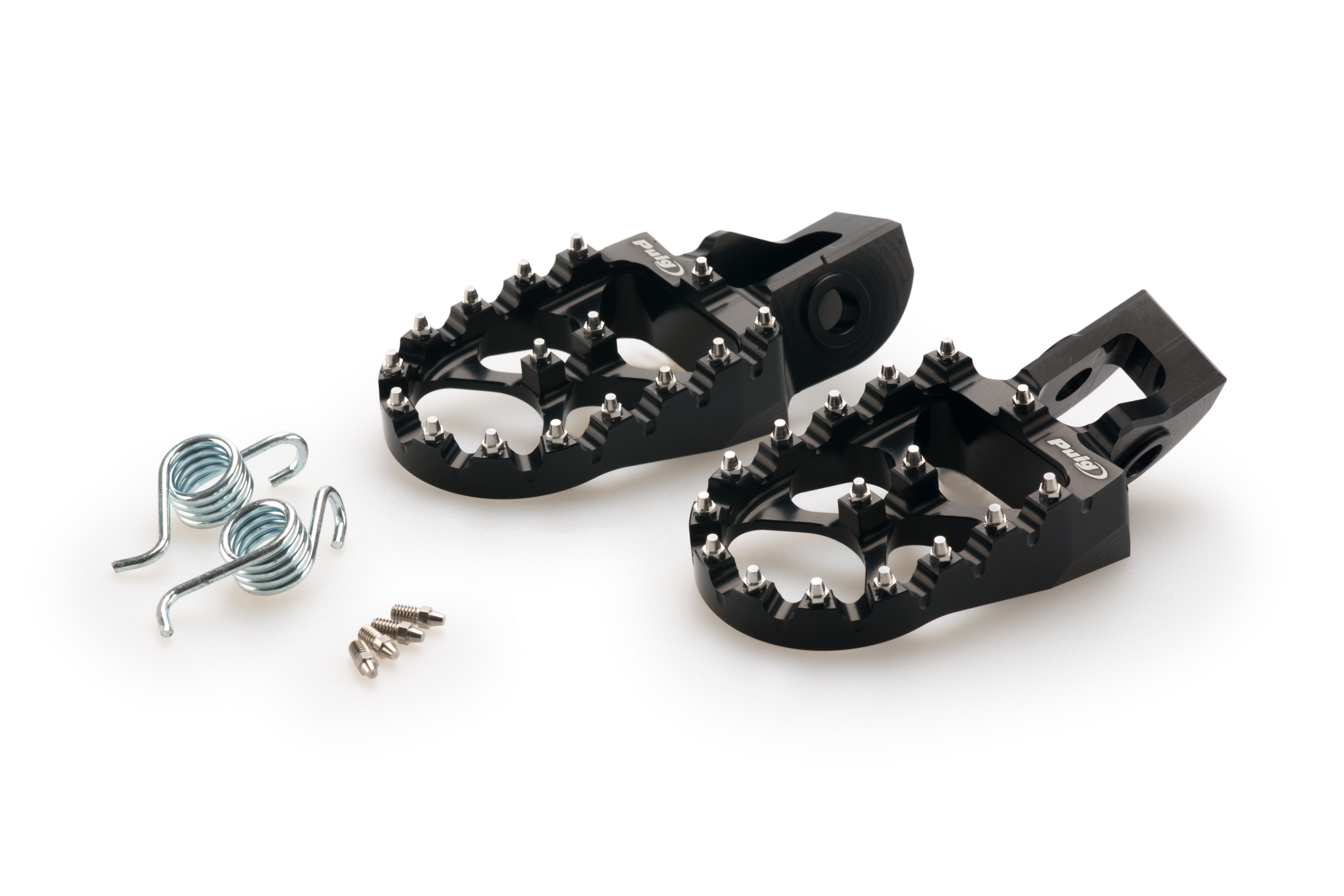 Um maximalen Grip zu garantieren, enthalten die Off-Road-Fussrasten Einsätzte aus Edelstahl, die im Falle eines Sturzes oder Verschleißes als Ersatzteil erworben werden können.