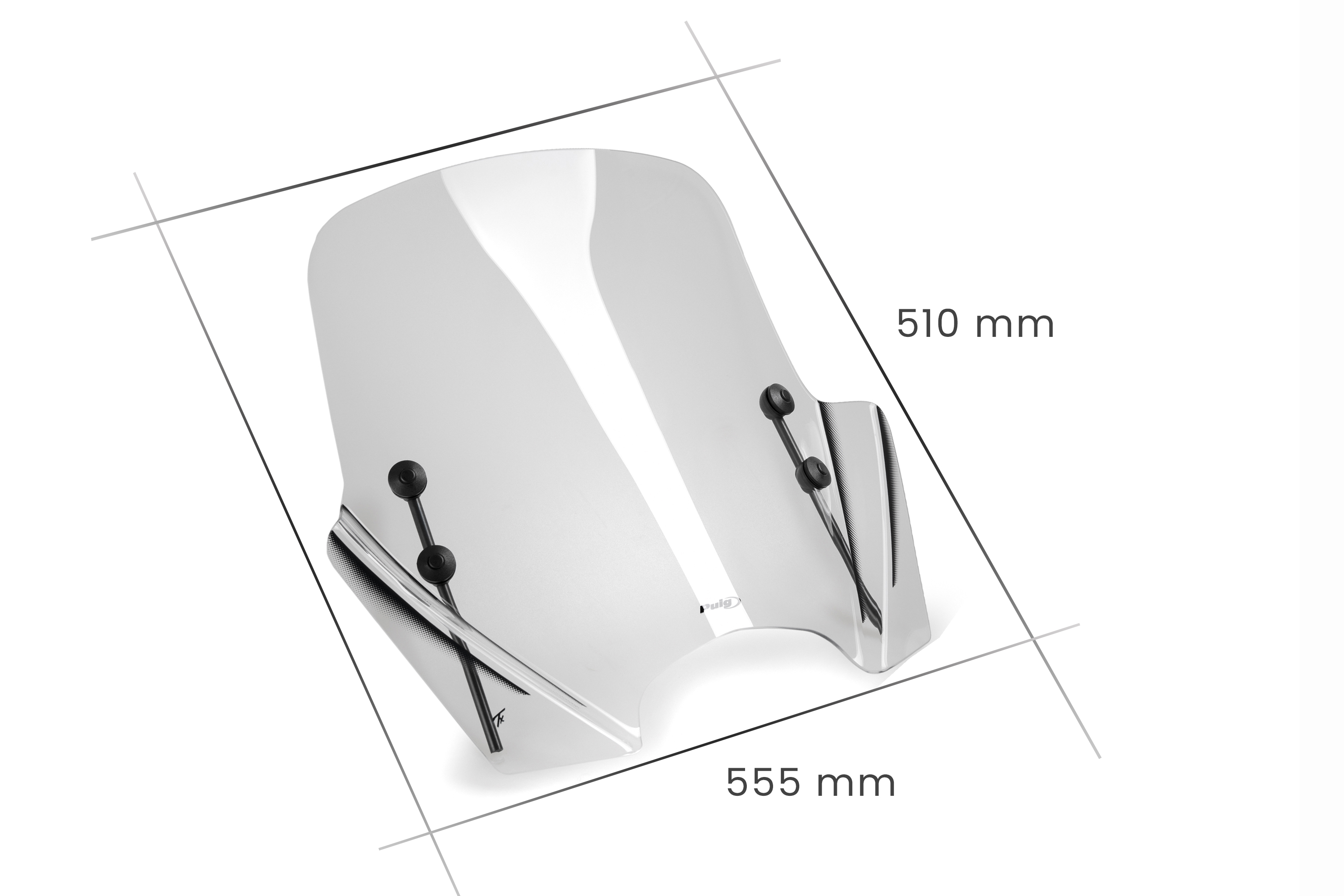 Die T.X. Windschutzscheibe von Puig wurde für die wettbewerbsstärksten Modelle des Marktes entwickelt. Es ist aus 4 mm dicken PMMA (Polymethylmethacrylat). Desswegen ist es besonders stoßfest und hat eine gute aerodynamische Form.