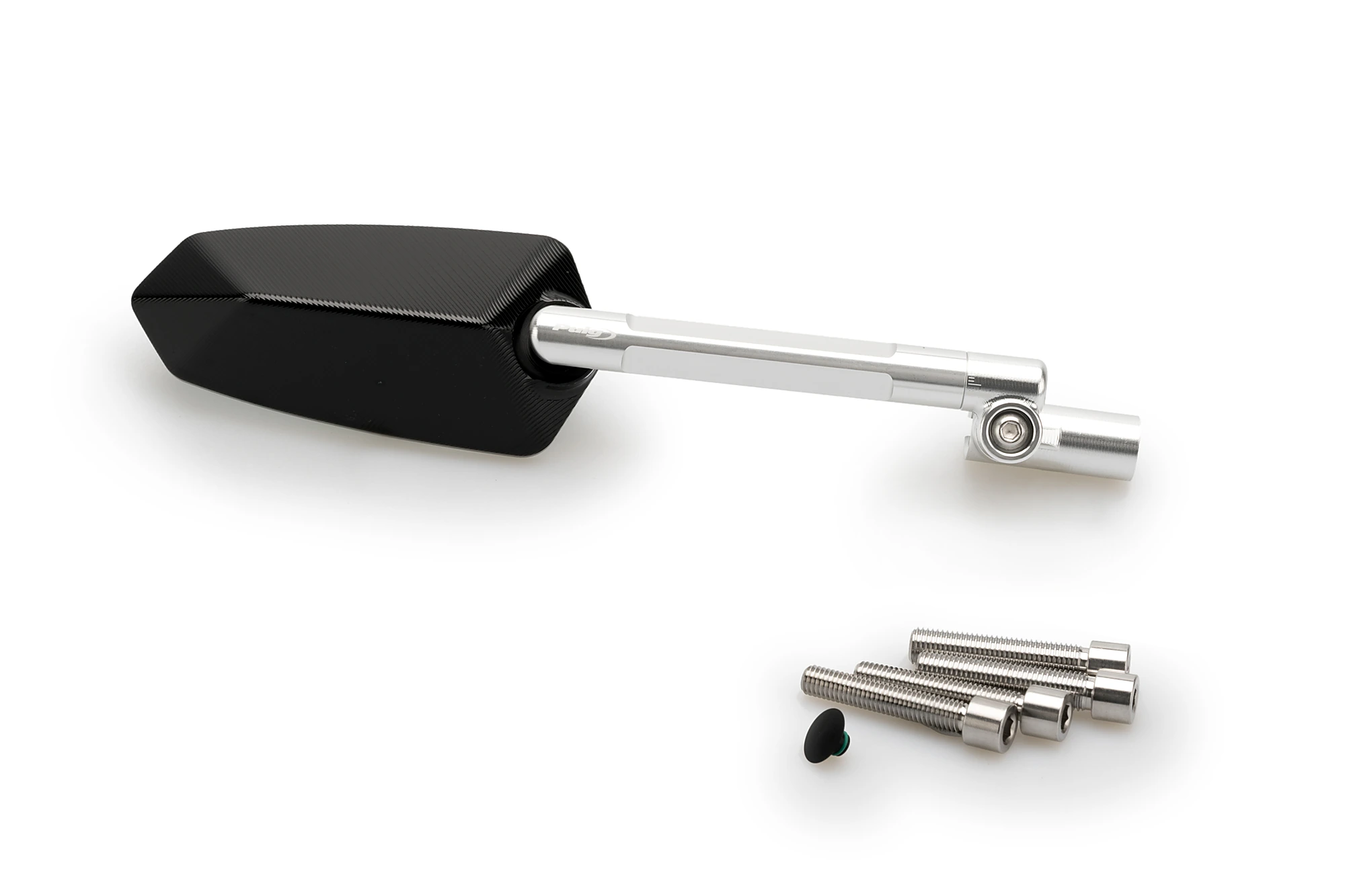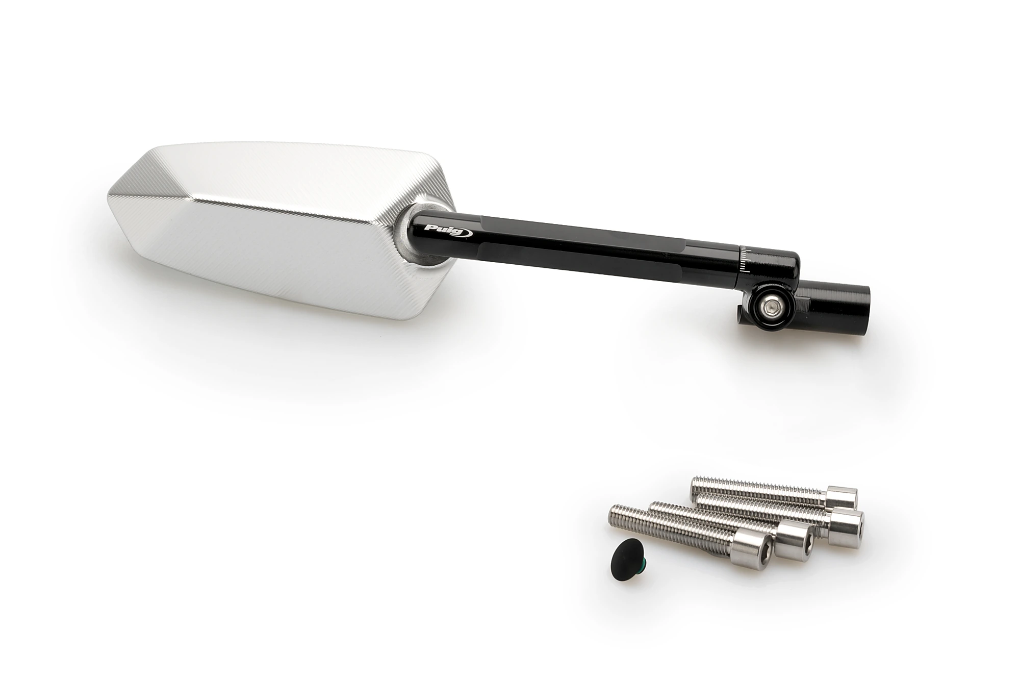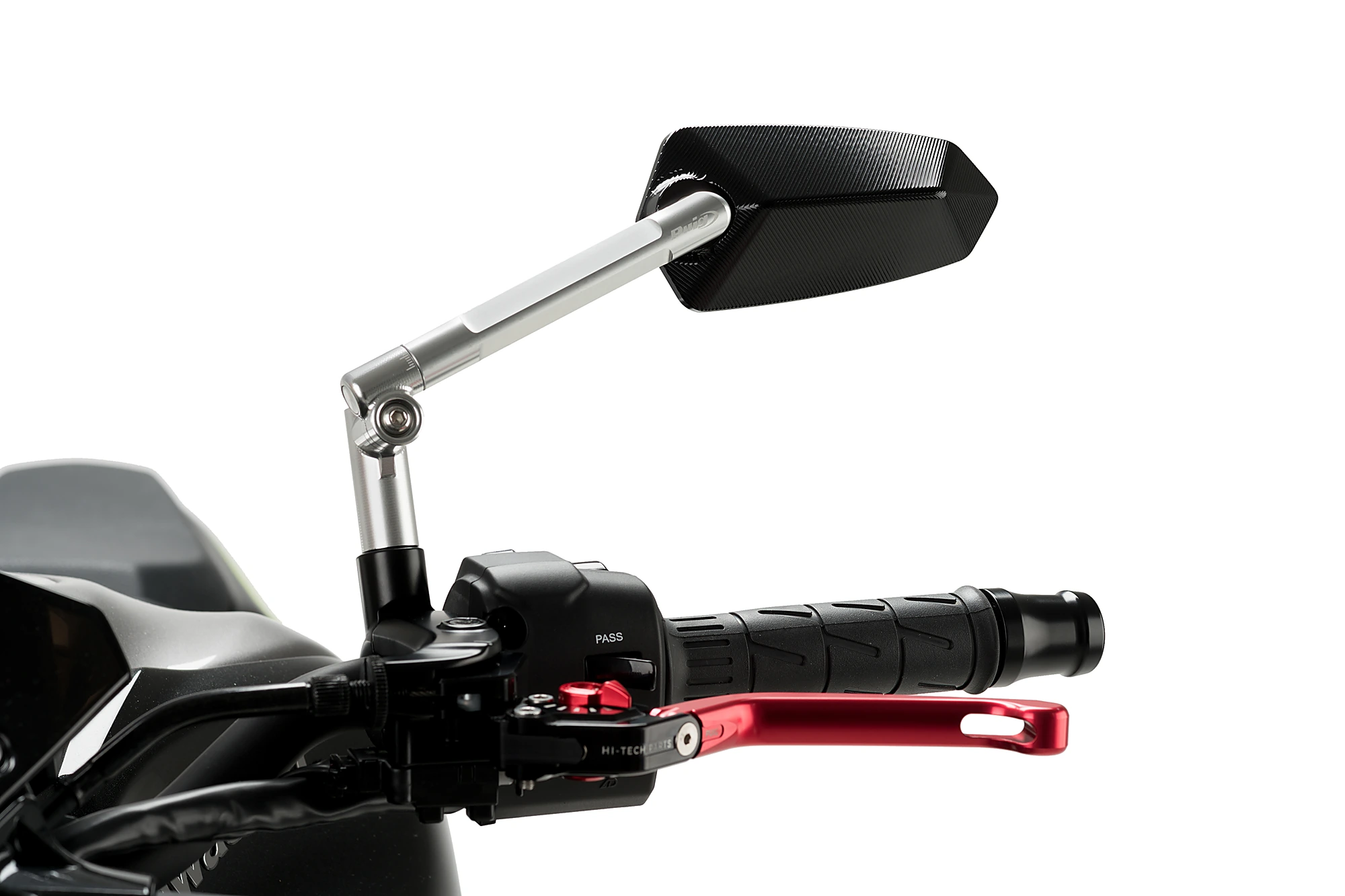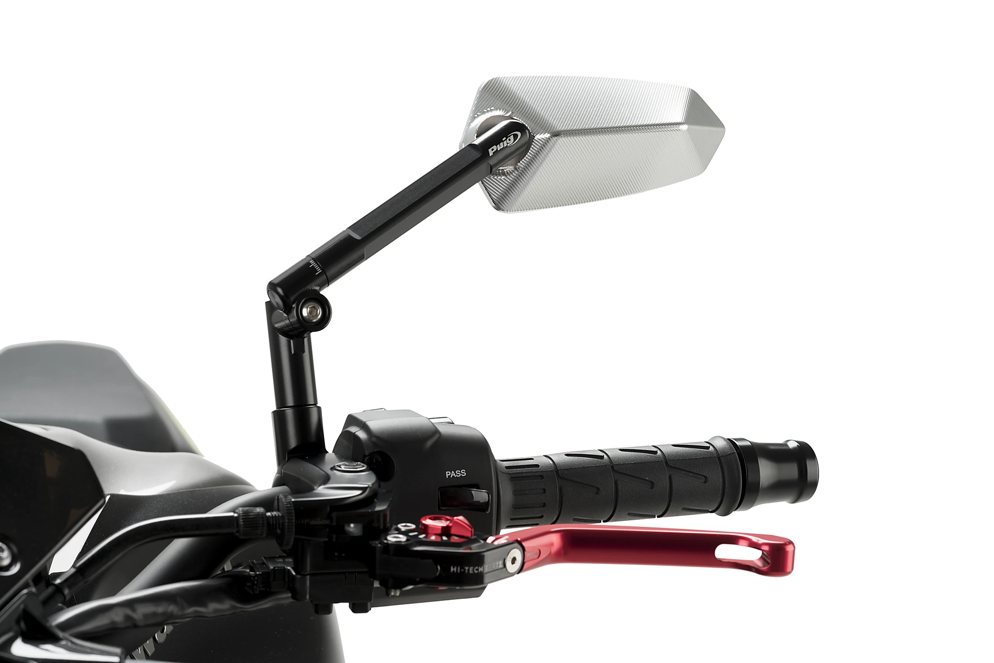 Dieses Zubehör wurde gemäß den Puig Hi-Tech-Teileparametern entwickelt. Er ist nicht homologiert. Dank seines Kugelgelenksystems ist der Spiegel sowohl in der Höhe als auch in der Neigung einstellbar. Außerdem können die Spiegel mithilfe von Adaptern sowohl an die Spiegelstange wie auch an die Originalverkleidung angepasst werden.