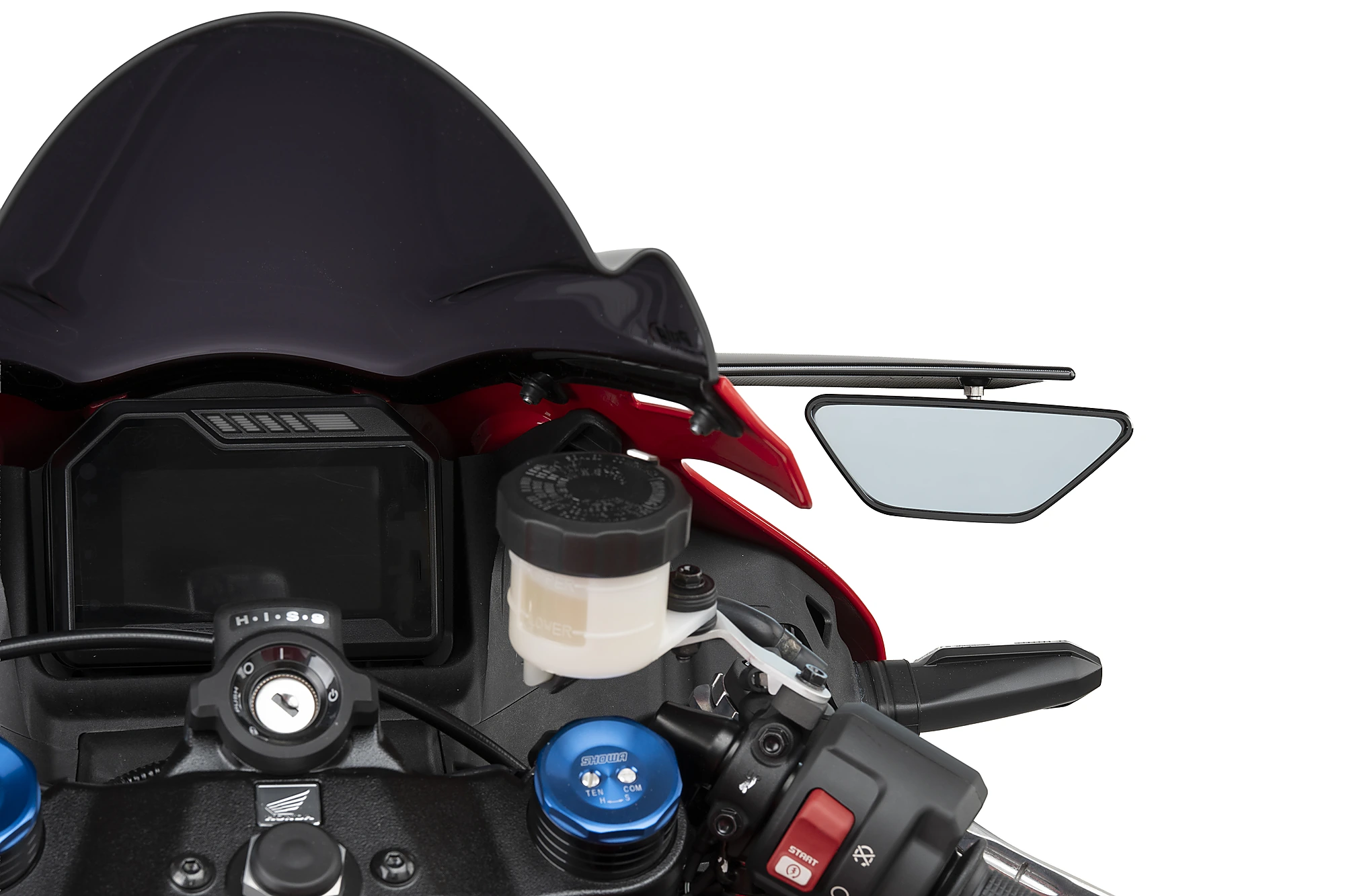Der Spoiler-Spiegel wurde mit virtueller Windkanal-Technologie entwickelt, dank Puigs umfangreicher Erfahrung in Top-Wettbewerben wie dem MotoGP und SBK-Weltmeisterschaften, inspiriert von den neuesten Fortschritten auf dem Gebiet der Aerodynamik. Es ist aus einem Aluminiumblock gefräst und weist eine elegante schwarze Eloxierung für ein großartiges Finish auf.