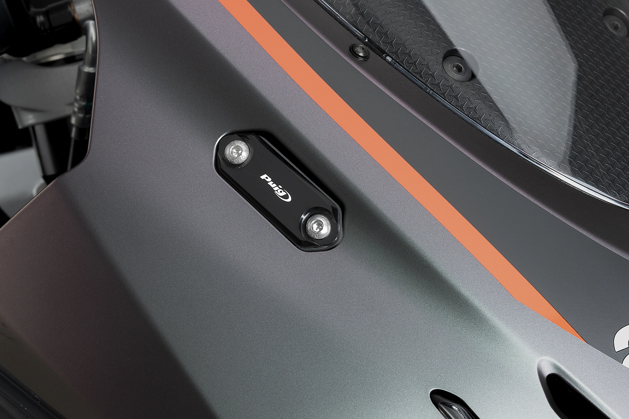 Verstecken Sie die Löcher in der Verkleidung lhres Motorrades, die entstehen, wnn die originalen Spiegel auf PUIG Spiegeln getauscht werden. Es gibt für div. Modelle spezifische Abdeckungen.