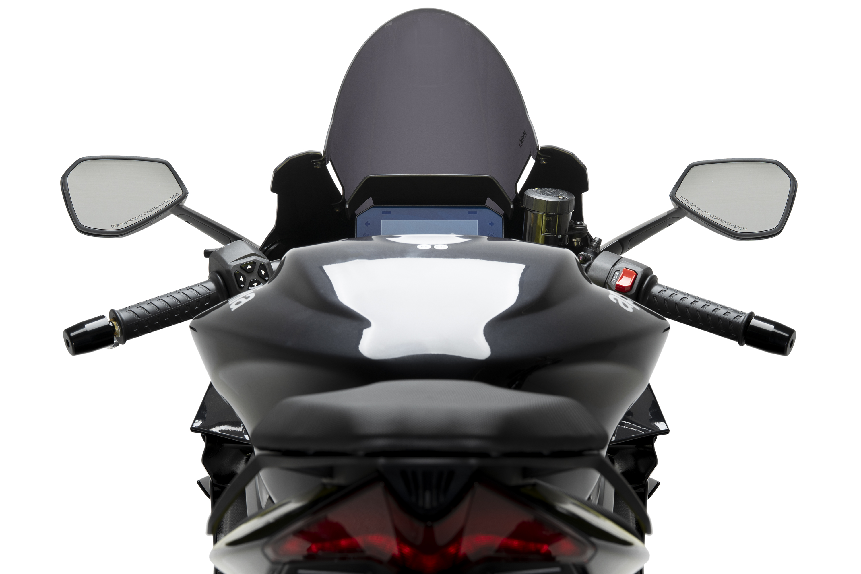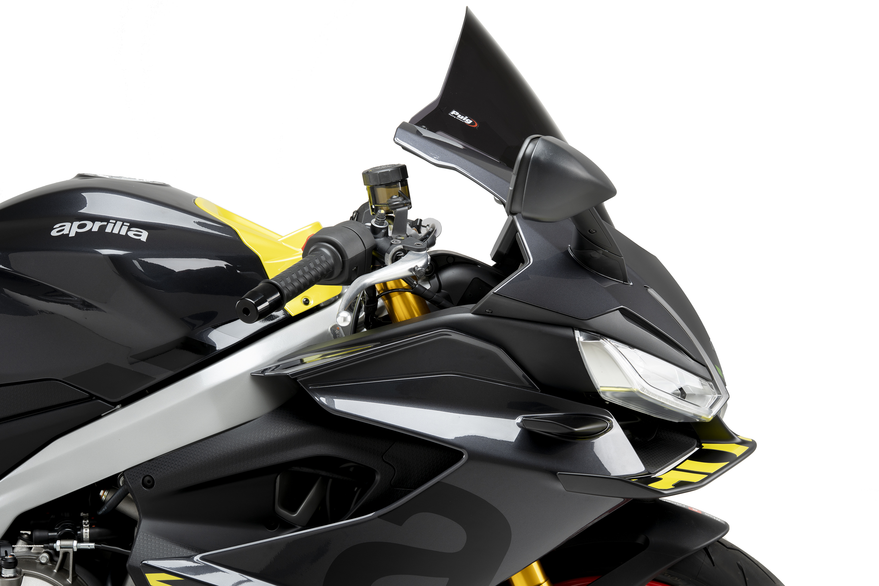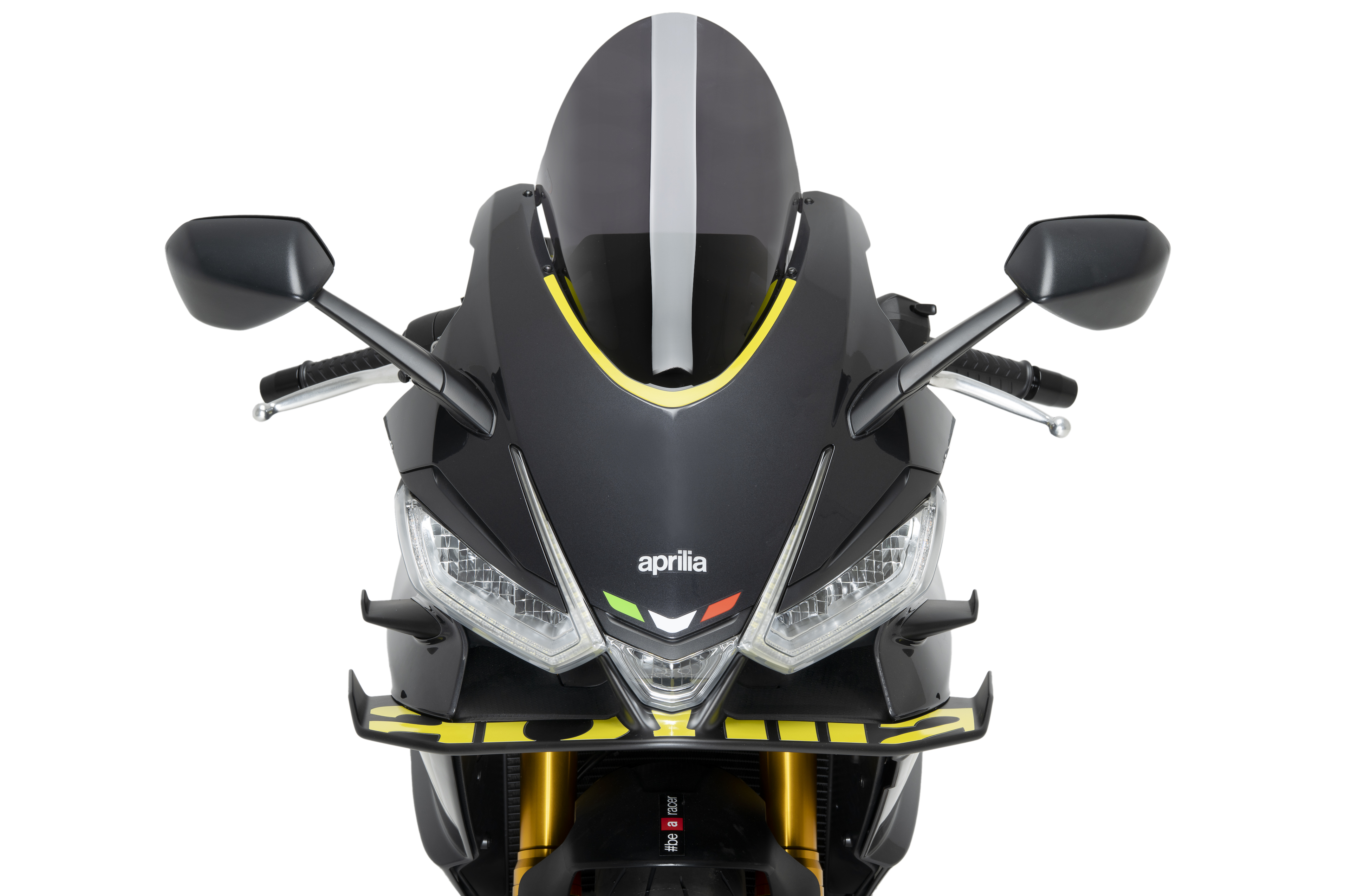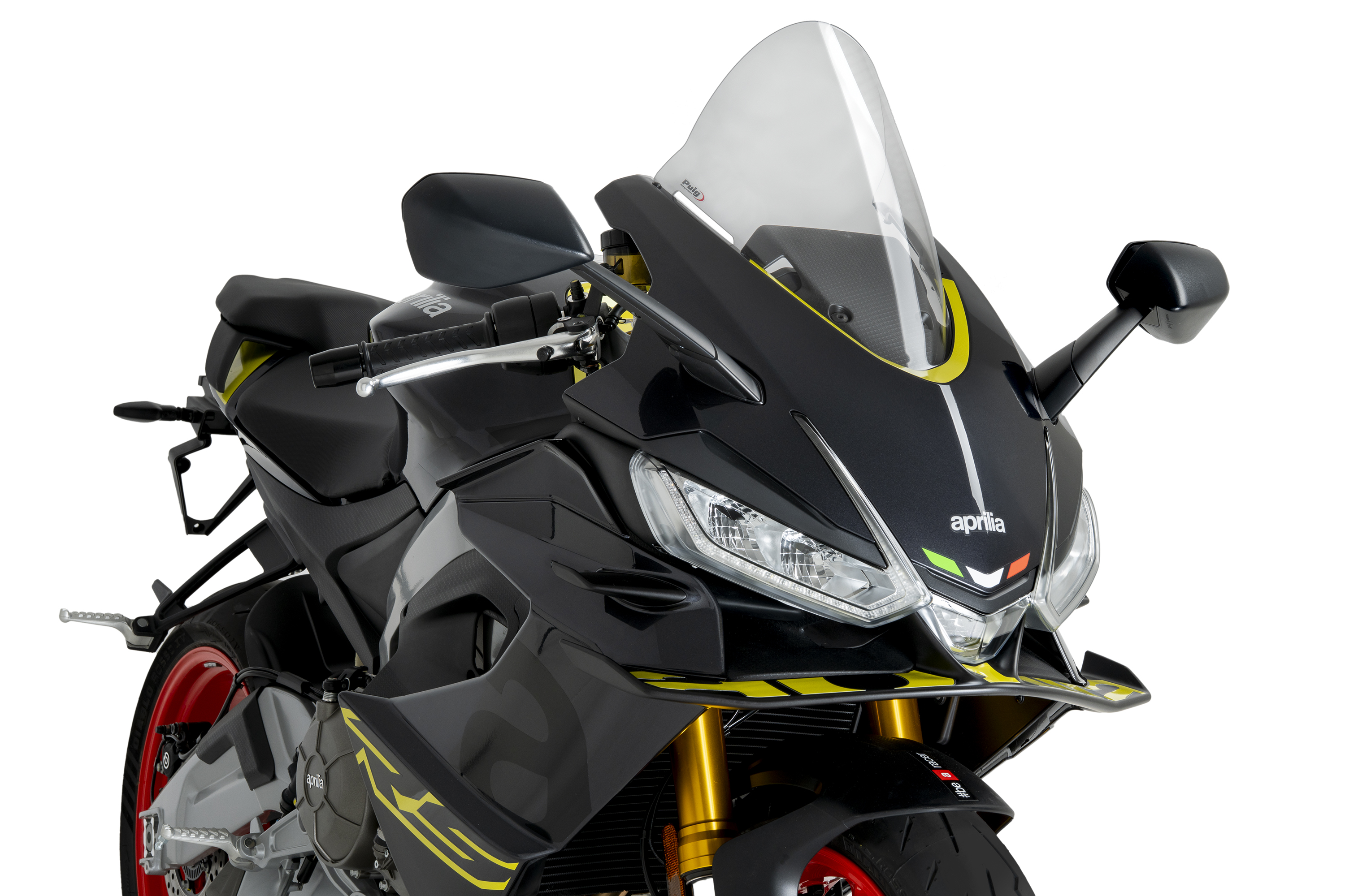 Die R-Racer-Scheiben sind so Entwickelt, dass der Fahrer eine perfekte Sicht hat und dabei aerodynamisch effizienter sind als Originalscheiben. Sie wurden im virtuellen Windkanal umfassend getestet, um dem Fahrer Verbesserungen des aerodynamischen Koeffizienten (Cx) und des aerodynamischen Schutzes zu garantieren. Dank ihrer doppelten Höhe lenken sie den Wind ab, der sonst auf Helm und Oberkörper trifft. Zeitgleich nehmen die seitlichen Einkerbungen den Luftstrom auf und leiten ihn zur Seite, um den Luftdruck von den Schultern des Fahrers zu verringern.