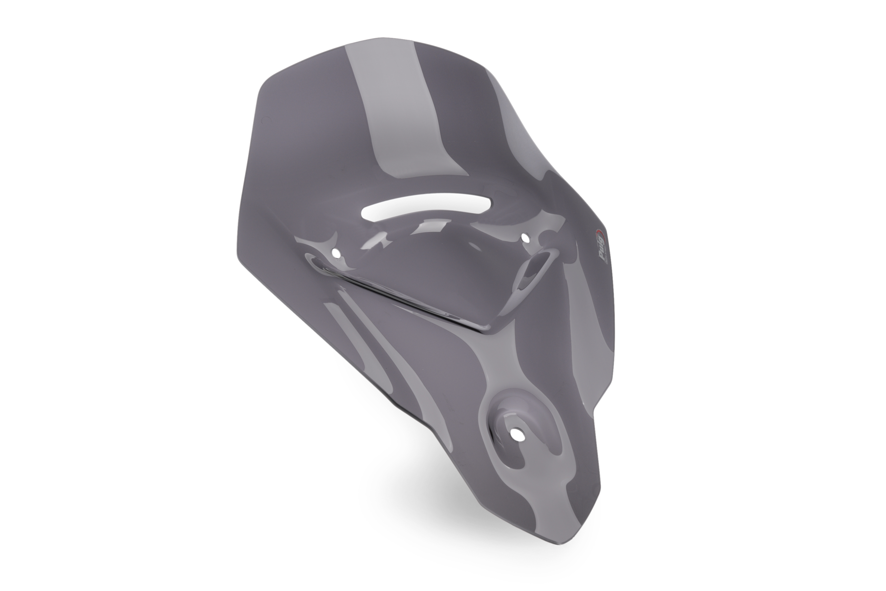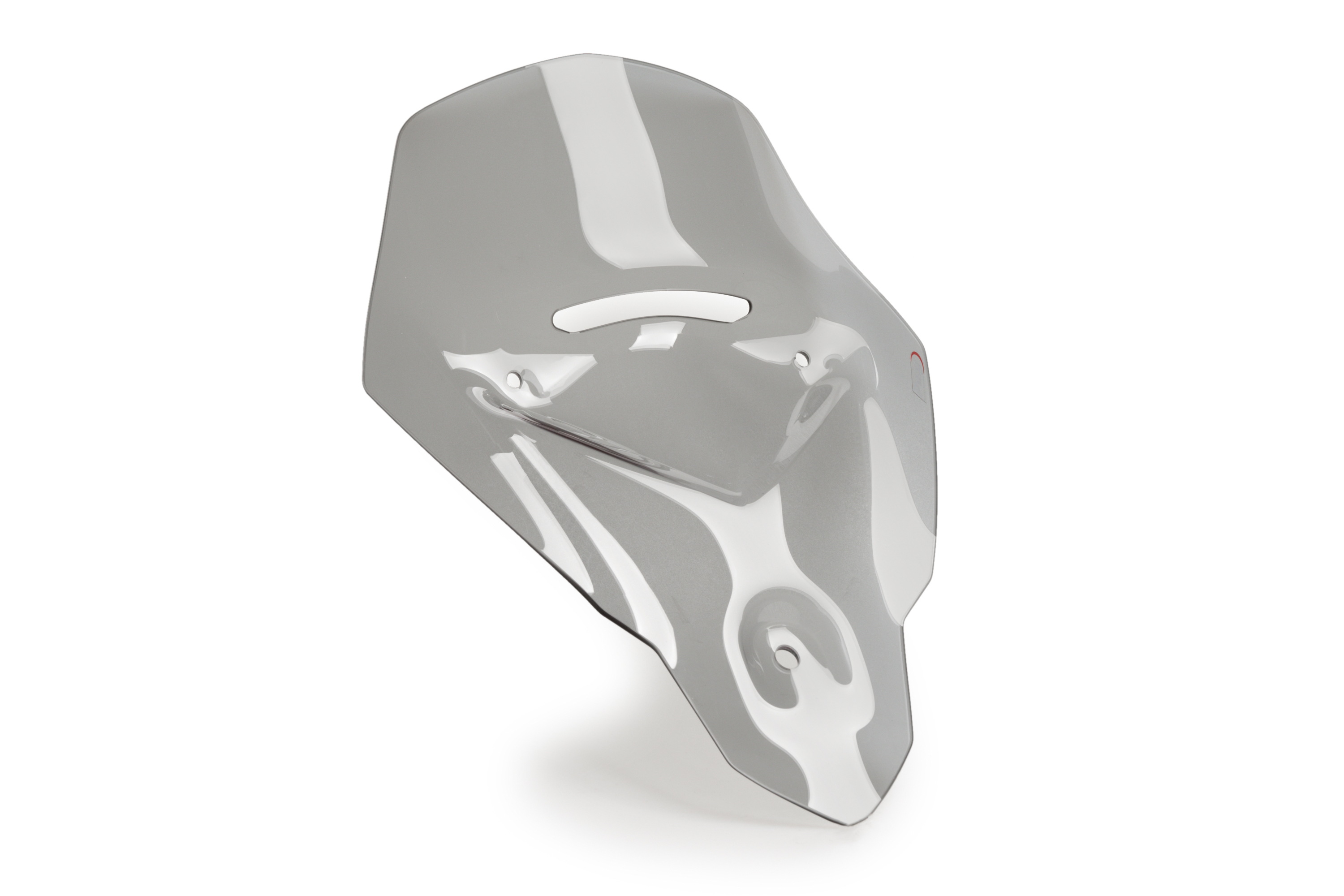 Seine kompakten Grösse, die geringfügig kleiner als die originale Scheibe sind, bieten dem Fahrer einen bemerkenswerten Schutz und ein Gefühl des Komforts sowie eine sportliche Ästhetik, ohne das Sichtfeld des Fahrers zu beeinträchtigen.