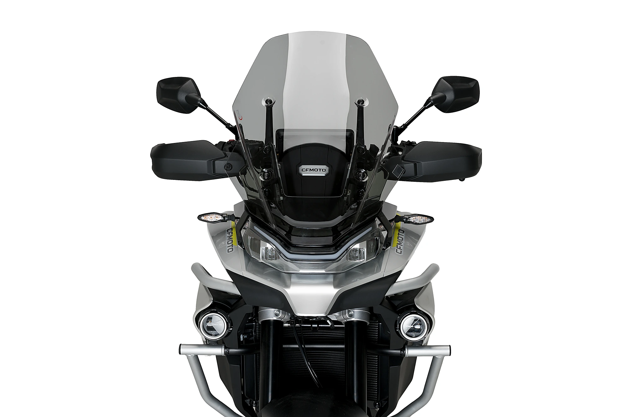 Mit Gesamtabmessungen von 440 mm Breite und 566 mm Höhe ist der Puig Touring-Bildschirm 105 mm höher als der ursprüngliche CF Moto 800 MT-Bildschirm.