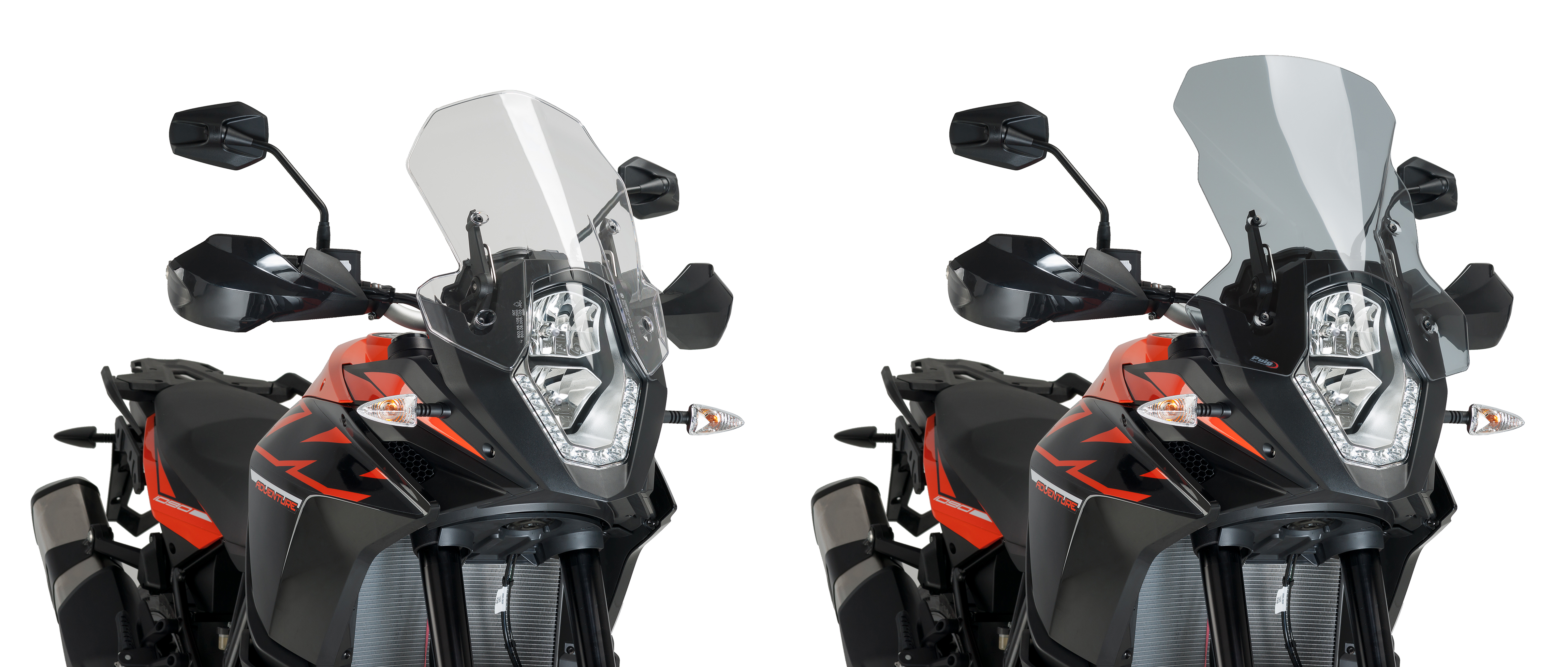 Die von Puig in Barcelona hergestellten Touringscheiben wurden mit dem Ziel entwickelt, den Fahrer aerodynamisch zu schützen, ohne seine Sicht auf den gelände zu beeinträchtigen. Darüber hinaus passen diese Scheiben dank ihrer großen Farbpalette und unterschiedlichen Größen perfekt zum Abenteuerstil und zur Ästhetik der Trail-Modelle.