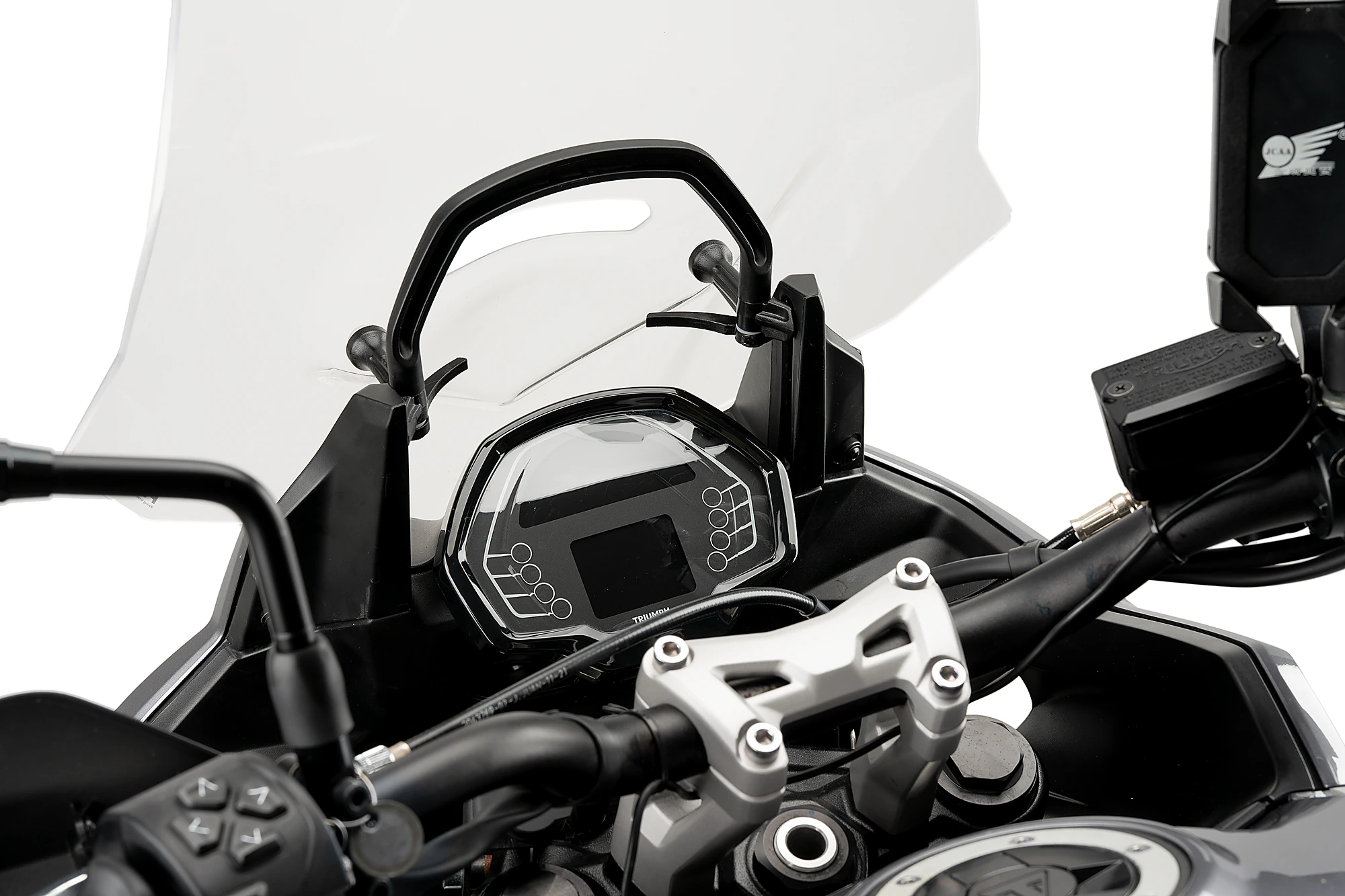 Dieses diskrete und funktionale Zubehörteil ist eine Verstärkungsstütze für den Hebemechanismus, der serienmäßig in der Triumph Tiger Sport 660 2022 eingebaut ist. Dadurch kann die Scheibe jederzeit in der vom Fahrer gewünschten Position fixiert werden, sodass sie bei hohen Geschwindigkeiten nicht herunterfällt.