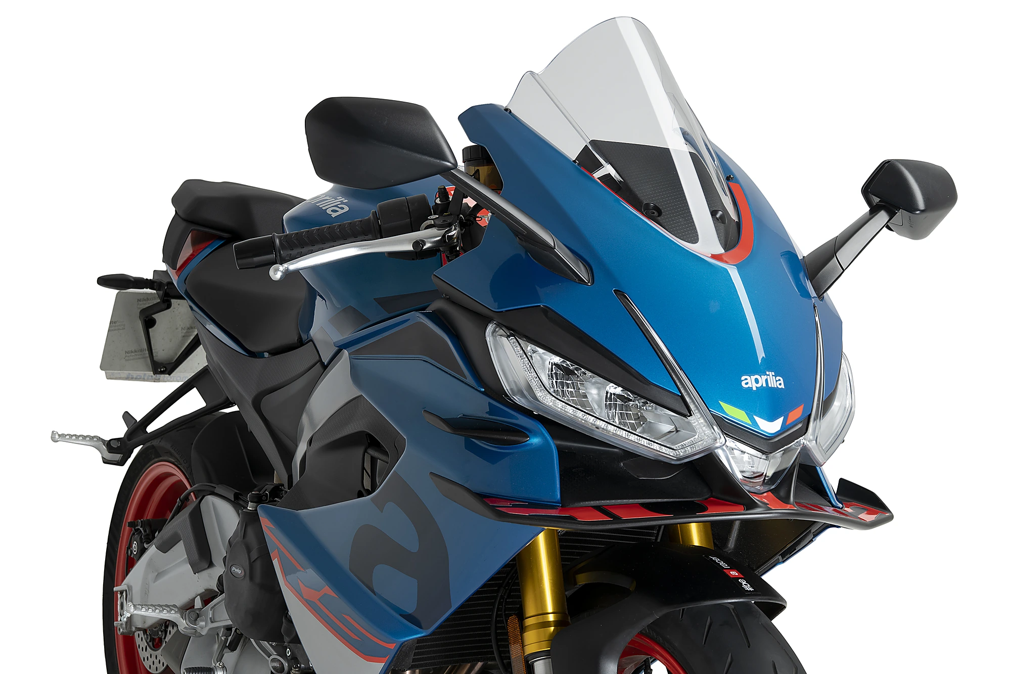 Die Puig Z-Racing Verkleidungsscheibe für die Aprilia RS 660 wurde entwickelt, um den sportlichen und aggressiven Charakter der Frontpartie des Motorrads zu unterstreichen, mit einer klar vom Rennsport inspirierten Optik. Ihr Design folgt exakt den Linien der Originalverkleidung, jedoch mit einem radikaleren, leistungsorientierten Ansatz.