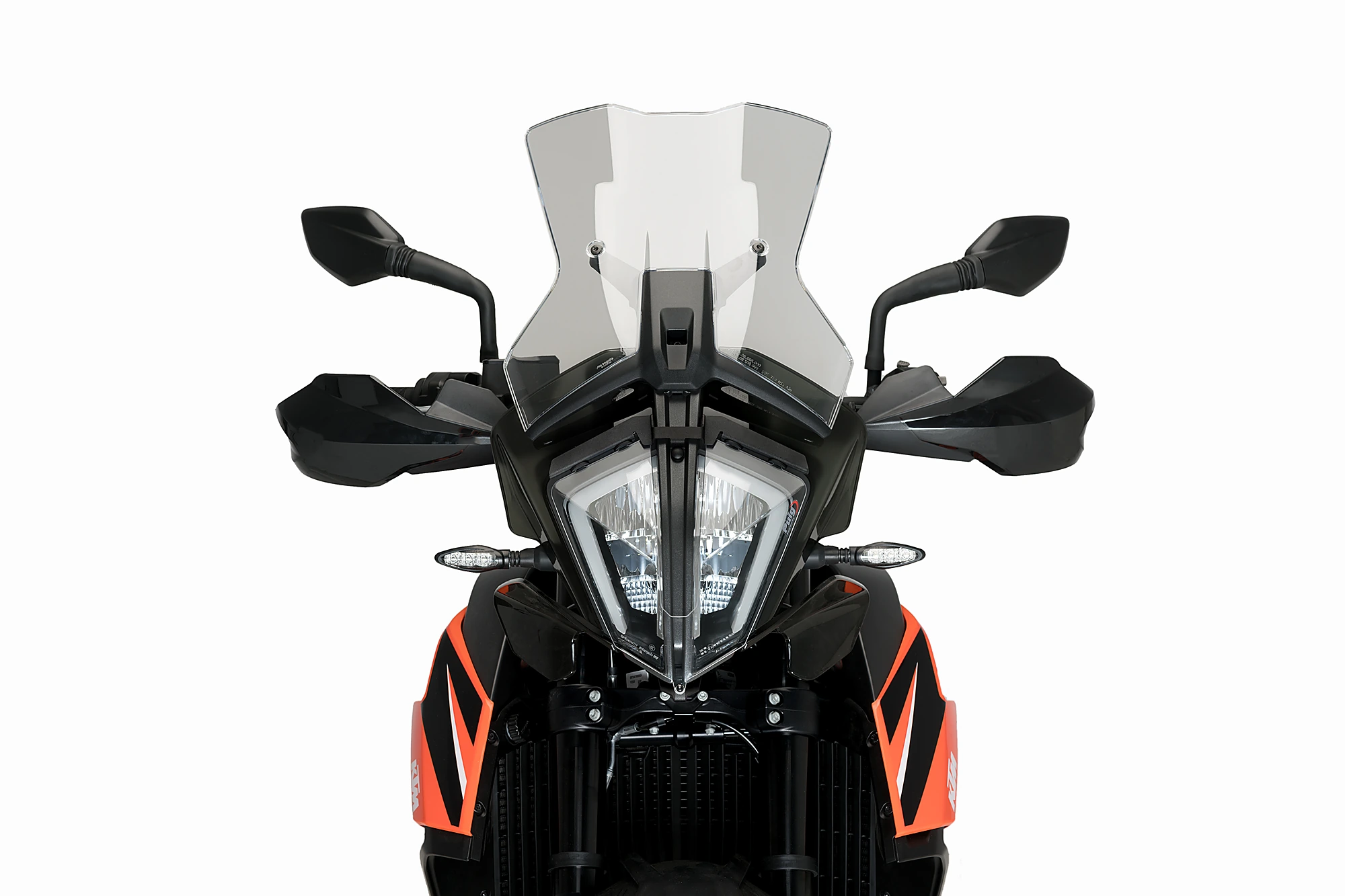 Diese Schutzvorrichtungen, je nach Modell aus Polycarbonat oder Acryl gefertigt, bieten einen effektiven Schutz, ohne die Sicht oder das ursprüngliche Design des Fahrzeugs zu beeinträchtigen. Die Halterungen bestehen aus Stahl, sind mit schwarzer Epoxidfarbe beschichtet und gewährleisten eine hohe Witterungsbeständigkeit sowie die Erhaltung der Originalästhetik des Motorrads.
