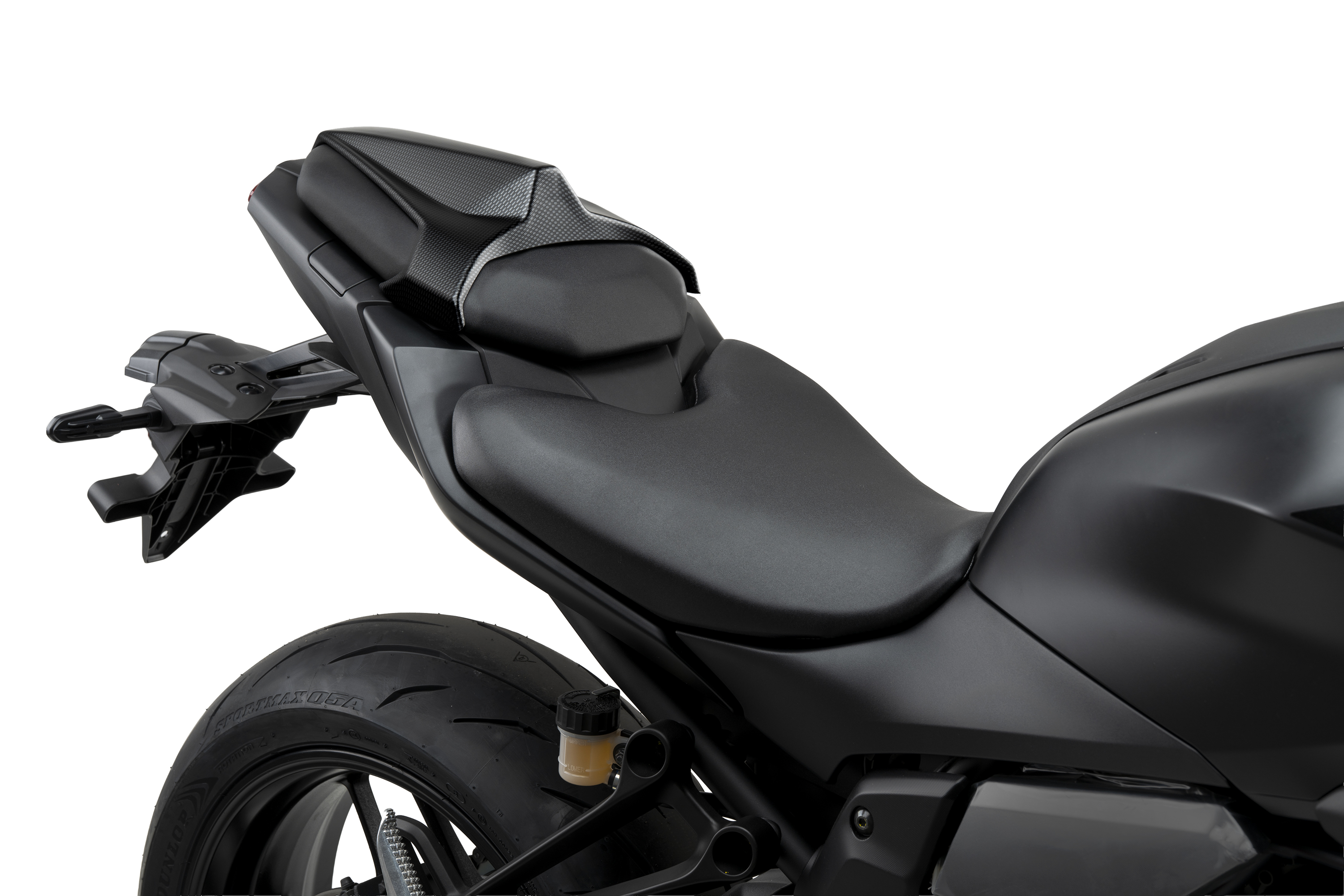Außerdem integrieren wir im vorderen Bereich der Heckverkleidung einen 4 mm dicken schwarzen Neopren-Schaum, um den Komfort des Fahrers bei hohen Geschwindigkeiten zu verbessern. Entworfen und gefertigt in der Nähe des Circuit de Catalunya in Montmeló, Barcelona, ist dieses Teil aus mattem schwarzen ABS-Kunststoff, glänzendem Schwarz oder aus einem strapazierfähigen und leichten 3 mm dicken Carbonimitat gefertigt. Die Montage ist sehr einfach, da die Puig-Heckverkleidung dasselbe oder ein ähnliches Befestigungssystem verwendet, um die Montage so einfach wie möglich zu gestalten.