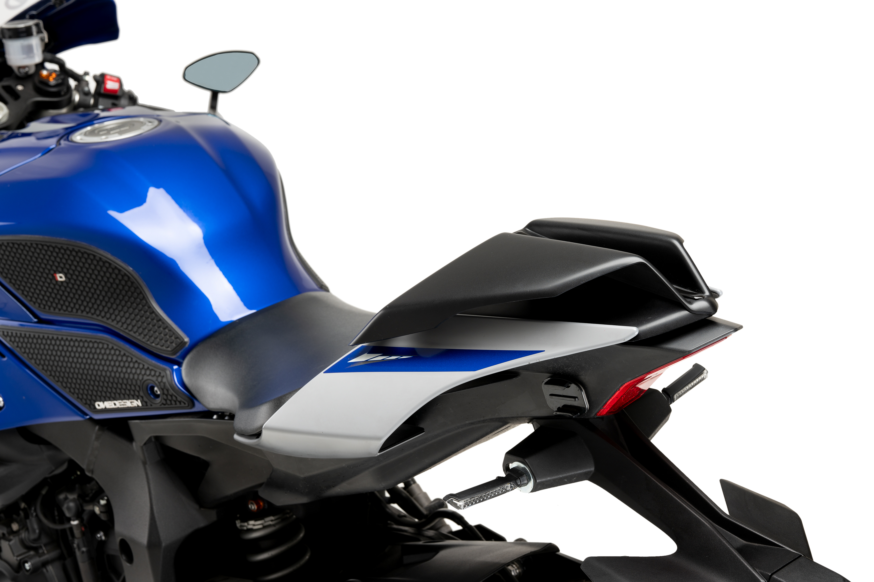 Verwandle deine Yamaha YZF R1 mit dem Puig-Heck und verleihe deinem Motorrad eine sportliche und exklusive Note. Puig präsentiert seine neue Linie von Heckverkleidungen der nächsten Generation mit einem Zweiteilig-Design, das die sportlichen Linien des MotoGP-Wettbewerbs nachahmt. Durch das Entfernen des Soziussitzes wird die Form der R1 gestreamlined, wodurch ihr Design aggressiver und dynamischer wirkt. Der hintere Teil der Verkleidung zeigt eine Ästhetik, die von Einzelfahrer-Rennmaschinen inspiriert ist, was dem Motorrad eine unvergleichliche sportliche Persönlichkeit und Charakter verleiht.