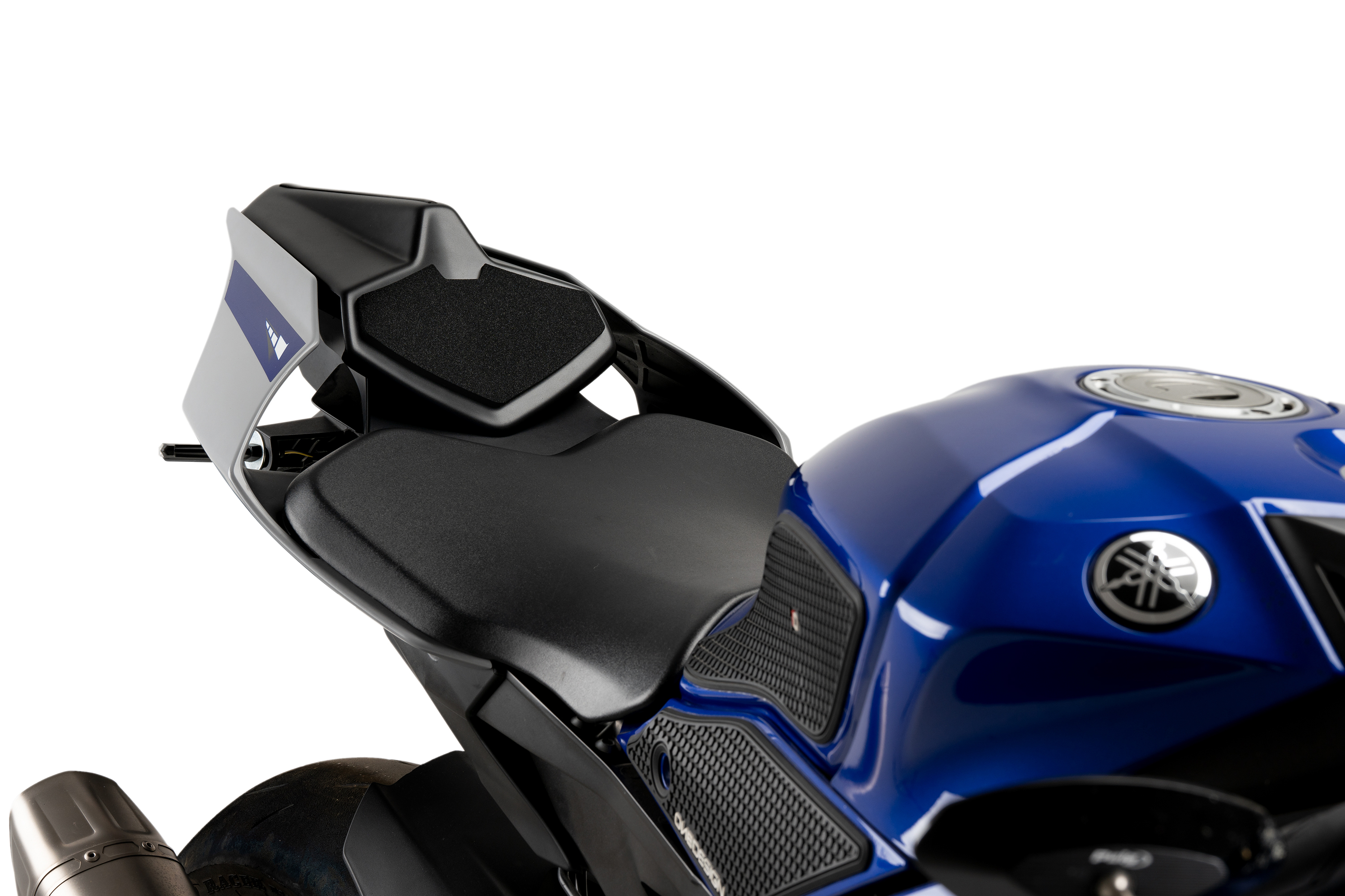 Außerdem integrieren wir im vorderen Bereich der Heckverkleidung einen 4 mm dicken schwarzen Neopren-Schaum, um den Komfort des Fahrers bei hohen Geschwindigkeiten zu verbessern. Entworfen und gefertigt in der Nähe des Circuit de Catalunya in Montmeló, Barcelona, ist dieses Teil aus mattem schwarzen ABS-Kunststoff, glänzendem Schwarz oder aus einem strapazierfähigen und leichten 3 mm dicken Carbonimitat gefertigt. Die Montage ist sehr einfach, da die Puig-Heckverkleidung dasselbe oder ein ähnliches Befestigungssystem verwendet, um die Montage so einfach wie möglich zu gestalten.