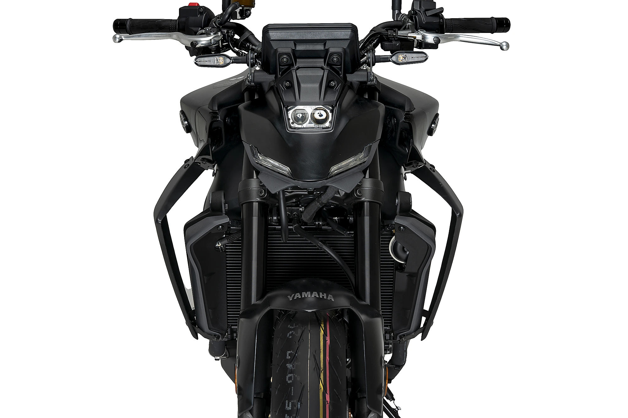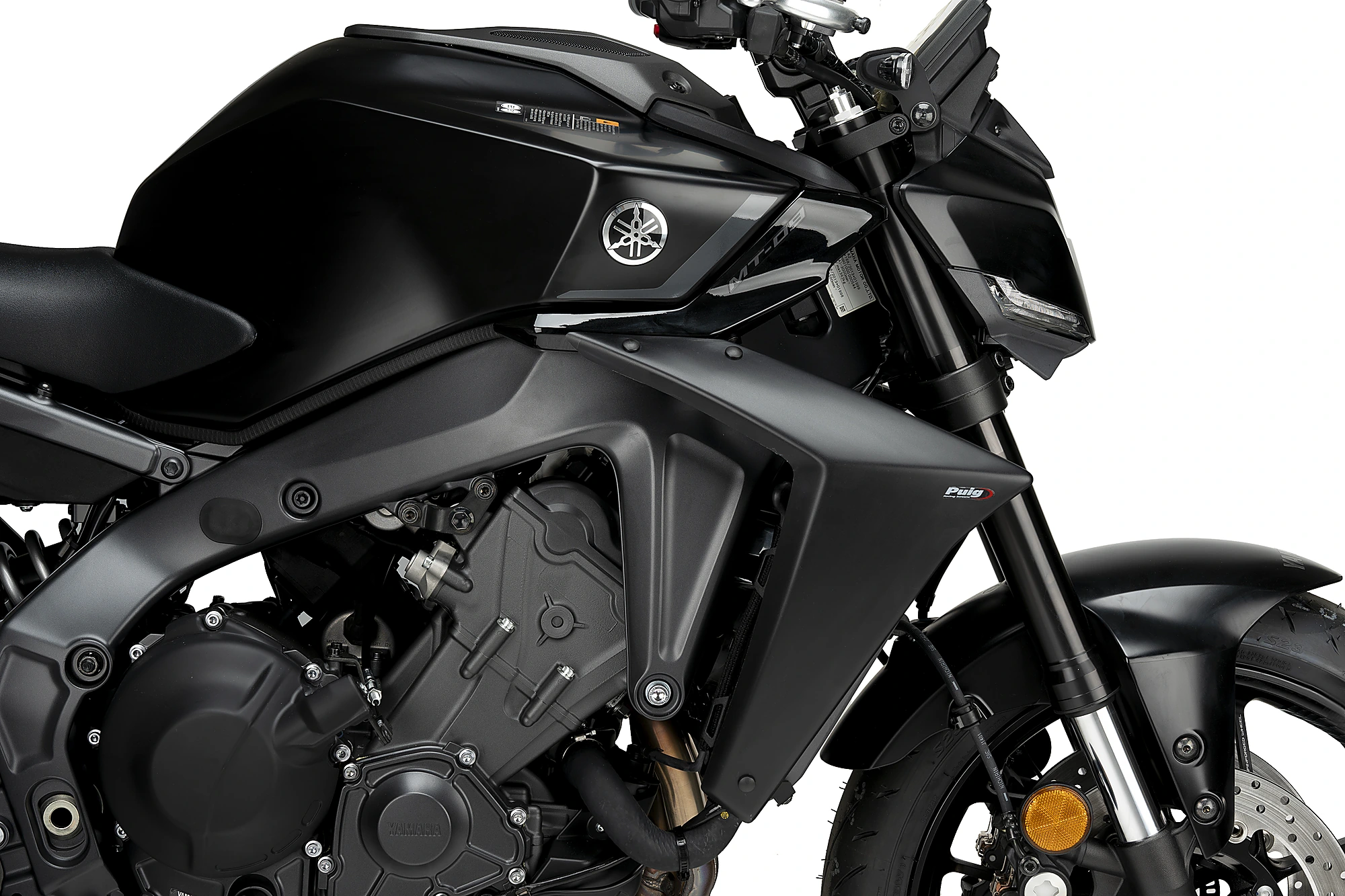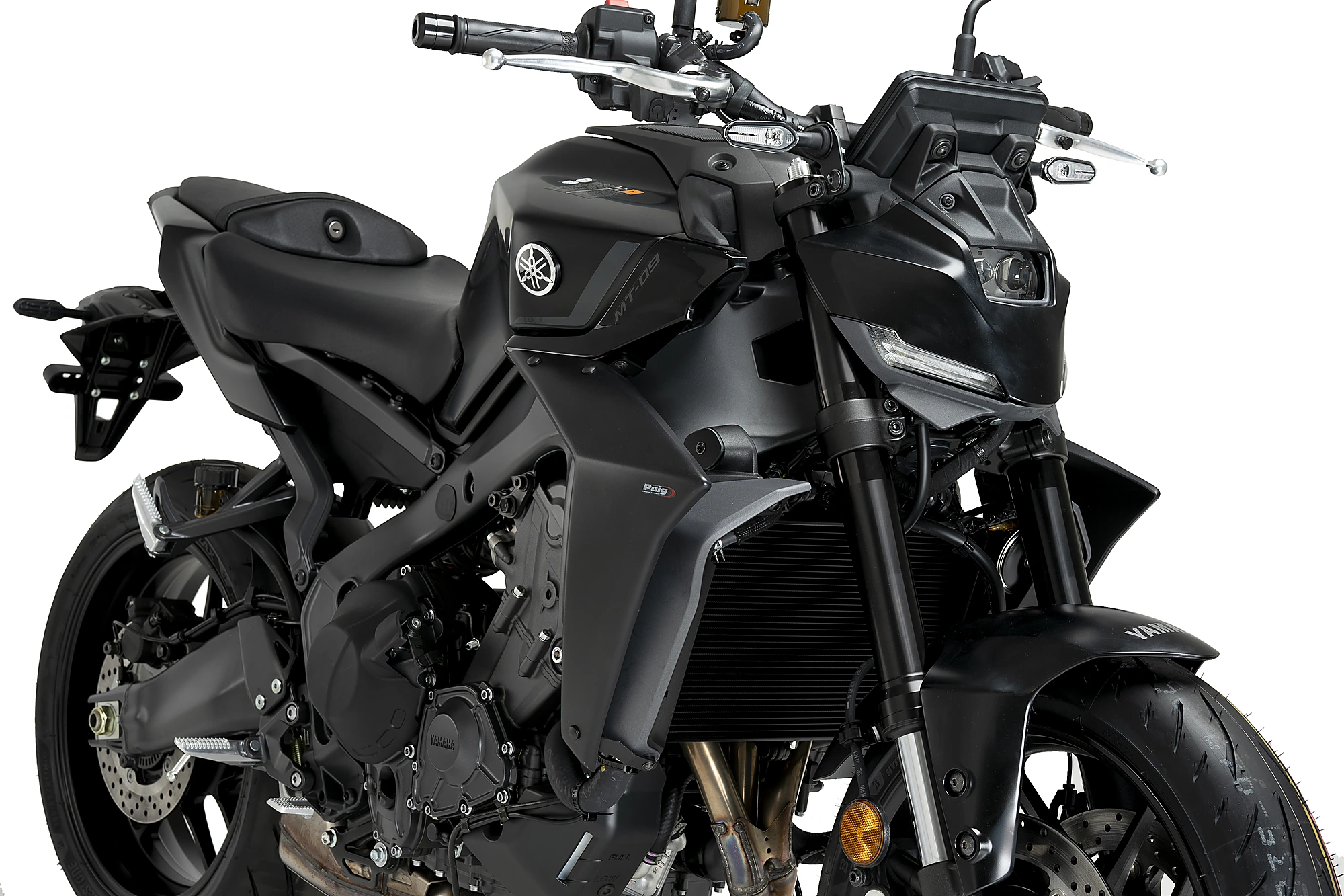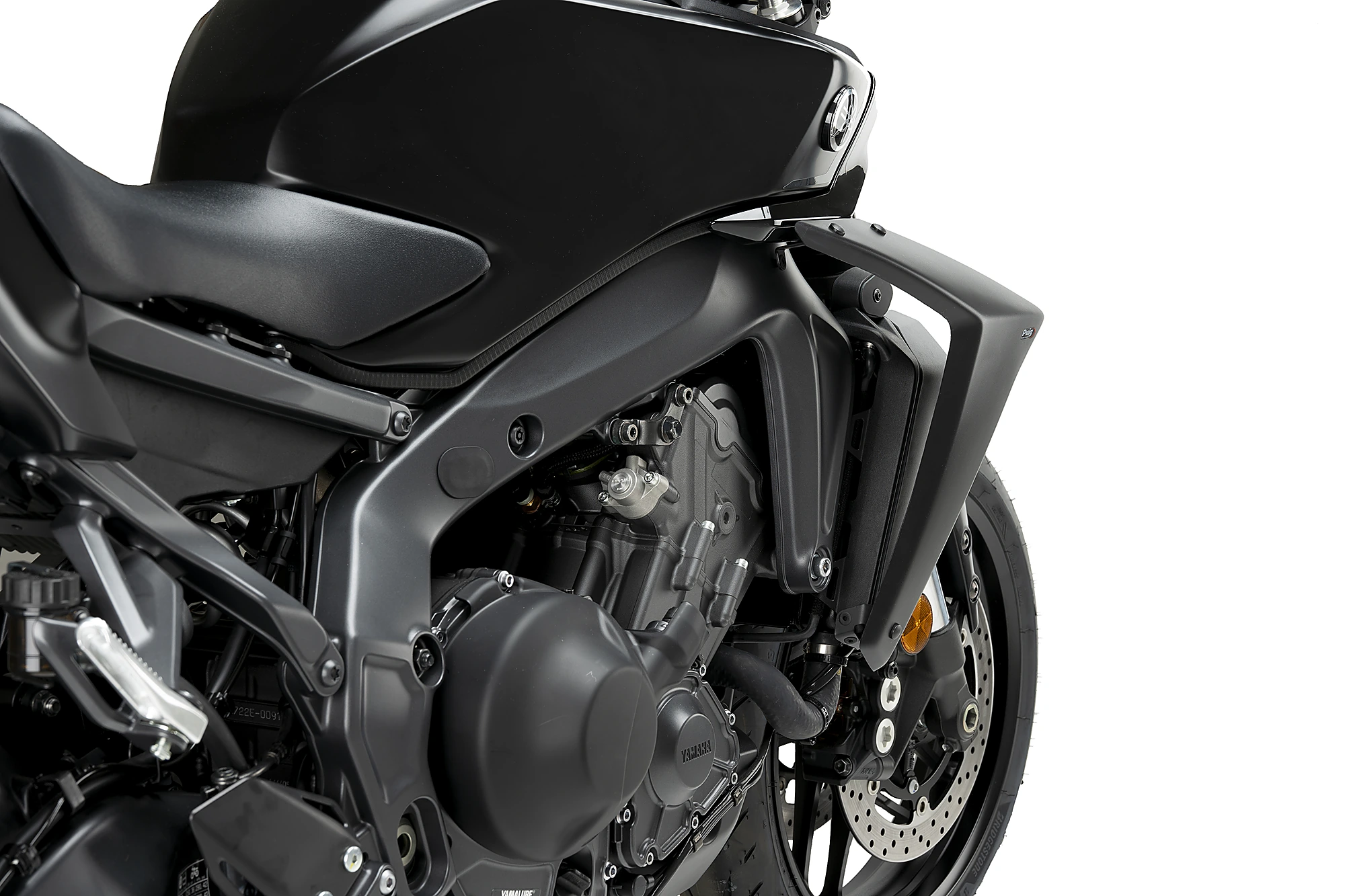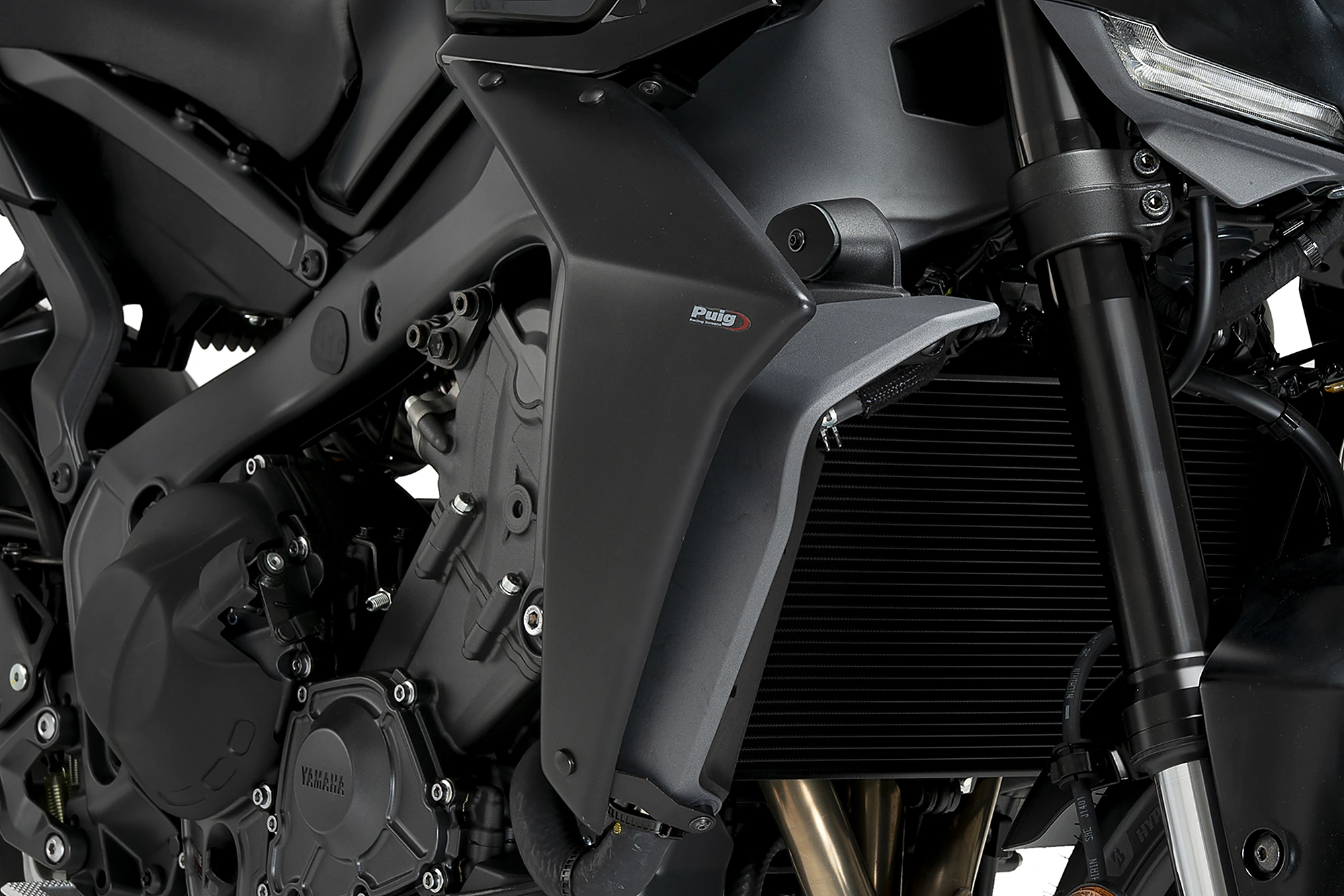 Ihr aggressives und minimalistisches Design fügt sich perfekt in die Linien der neuen MT-09 ein und vergrößert optisch die Frontpartie der Maschine dank der oberen Fläche, die maximalen Abtrieb erzeugt. Zudem verbinden sie harmonisch den Tank mit dem Kühler für eine sportlichere Rennoptik.