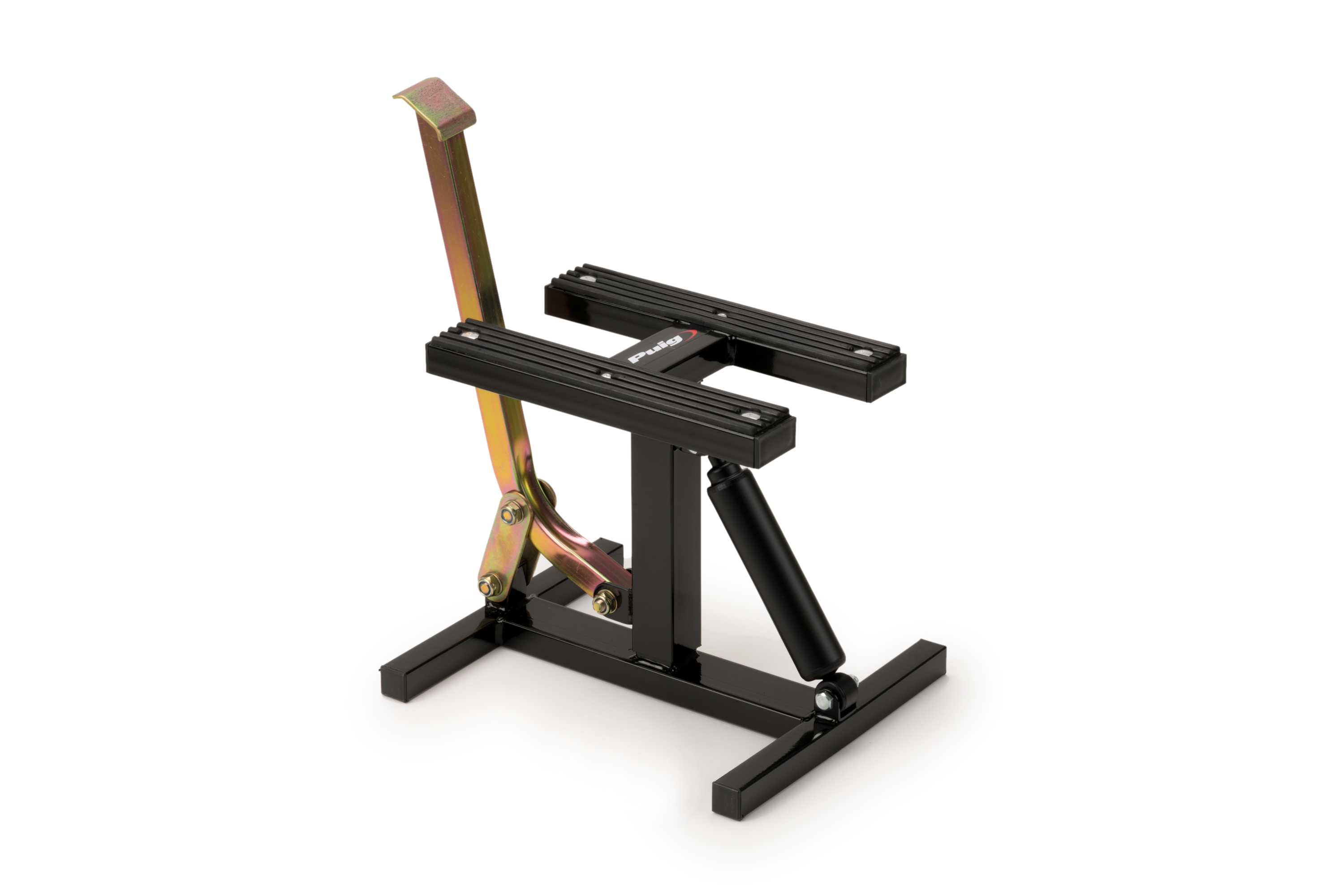 Aus Stahl gefertigt und mit schwarzem EPOXI-Lack lackiert, können Sie Ihr Motorrad dank des hydraulischen Mechanismus anheben. Die niedrigste Position beträgt 300 mm und die höchste Position 410 mm.