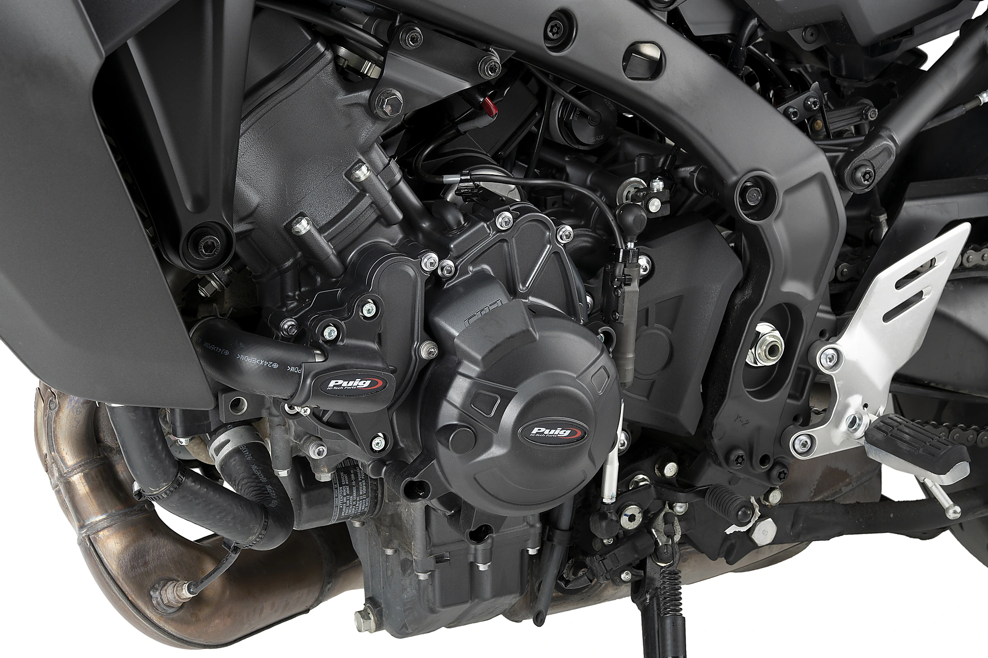 Um die Ästhetik des Motorrads zu erhalten, ist die Schutzabdeckung in matt gehalten und wird am Motorrad befestigt, indem sie auf es das Motorgehäuse schrauben.