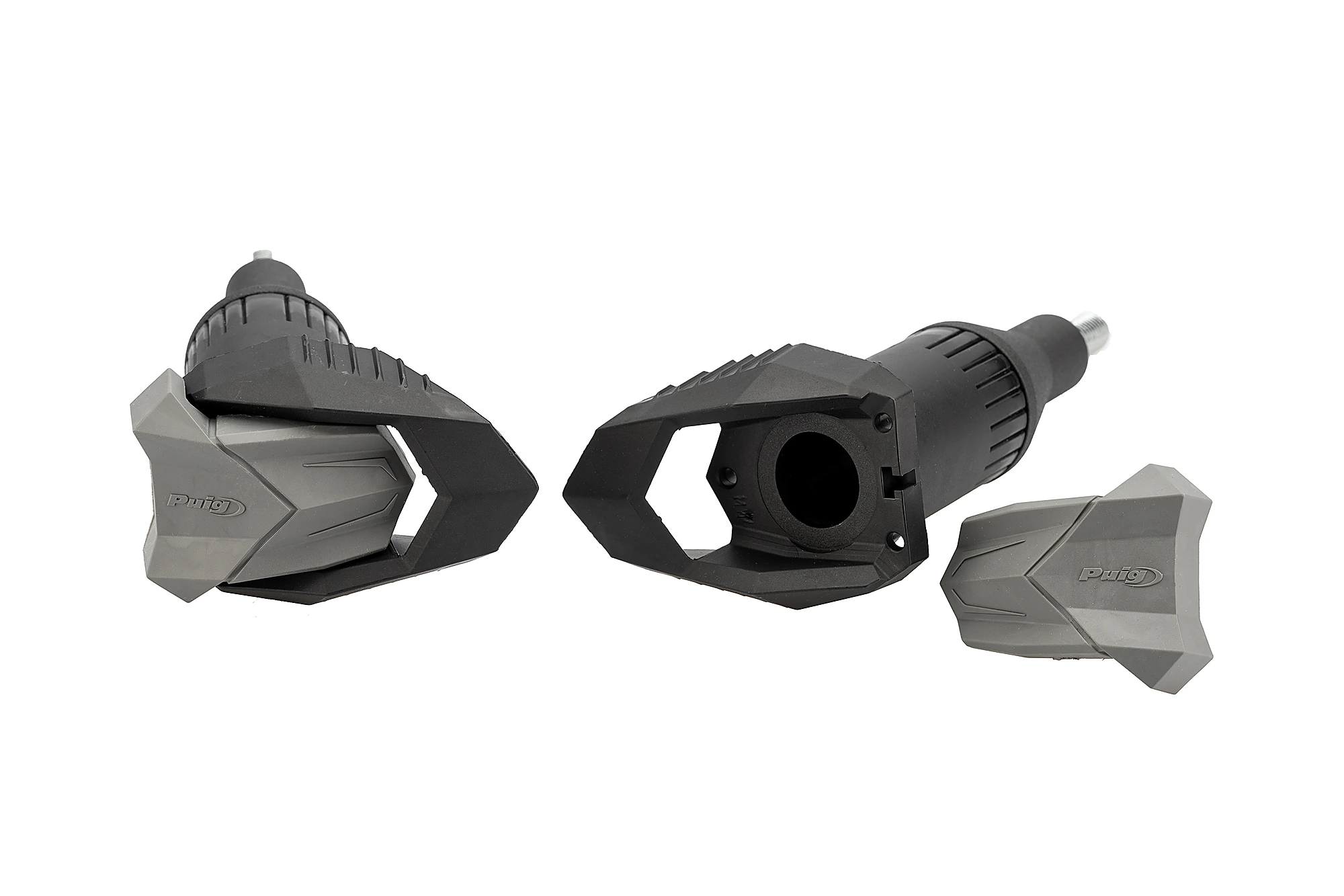 Die Schieberegler werden standardmäßig aus grauem Gummi gefertigt. Puig bietet jedoch eine Vielzahl von Farben an, die dem Design Ihres Motorrads entsprechen. Neben den Gummi-Ersatzteilen, bietet Puig auch Ersatzteile für Nylon-Schieber an. Hierbei ist zu beachten, dass jeder Protektor für ein bestimmtes Motorradmodell hergestellt wird.