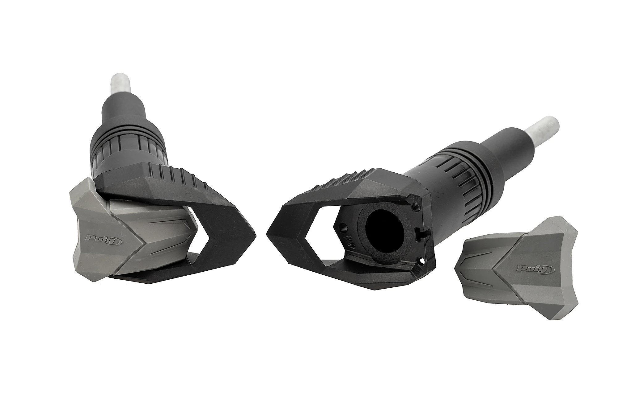 Die Schieberegler werden standardmäßig aus grauem Gummi gefertigt. Puig bietet jedoch eine Vielzahl von Farben an, die dem Design Ihres Motorrads entsprechen. Neben den Gummi-Ersatzteilen, bietet Puig auch Ersatzteile für Nylon-Schieber an. Hierbei ist zu beachten, dass jeder Protektor für ein bestimmtes Motorradmodell hergestellt wird.