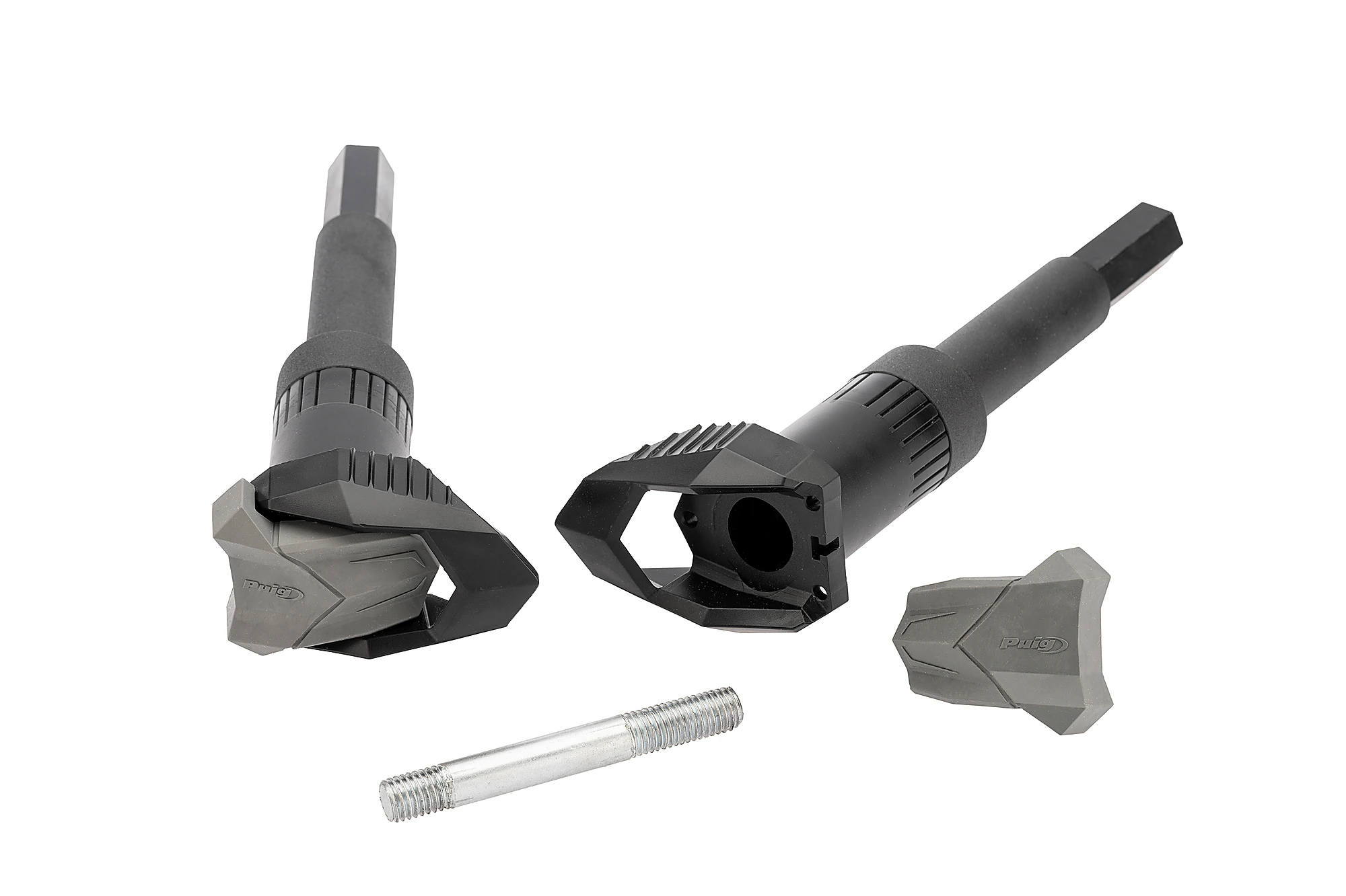 Die Schieberegler werden standardmäßig aus grauem Gummi gefertigt. Puig bietet jedoch eine Vielzahl von Farben an, die dem Design Ihres Motorrads entsprechen. Neben den Gummi-Ersatzteilen, bietet Puig auch Ersatzteile für Nylon-Schieber an. Hierbei ist zu beachten, dass jeder Protektor für ein bestimmtes Motorradmodell hergestellt wird.