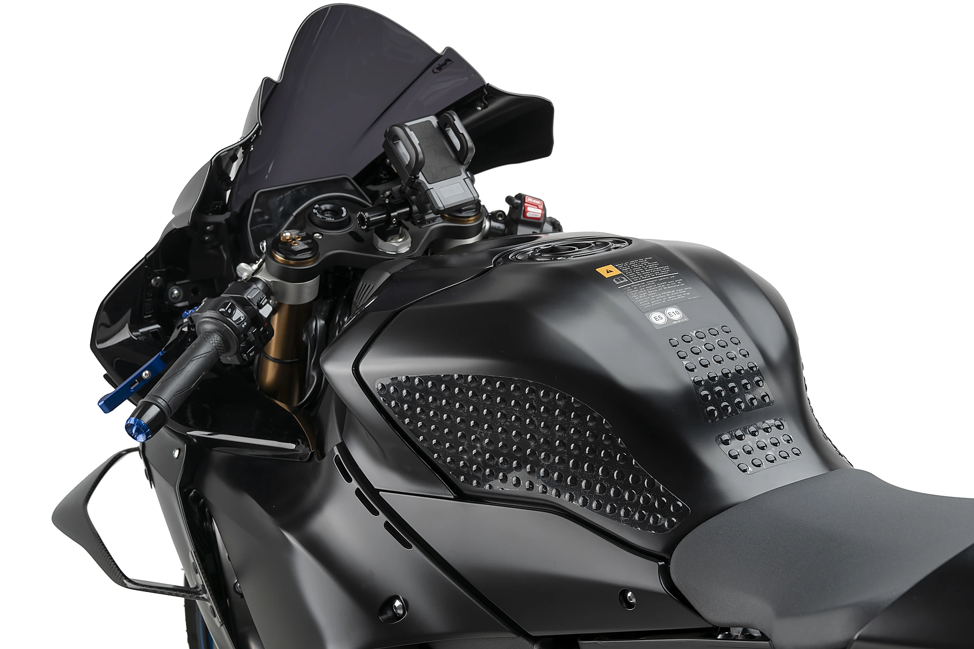 Die Pro-Tankprotektoren von Puig zeichnen sich durch ihre hohe Transparenz aus, wobei sie das Bild, die Grafiken oder die Hintergrundfarben, auf denen sie angebracht werden, respektieren. Hergestellt aus Polyurethan, werden diese Pro-Tankprotektoren sowohl vom Honda HRC-Team in der MotoGP als auch vom Monster Energy Honda Team bei der Dakar verwendet, was ihre Qualität und Widerstandsfähigkeit unter extremen Bedingungen garantiert.