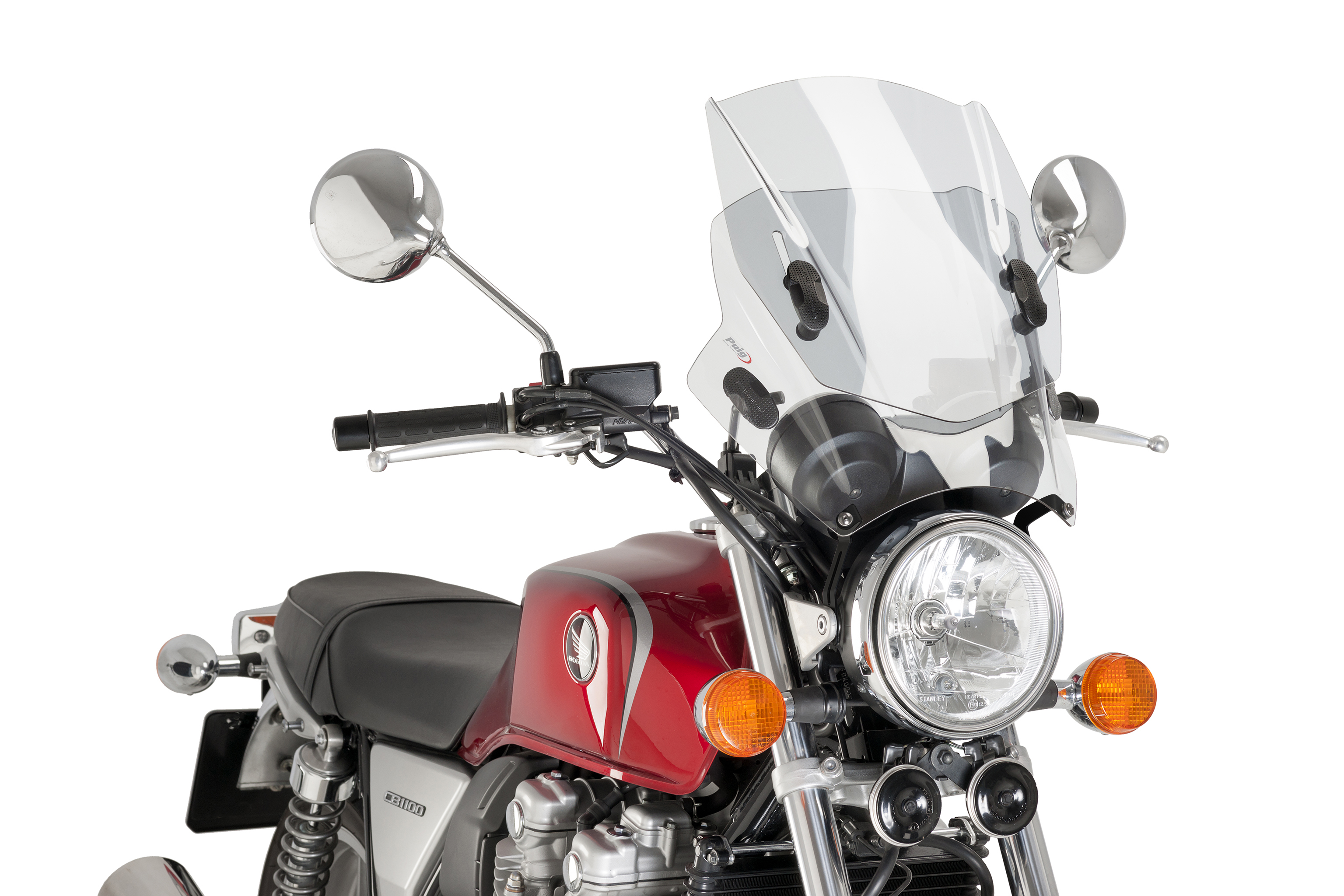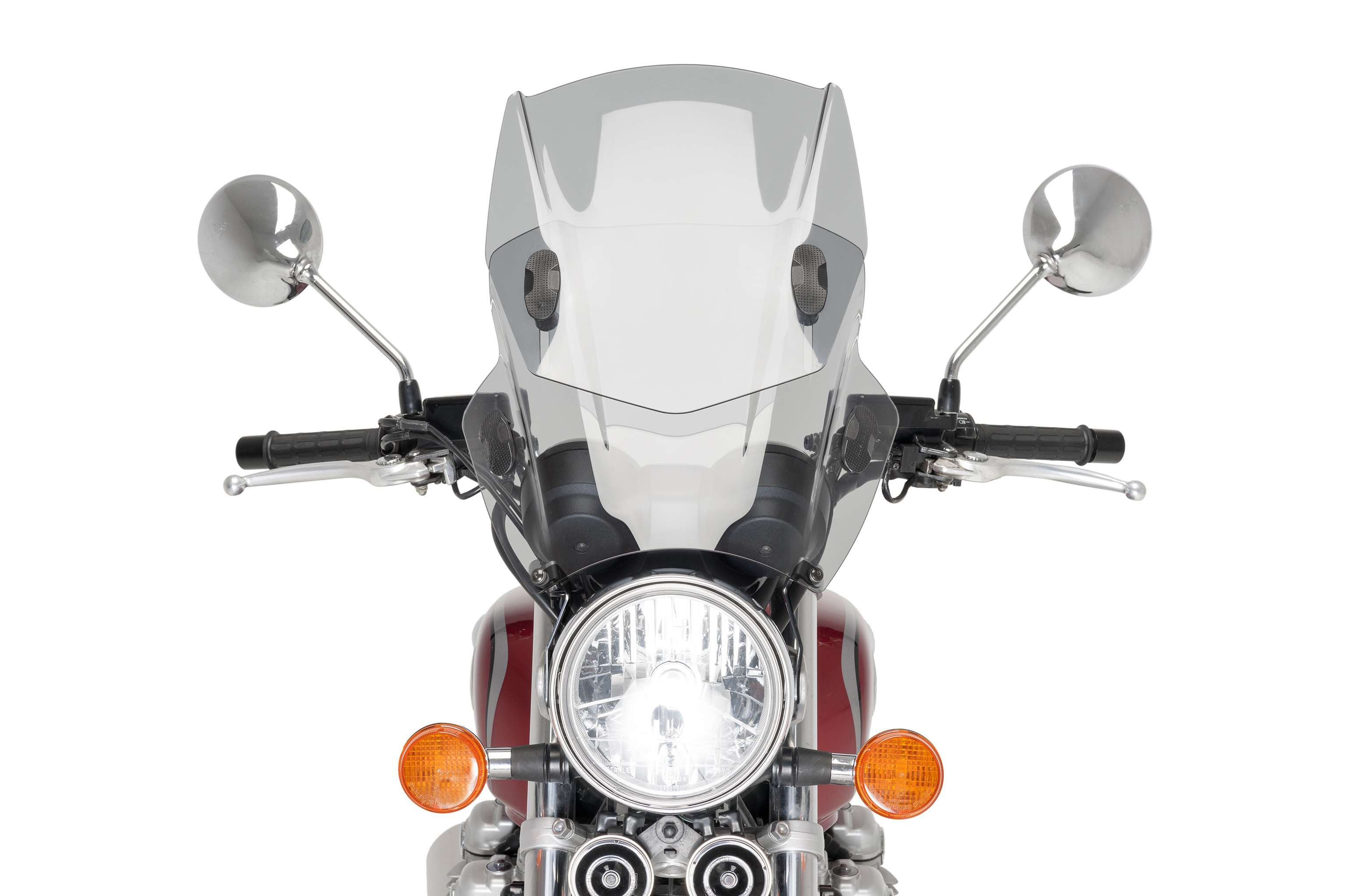 Erneuern Sie das Erscheinungsbild Ihres Motorrads mit runden Scheinwerfer indem Sie die innovative Up & Down-Windschutzscheibe der Marke Puig montieren. Hergestellt aus 3mm schlagfestem Acrylmaterial, das es sehr widerstandsfähig gegen Stöße und Witterungseinflüsse macht, zeichnet sich dieses Produkt durch sein vielseitiges Design und seine einfache Montage aus. Die beiden zusammengefügten Scheiben erlauben es Ihnen, die Höhe der Verkleidung zu regulieren und so noch besser vor Wind zu schützen.