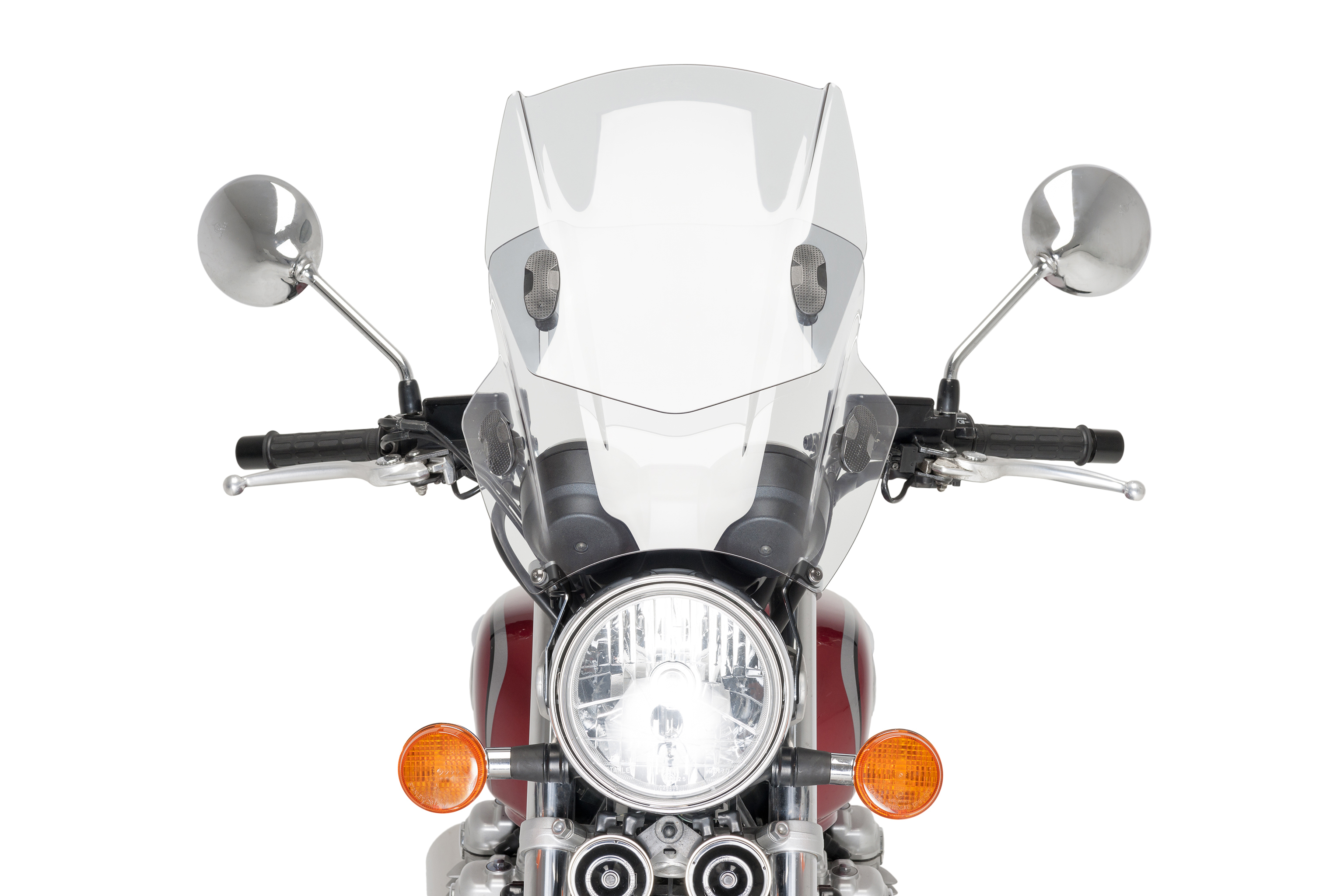 Diese Windschutzscheibe ist für die meisten handelsüblichen, runden Scheinwerfermodelle erhältlich. Falls Ihr Modell dies erfordert, ist ein spezieller Befestigungssatz erhältlich. Dieser ist nur für bestimmte Modelle verfügbar.