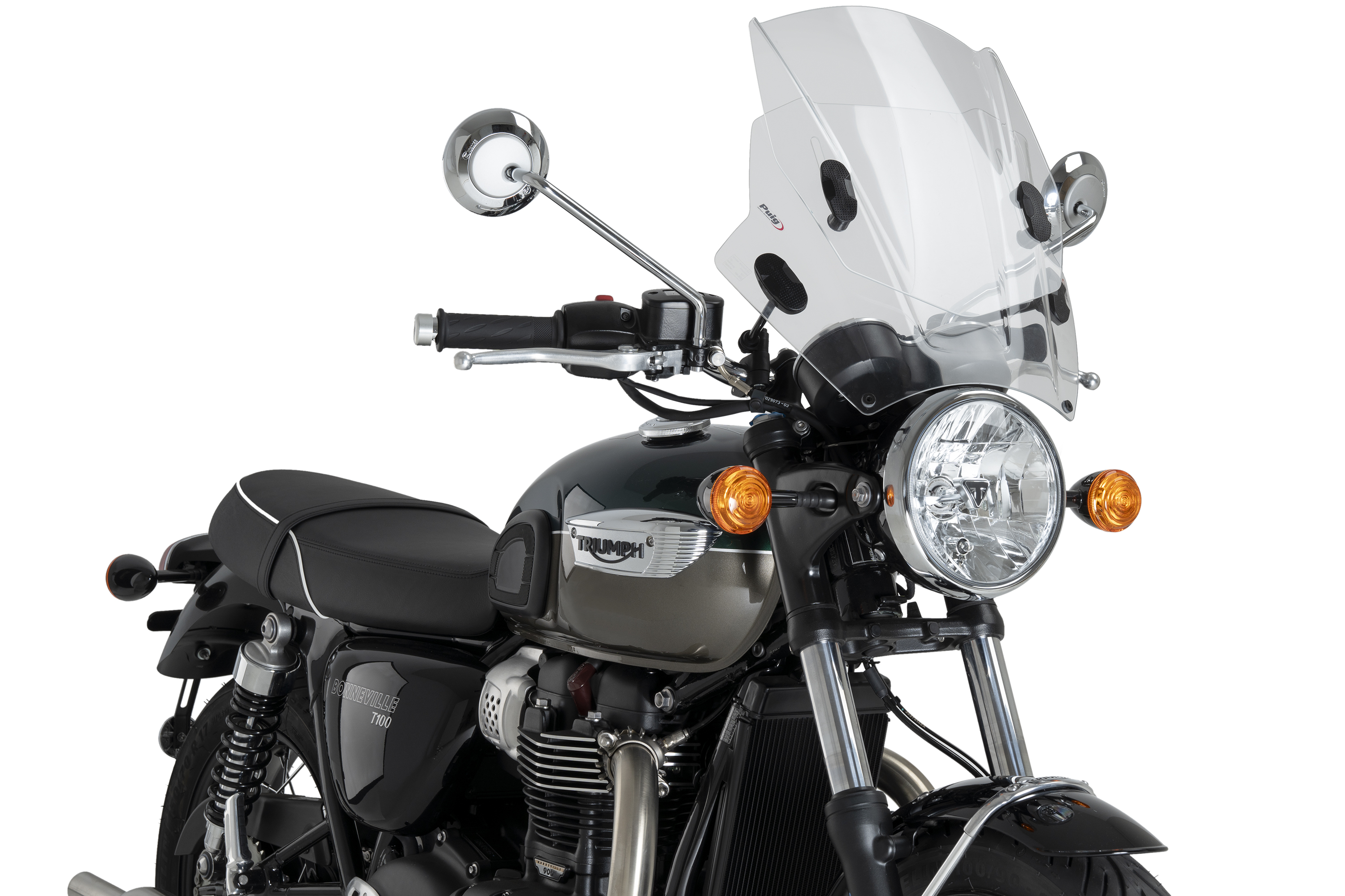 Erneuern Sie das Erscheinungsbild Ihres Motorrads mit runden Scheinwerfer indem Sie die innovative Up & Down-Windschutzscheibe der Marke Puig montieren. Hergestellt aus 3mm schlagfestem Acrylmaterial, das es sehr widerstandsfähig gegen Stöße und Witterungseinflüsse macht, zeichnet sich dieses Produkt durch sein vielseitiges Design und seine einfache Montage aus. Die beiden zusammengefügten Scheiben erlauben es Ihnen, die Höhe der Verkleidung zu regulieren und so noch besser vor Wind zu schützen.
