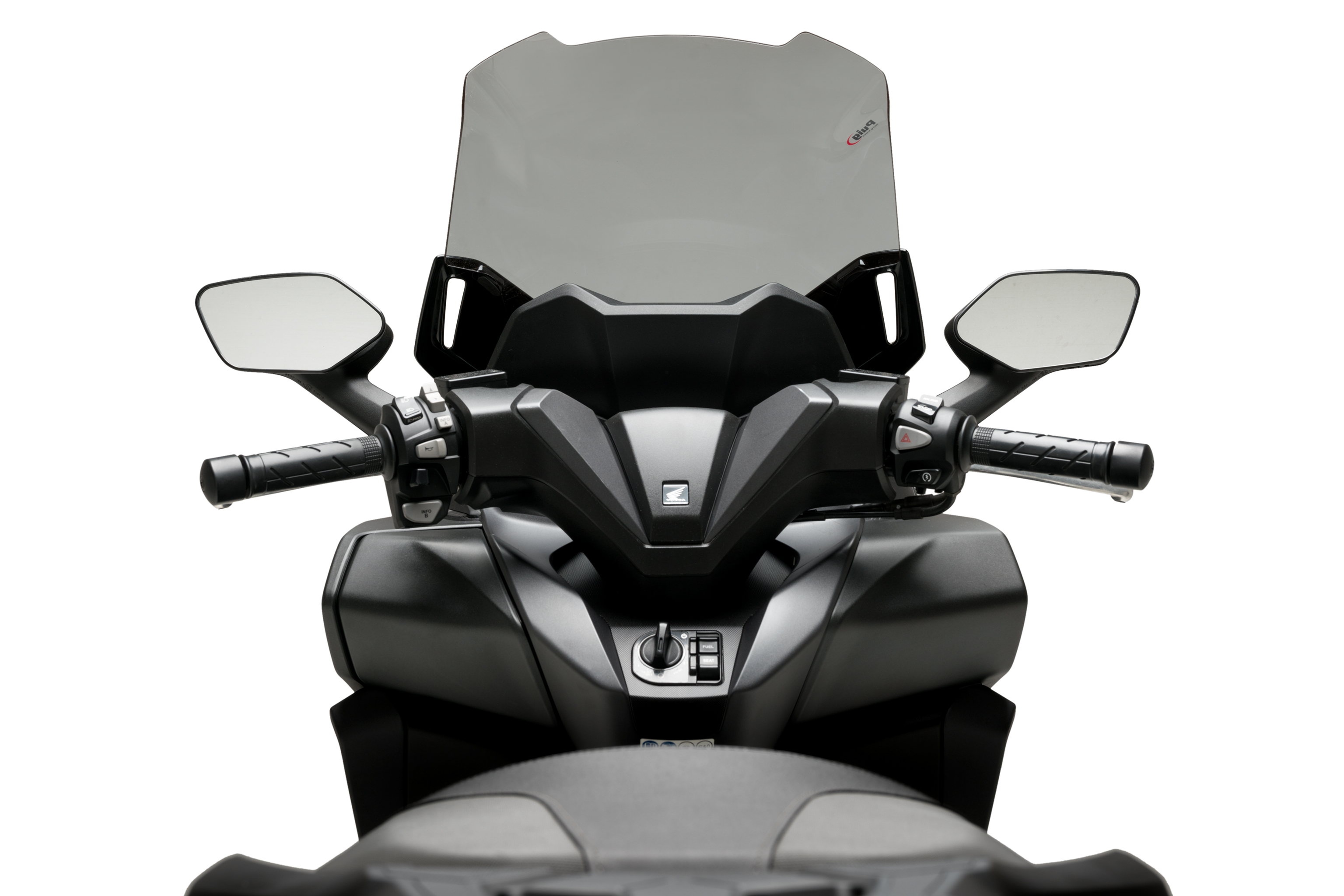 Der V-Tech Sport-Bildschirm ist in drei Farben erhältlich: heller Rauch, dunkler Rauch und Schwarz. Wählen Sie die Farbe, die am besten zu Ihrem Honda Forza passt.