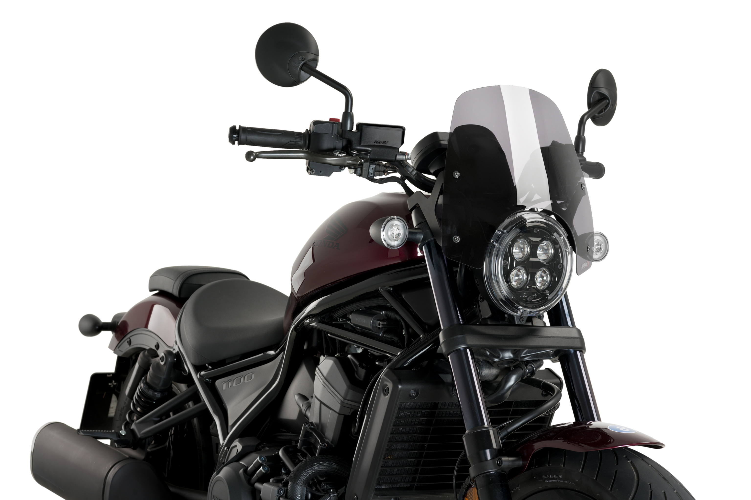 Verbessern Sie die Touring-Fähigkeiten der Honda Rebel mit dem Sport-Windschild von Puig. Es bietet nicht nur einen besseren aerodynamischen Schutz gegen Wind und Regen, sondern verleiht dem Motorrad auch einen sportlichen und individuellen Look.
