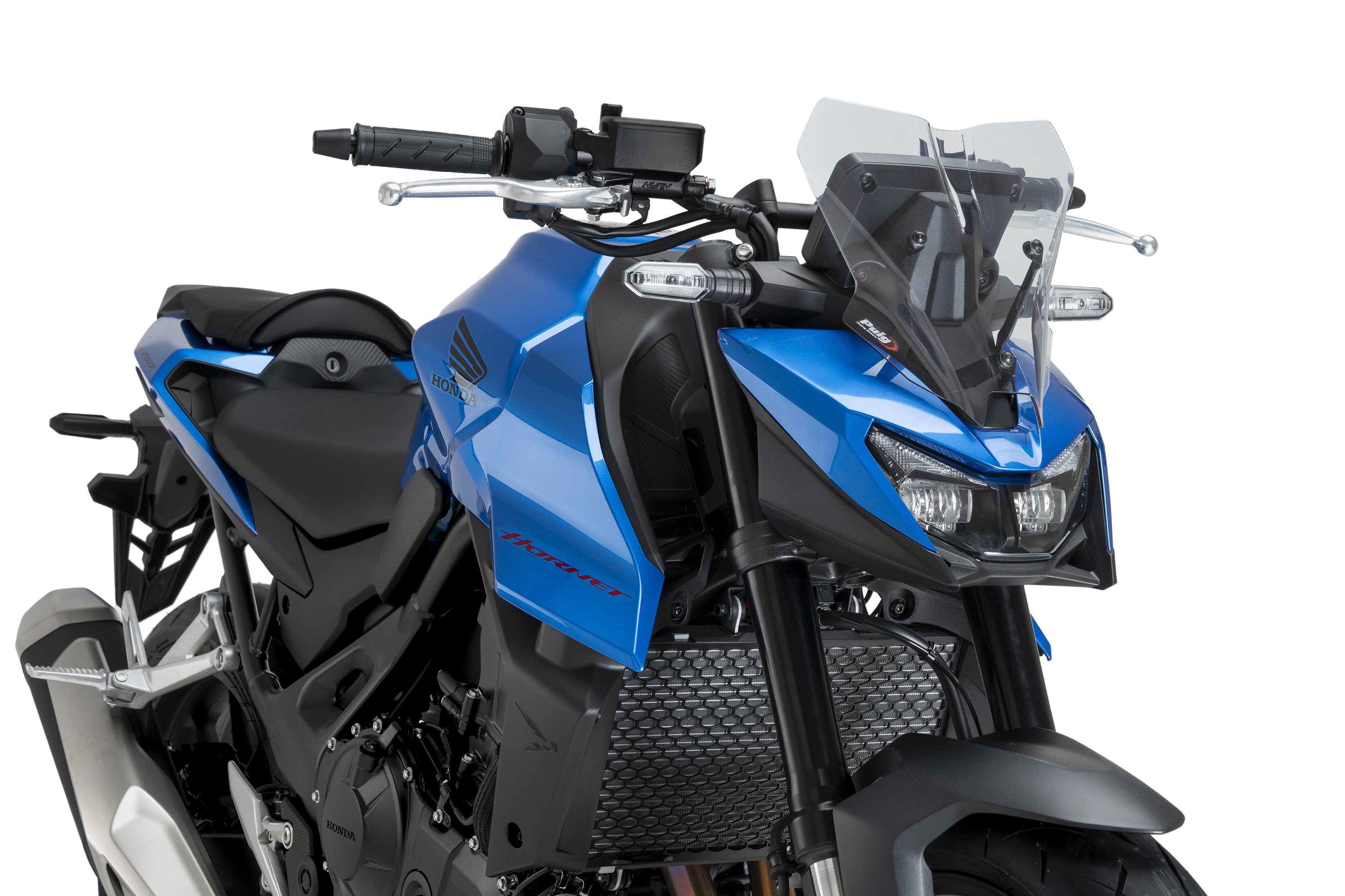 Maße: 265 mm breit, 275 mm hoch – 35 mm höher als das Cockpit der Honda CB750 Hornet, bietet so eine subtile, aber effektive aerodynamische Verbesserung, ohne das kompakte Design des Motorrads zu beeinträchtigen.