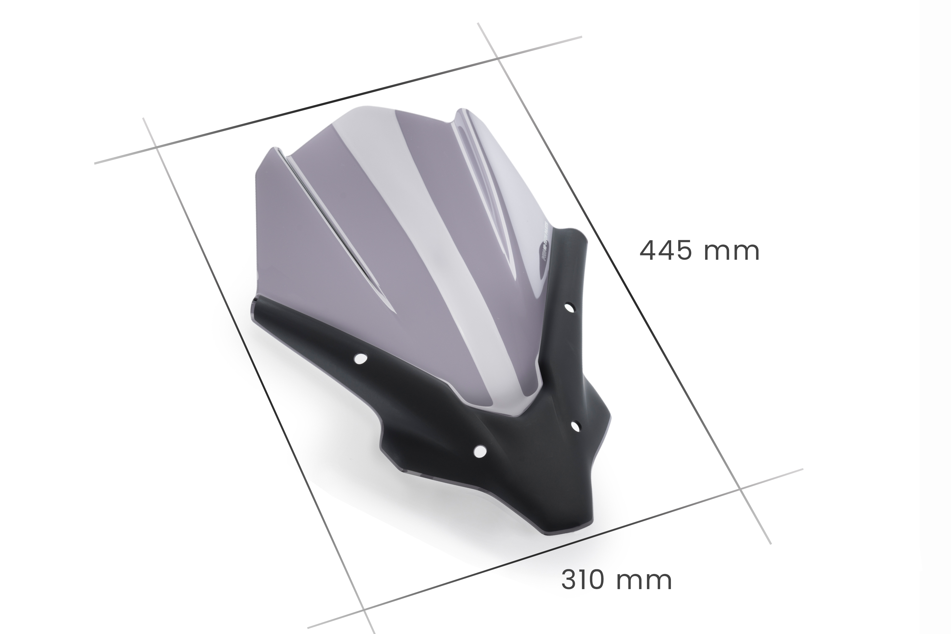 Hergestellt aus PMMA, garantiert es den besten Schutz vor möglichen Stößen und vor allem vor Wind und Wetter, welche während der Fahrt auftreten können. Darüber hinaus verleiht es Ihrem Motorrad eine größere aerodynamische Kapazität.