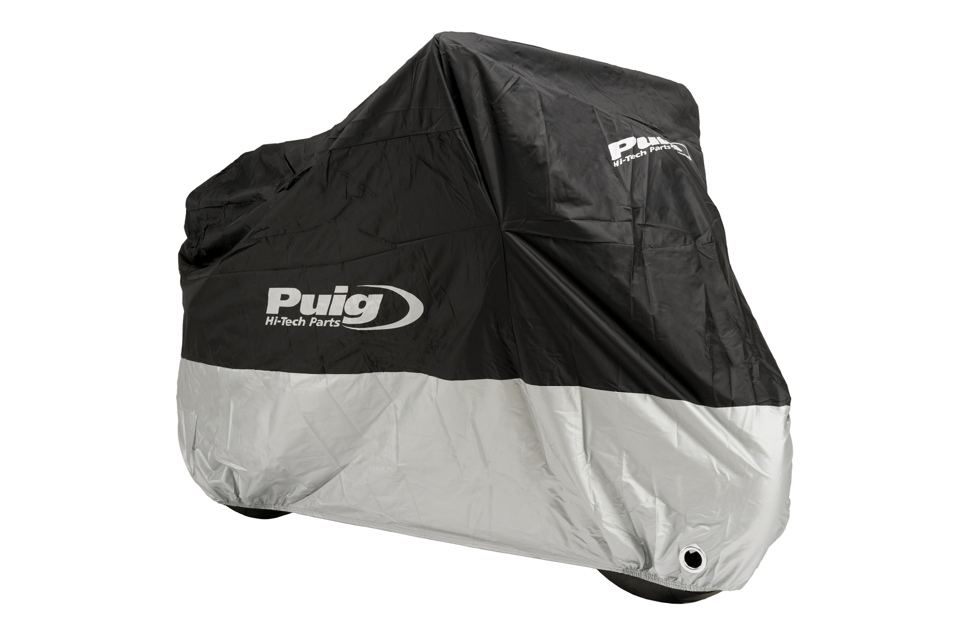 ​Das Modell der Abdeckung mit dem Puig-Logo ist in schwarzer Ausführung erhältlich und kann in den Größen XL, XXL und XXXL gewählt werden. Dieses Modell ist eine Weiterentwicklung des Basismodells und verfügt über die wichtigsten Eigenschaften, um Ihr Motorrad zu schützen und zu pflegen, wenn Sie es nicht benutzen. Von außen verklebte Nähte, Belüftung zur Reduzierung von Kondenswasser, UV-Beständigkeit und ein luxuriöses Steppfutter, das Stöße und Kratzer verhindert.