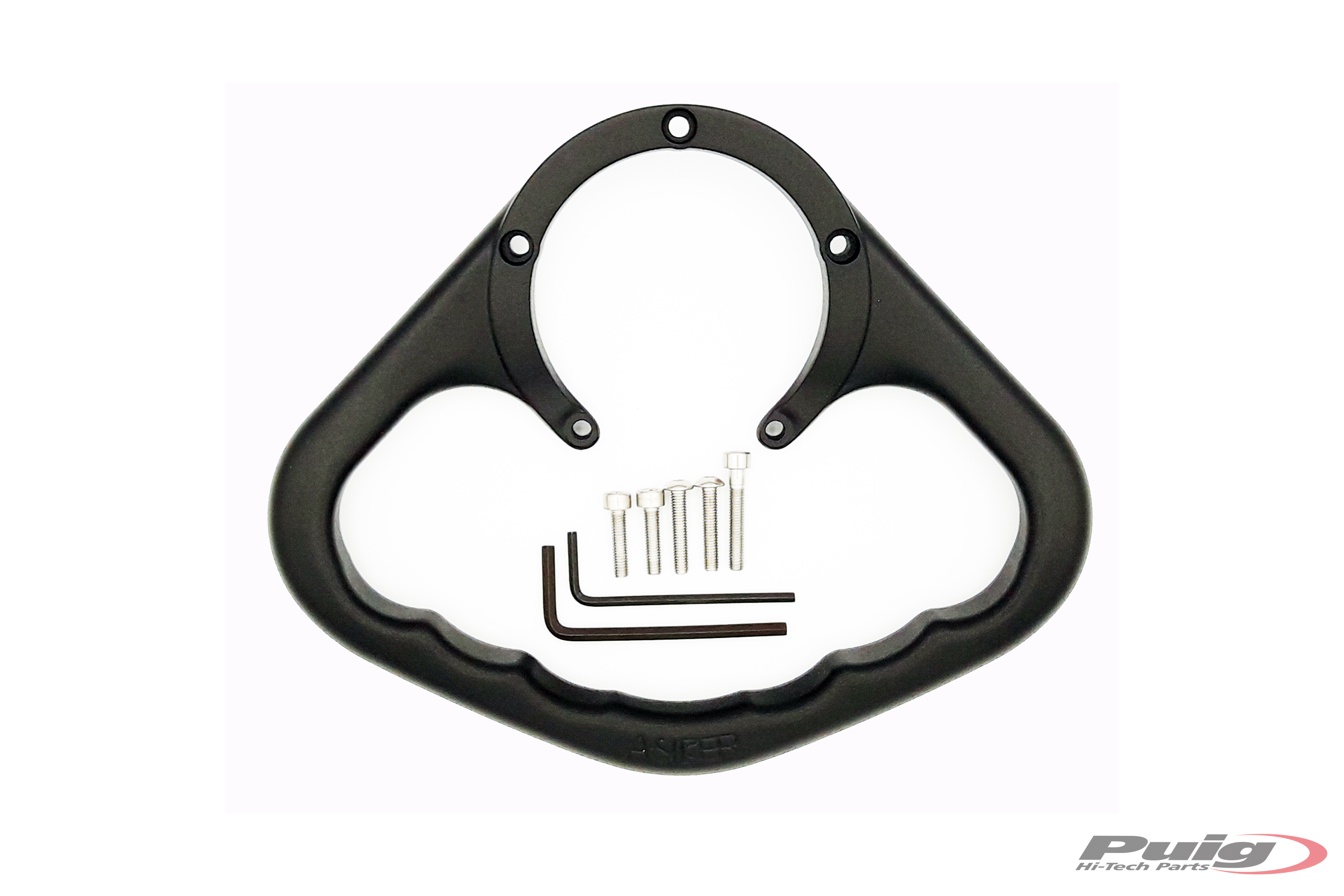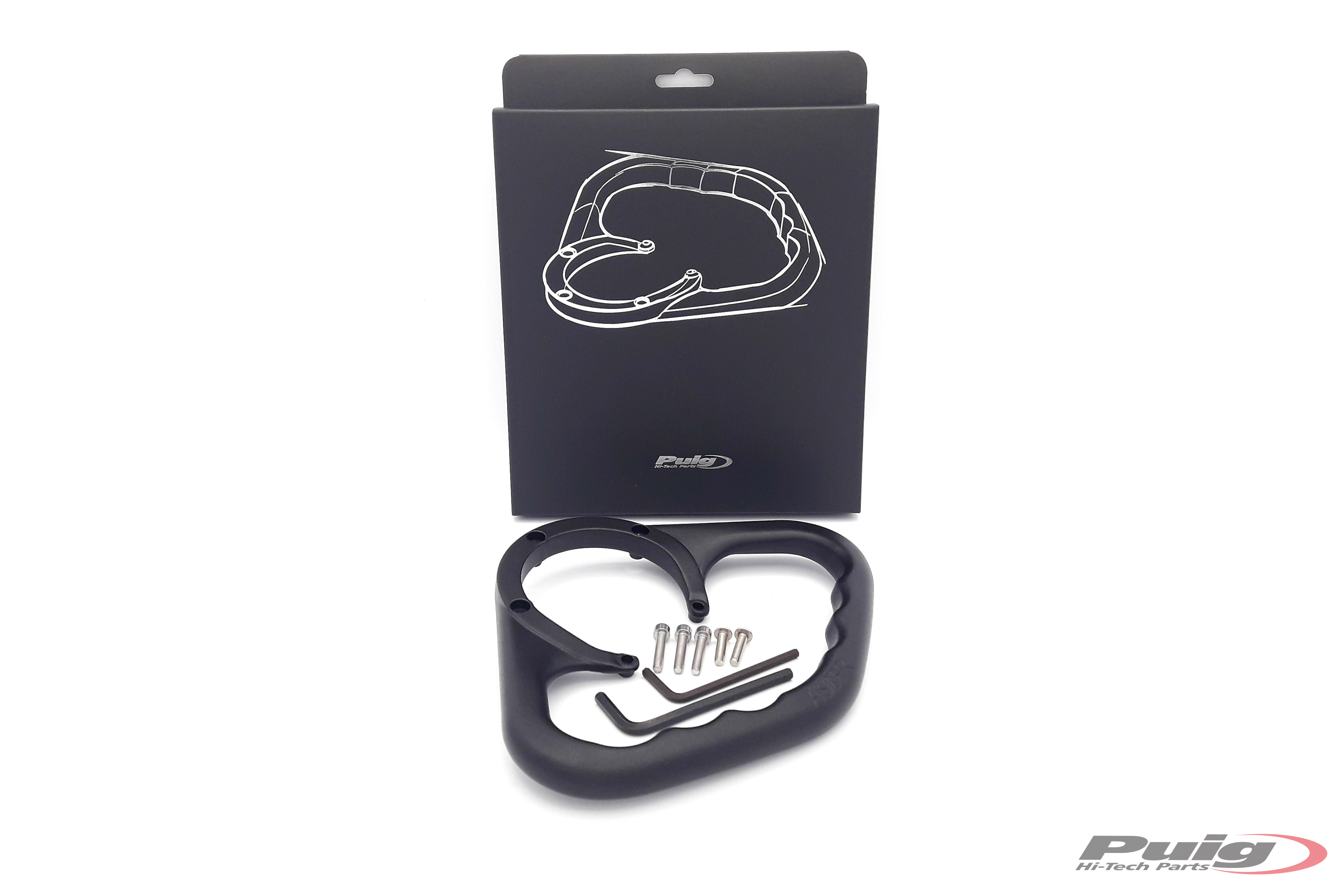 Verbessern Sie den Komfort und die Haltemöglichkeit des Motorrads mit dem universellen PUIG-Haltering. Er besteht aus leichtem Aluminium mit schwarzem EPOXI-Lack. Der Haltering ist die beste Ergänzung, um die Fahrt für Ihrer Passagiere auf dem Motorrad komfortabler zu gestalten. Sie passen sich außerdem durch Ihren Modernen Stil und dem unauffälligen Schwarzen Look optimal an Ihr Motorrad an.