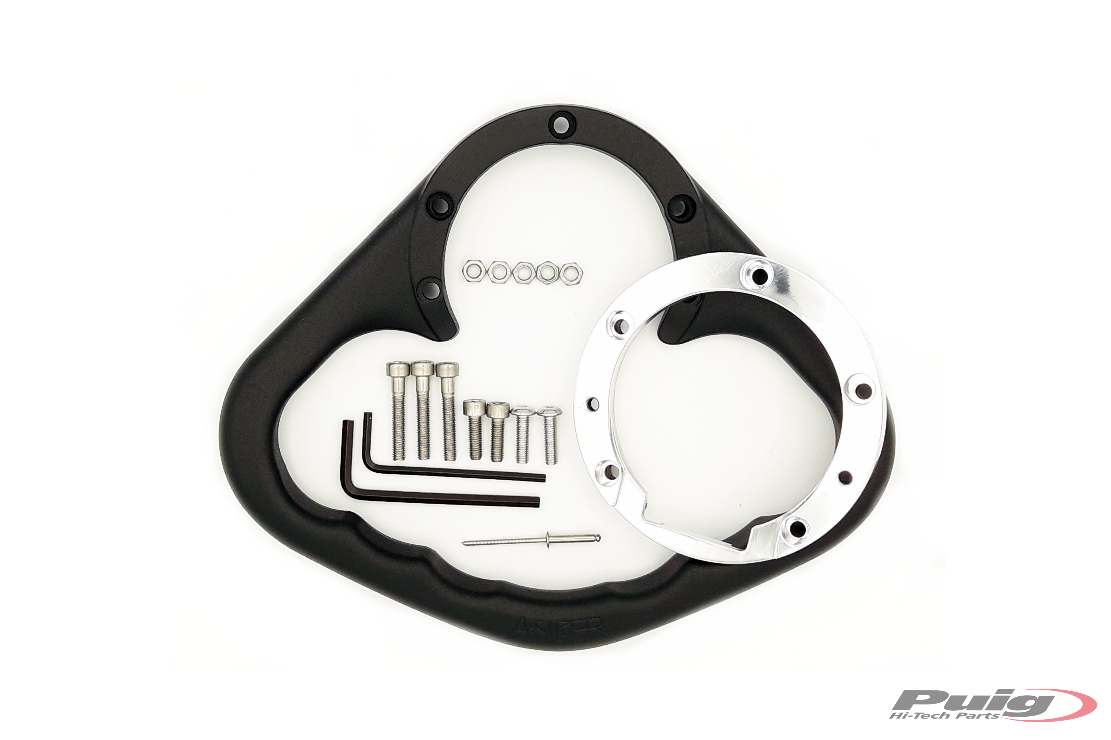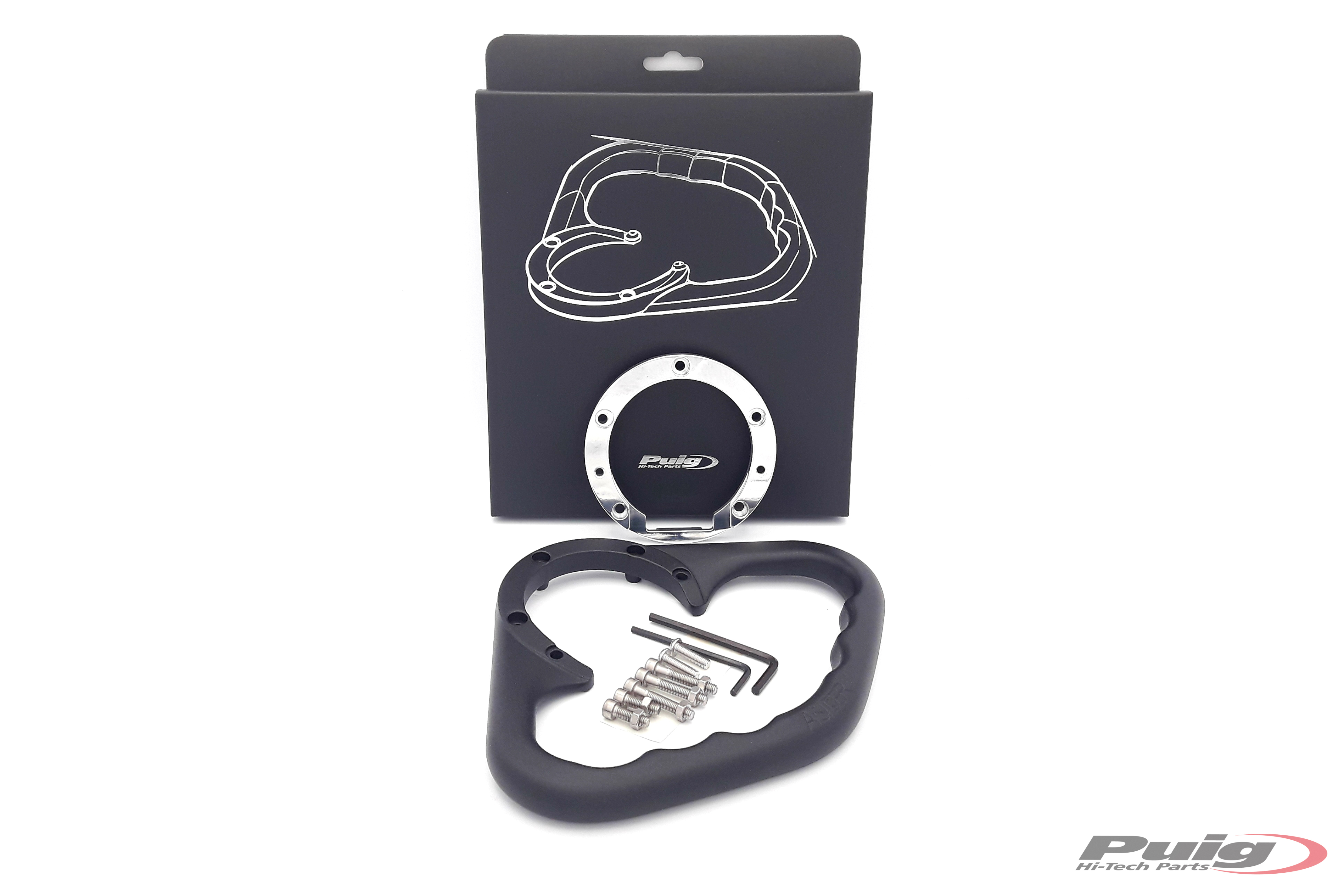 Der Haltering ist mit Schrauben an dem Tankdeckel Ihres Motorrads befestigt. PUIG bietet verschiedene Modelle an, je nach Anzahl der Schrauben des originallen Deckels. Wir empfehlen, dies bei dem eigenen Motorrad zu beachten um das richtige Modell zu wählen.