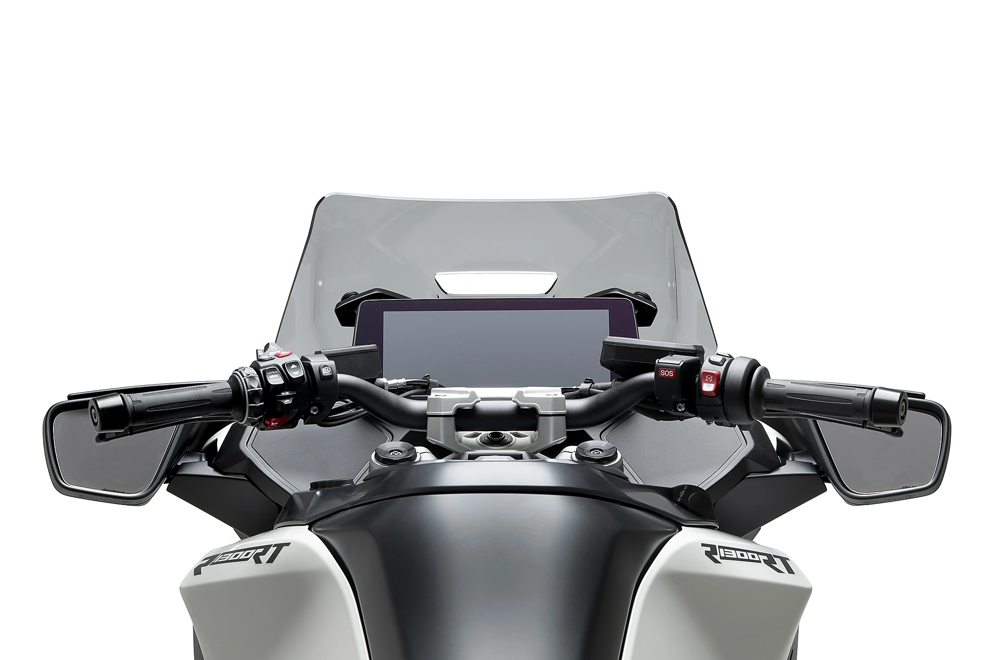 First of all, the BMW R1300RT introduces three new windscreens so every rider can choose the one that best suits their needs at any time: Touring screen, Touring with visor, or Sport. All of them have been developed in Barcelona with the aim of providing greater aerodynamic protection for the rider.