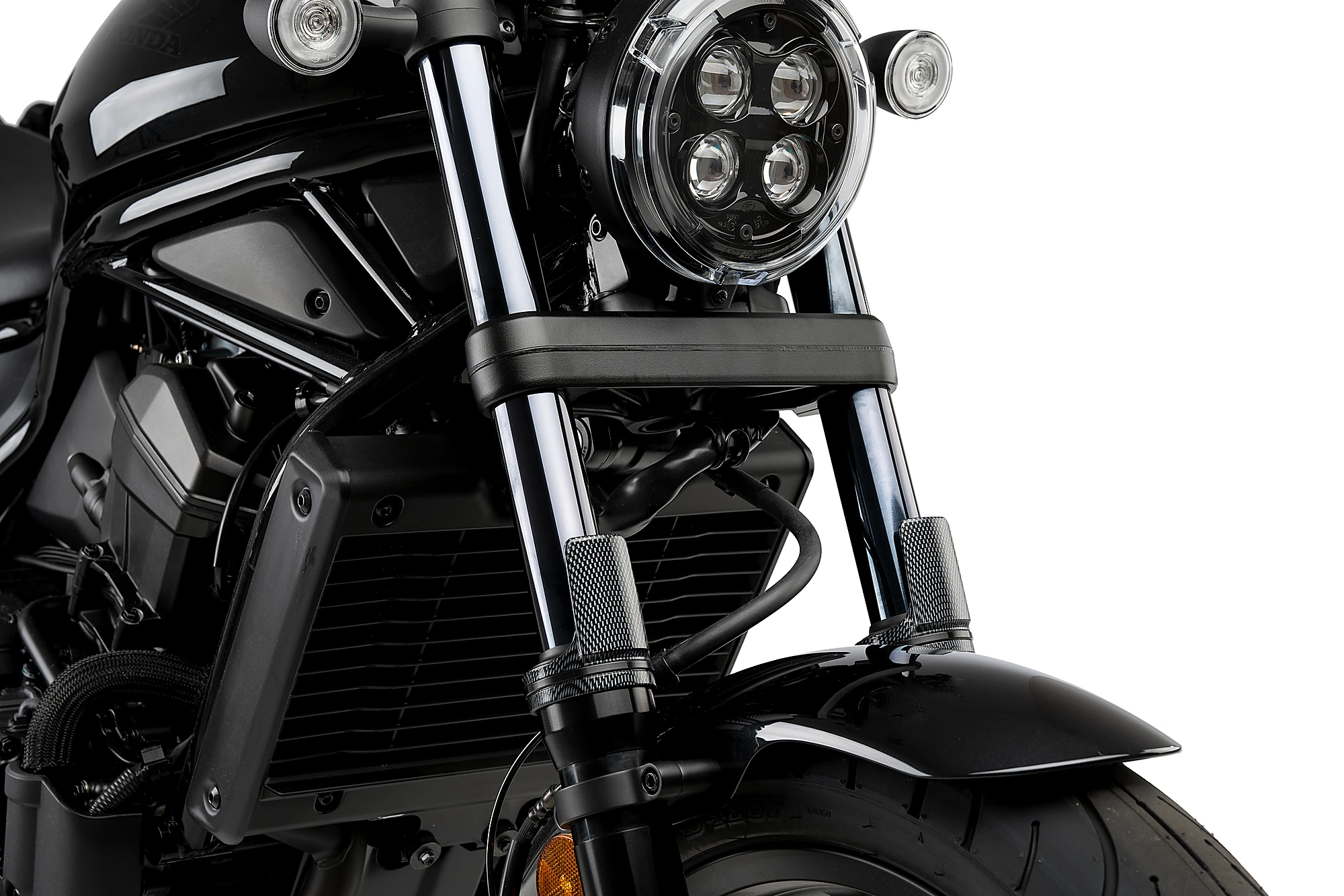 To reduce the risk of accumulating dirt or receiving the impact of gravel on the front suspension, Puig has developed these covers made of high strength plastic. Its discreet and elegant design combines perfectly with any motorcycle, and its presentation in carbon-look format gives the front a more sporty and exclusive personalization.