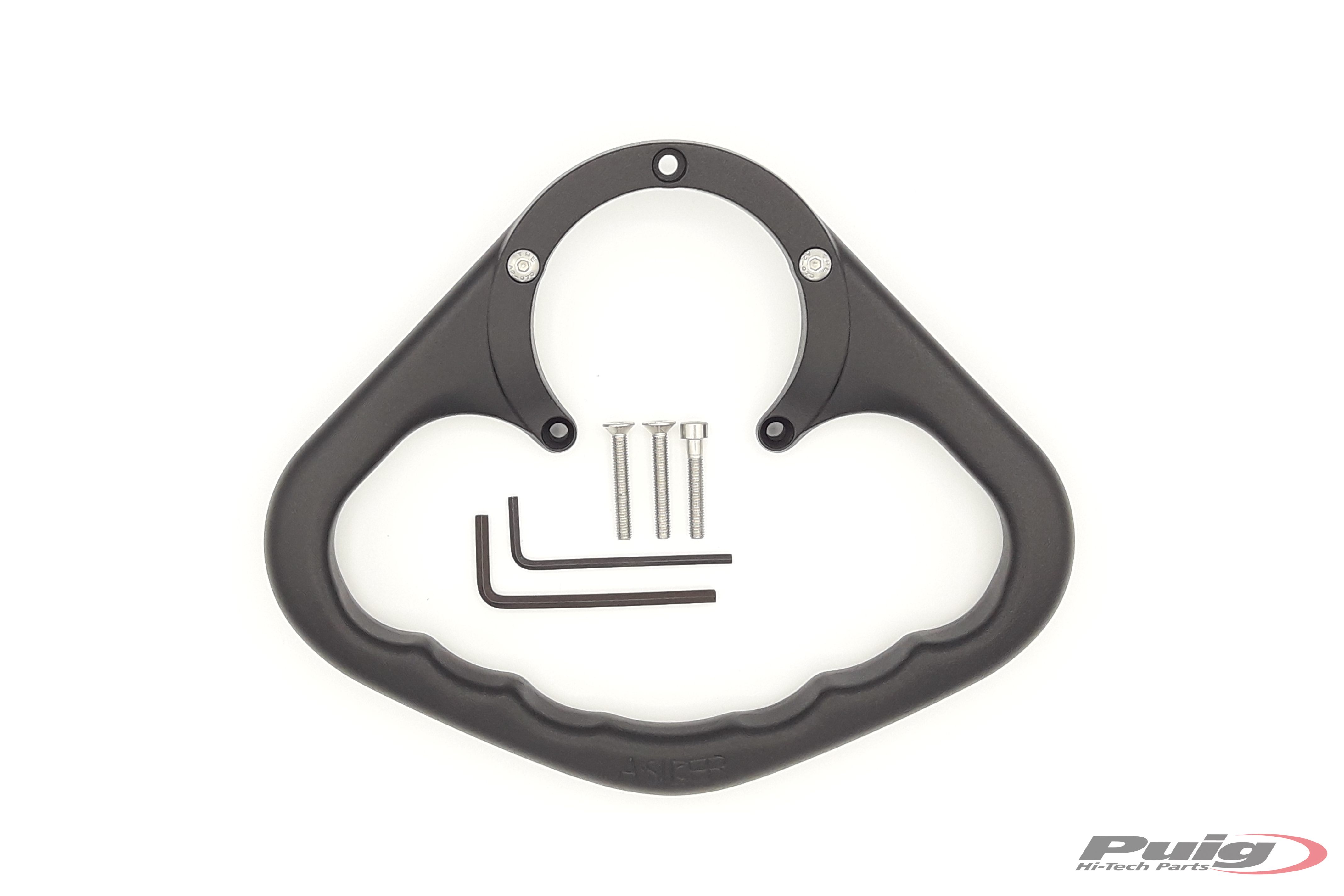 Improve the passenger’s comfort and grip on the motorcycle with universal PUIG handles. Made of lightweight aluminium and black EPOXI paint, they will be the best complement to improve your passenger’s travel on the motorcycle, caring for and preserving the looks of your motorcycle to the fullest.