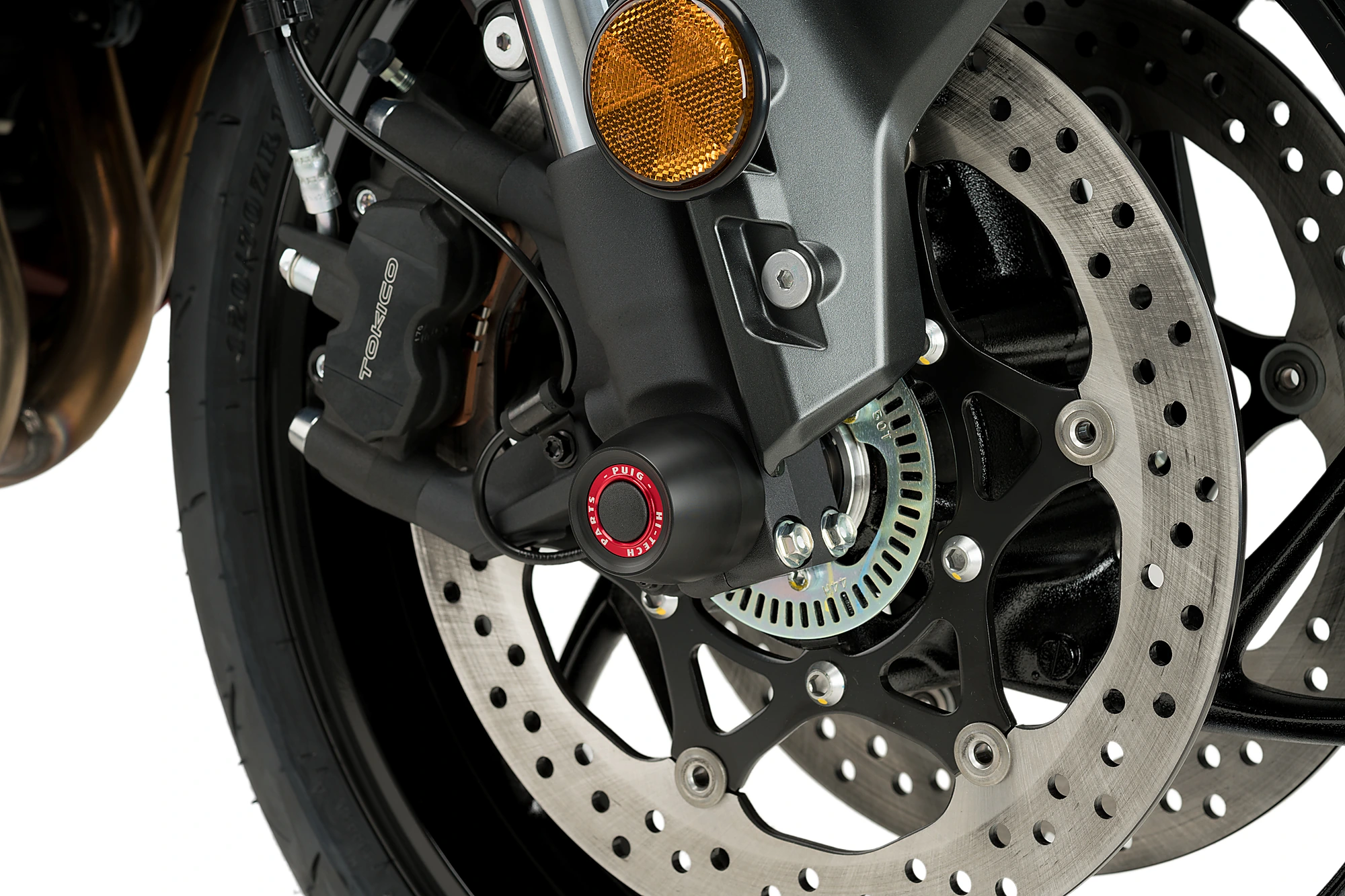 Protect the fork of your bike and dress it up with a competition touch, with the PUIG axle slider PHB19.