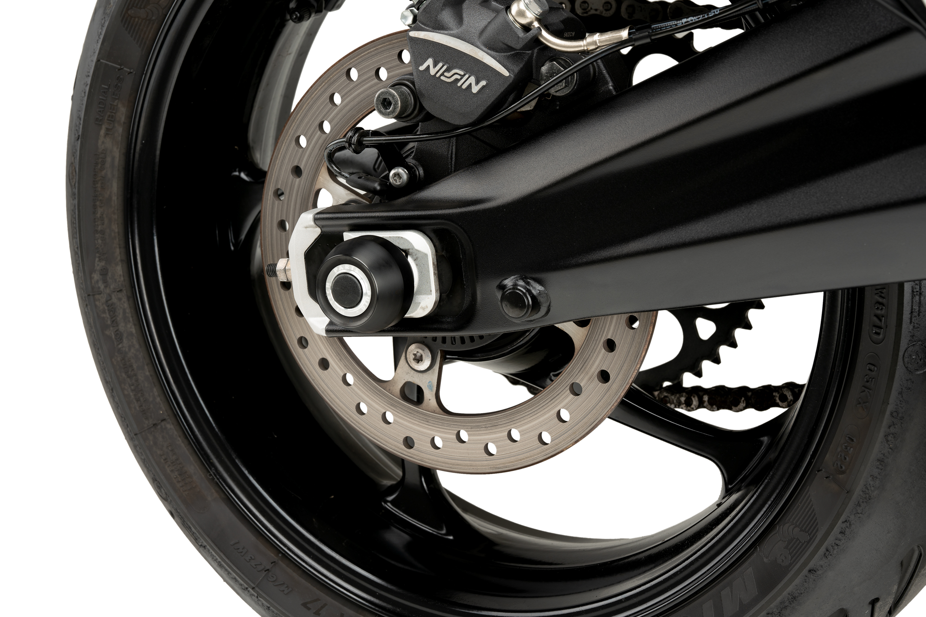 Offer greater protection to the swingarm of your motorcycle with the new PHB 19 rear axle slider from PUIG. Machined from a nylon block with a reduced weight of 265 gr, it will protect this delicate area of your motorcycle while it reinforces the suspension. In addition to the protective function, its design inspired by the "Racing" style will show the true competitive character of your bike.