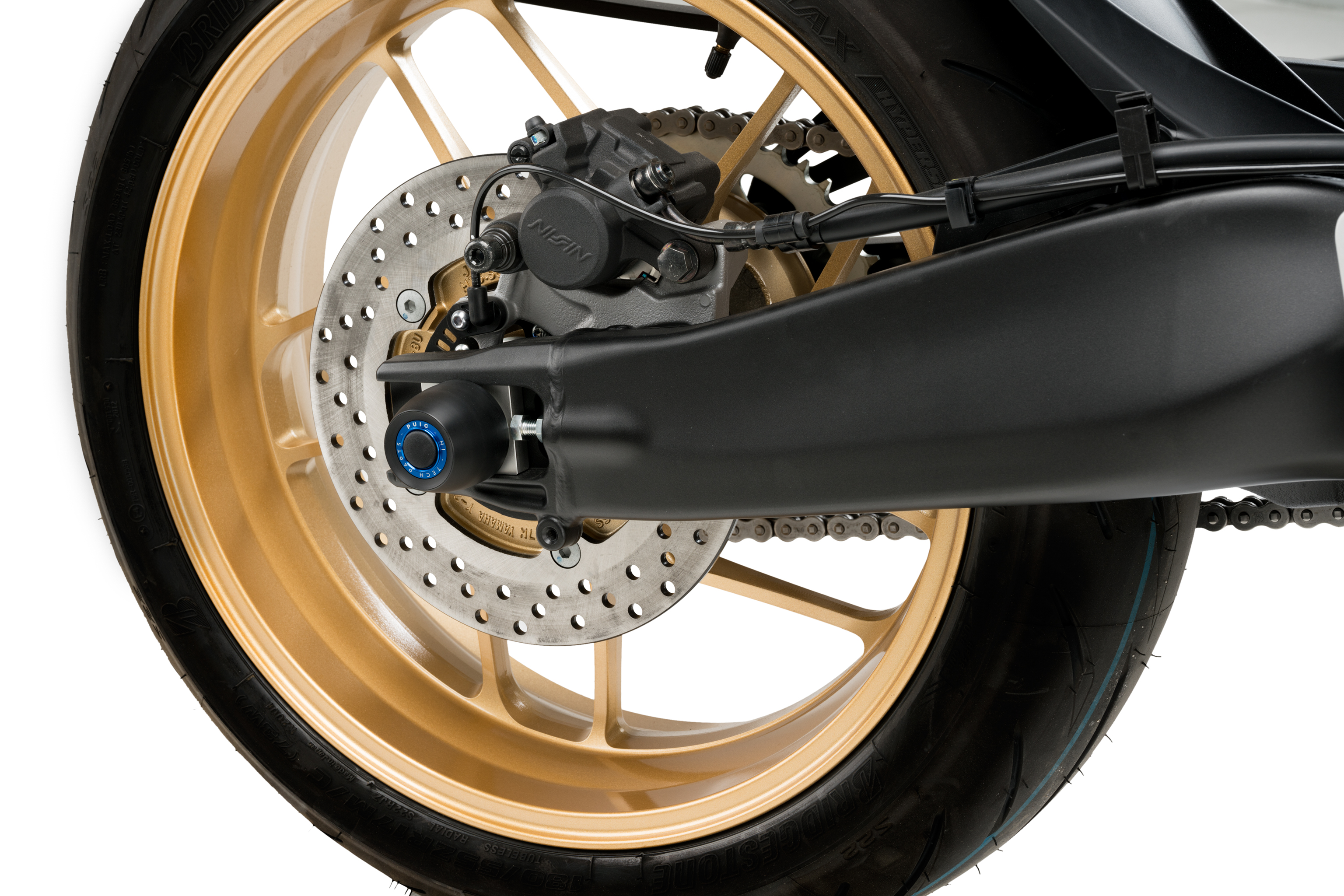 Offer greater protection to the swingarm of your motorcycle with the new PHB 19 rear axle slider from PUIG. Machined from a nylon block with a reduced weight of 265 gr, it will protect this delicate area of your motorcycle while it reinforces the suspension. In addition to the protective function, its design inspired by the "Racing" style will show the true competitive character of your bike.