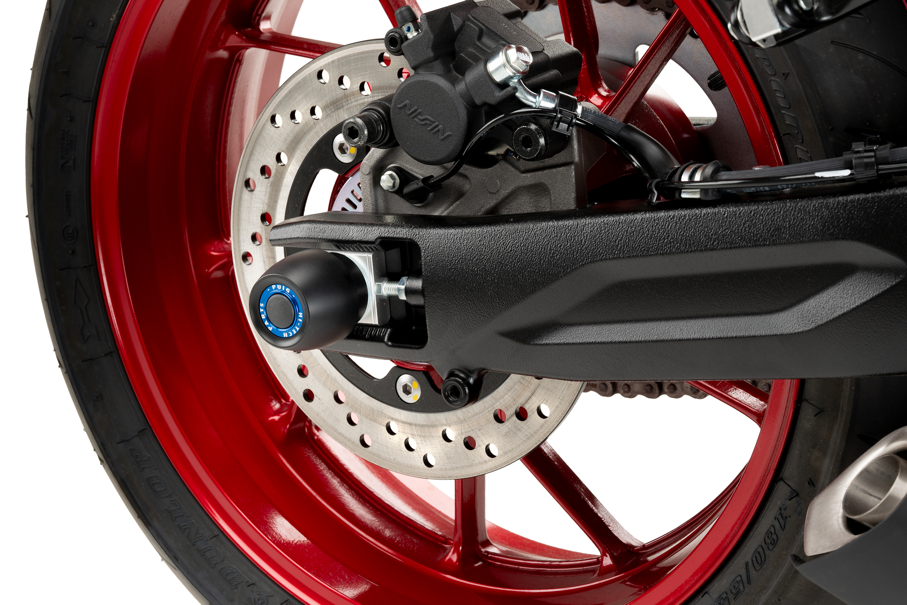 Offer greater protection to the swingarm of your motorcycle with the new PHB 19 rear axle slider from PUIG. Machined from a nylon block with a reduced weight of 265 gr, it will protect this delicate area of your motorcycle while it reinforces the suspension. In addition to the protective function, its design inspired by the "Racing" style will show the true competitive character of your bike.
