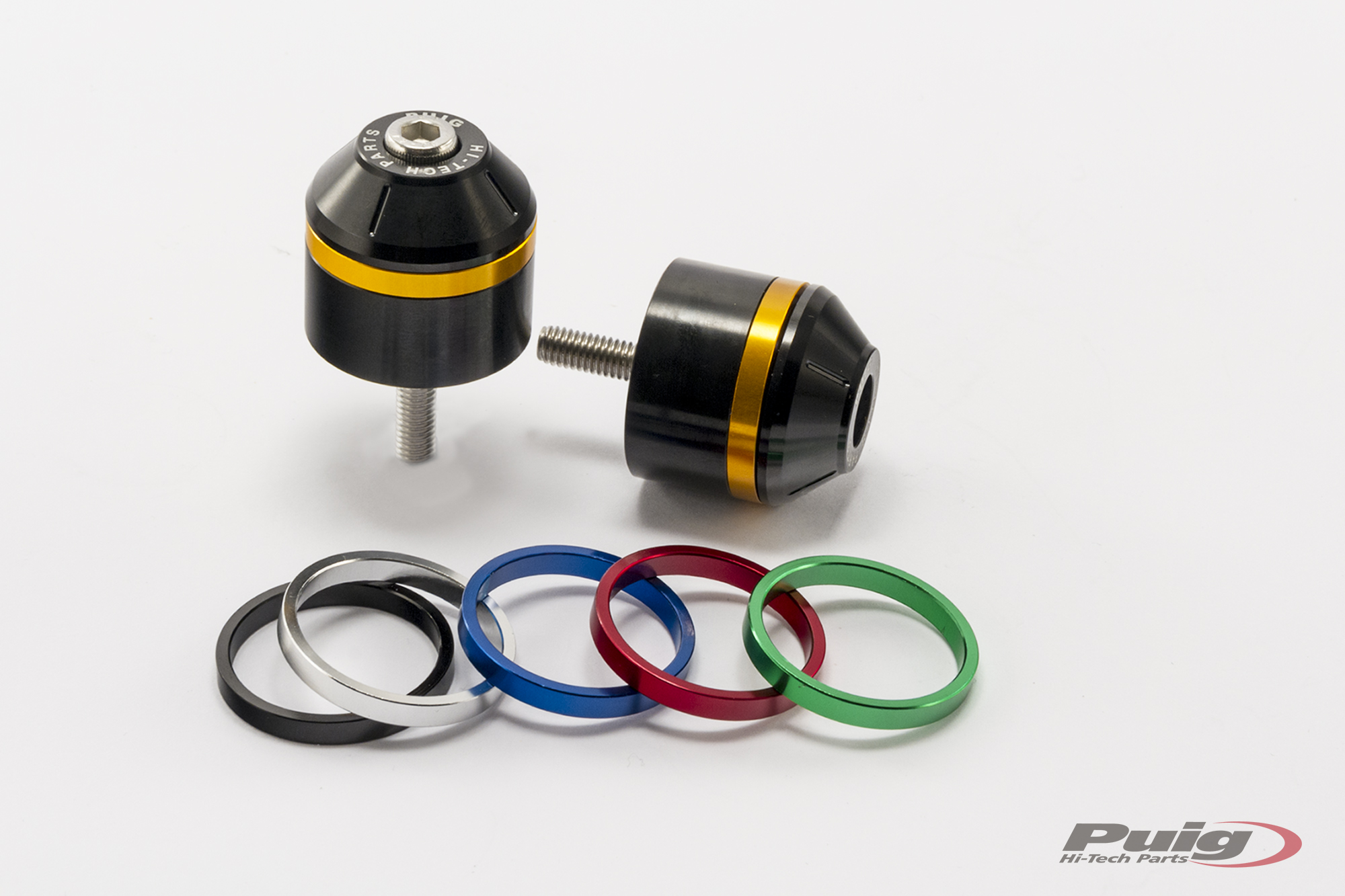 The piece is machined from billet aluminium (only 58g in weight and it measures 30mm), includes the particularity of having a rim embedded in the ends that will give a touch of color to the counterweight with a black finish. Regarding the hoops, PUIG offers a kit of 10 rings total (2 per color) to customize the motorcycle to your liking and includes the colors: black, blue, red, silver and gold. In case you want the green color, this is only used for reference Ref.8498N (Kawasaki and universal). It should be noted that the counterweights are offered in pairs. In the section of spare parts, PUIG also offers the possibility of acquiring the hoops of the counterweights.