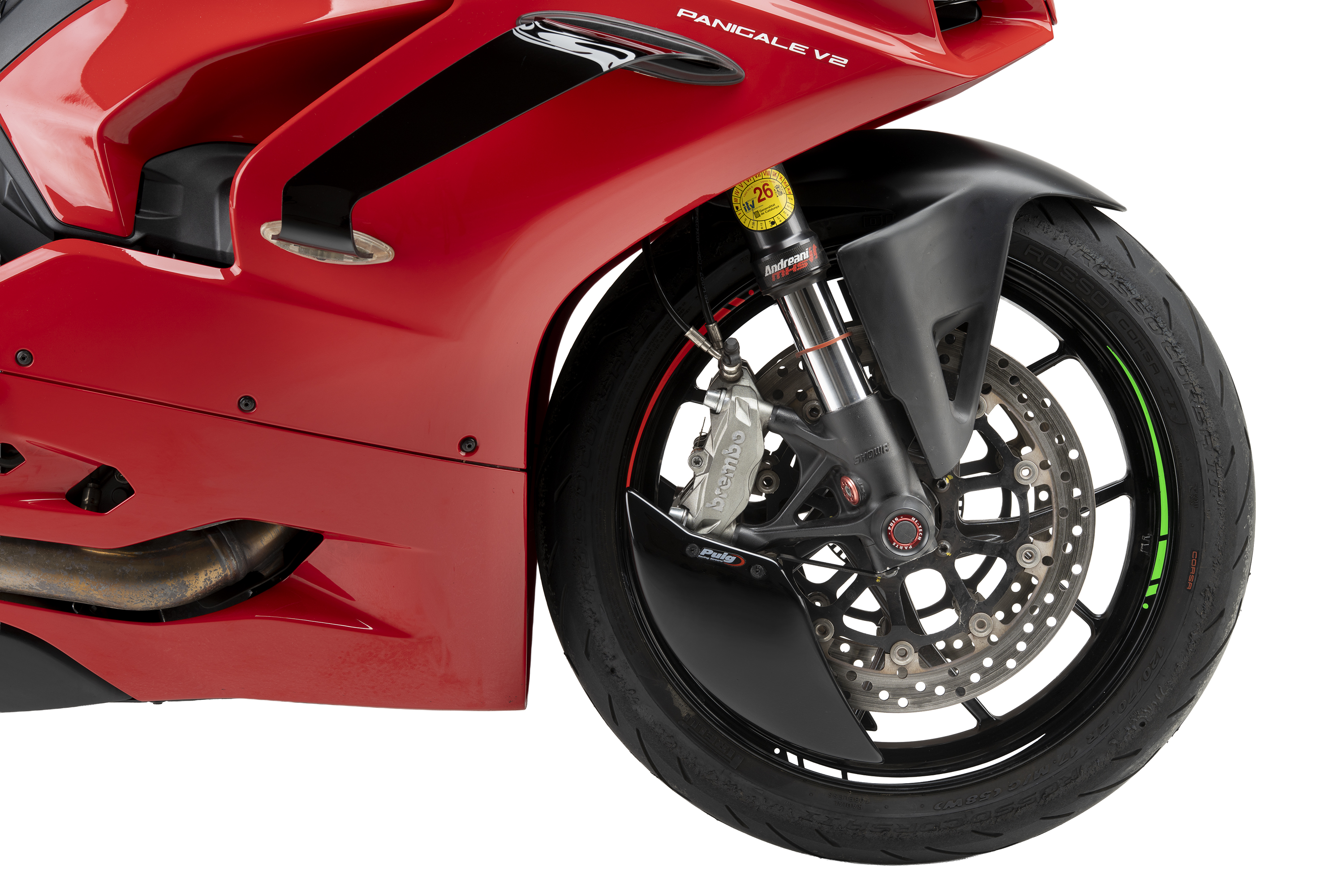 Its main function is to reduce the turbulence generated around the front wheel, providing greater stability and precision, especially at high speeds or under demanding riding conditions. Thanks to this effect, the motorcycle offers more predictable handling and superior comfort for the rider.