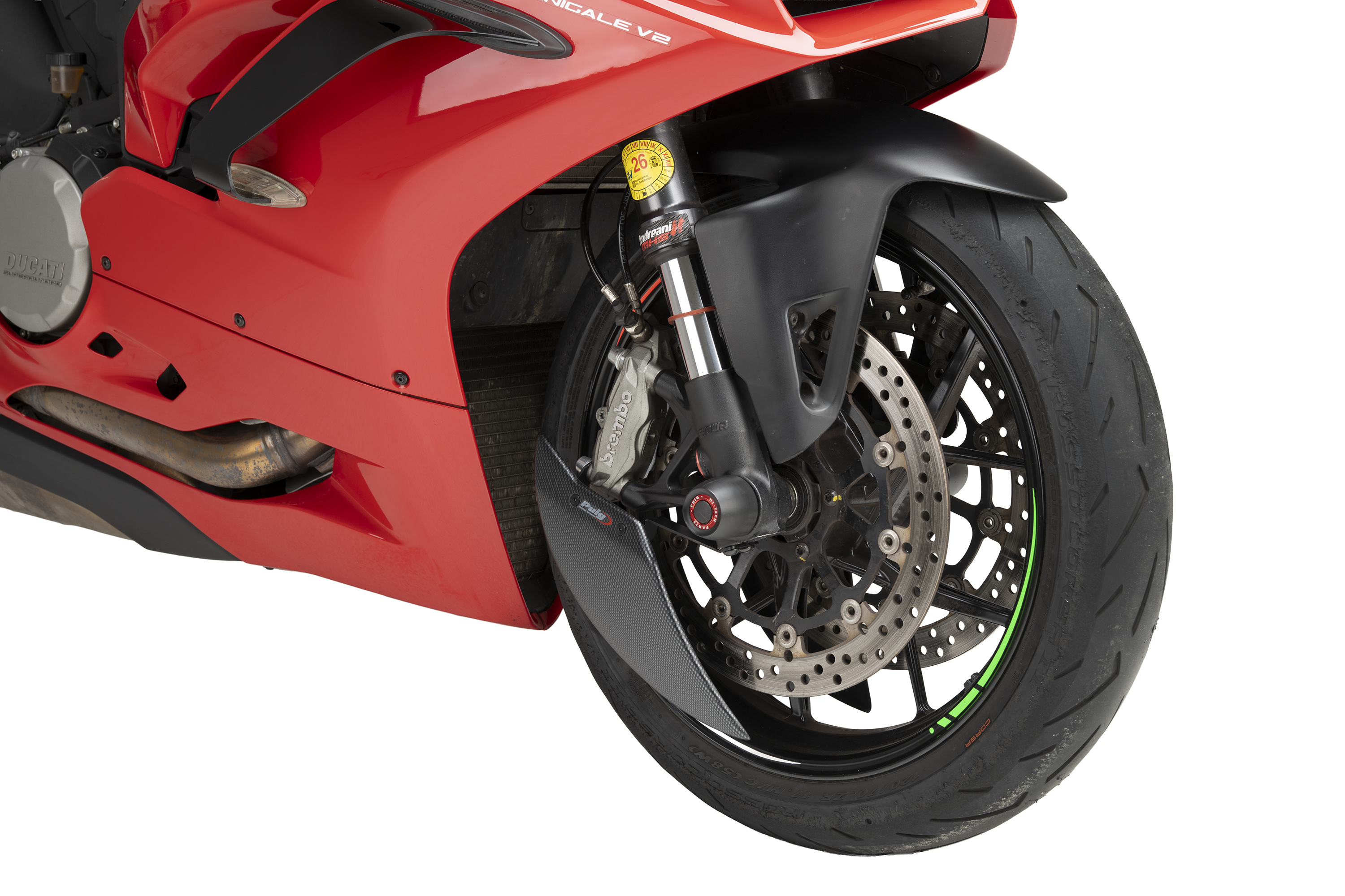 Its main function is to reduce the turbulence generated around the front wheel, providing greater stability and precision, especially at high speeds or under demanding riding conditions. Thanks to this effect, the motorcycle offers more predictable handling and superior comfort for the rider.
