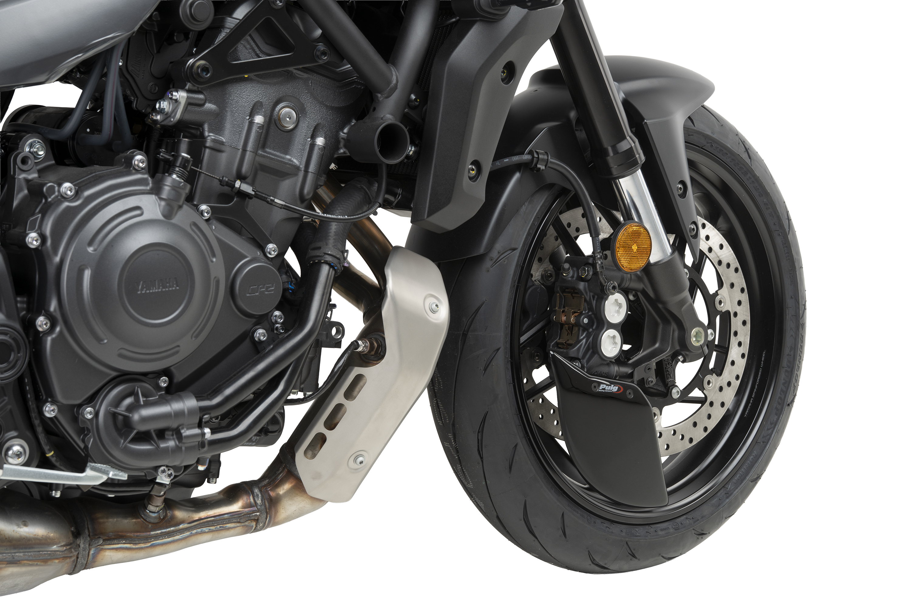 Its main function is to reduce the turbulence generated around the front wheel, providing greater stability and precision, especially at high speeds or under demanding riding conditions. Thanks to this effect, the motorcycle offers more predictable handling and superior comfort for the rider.