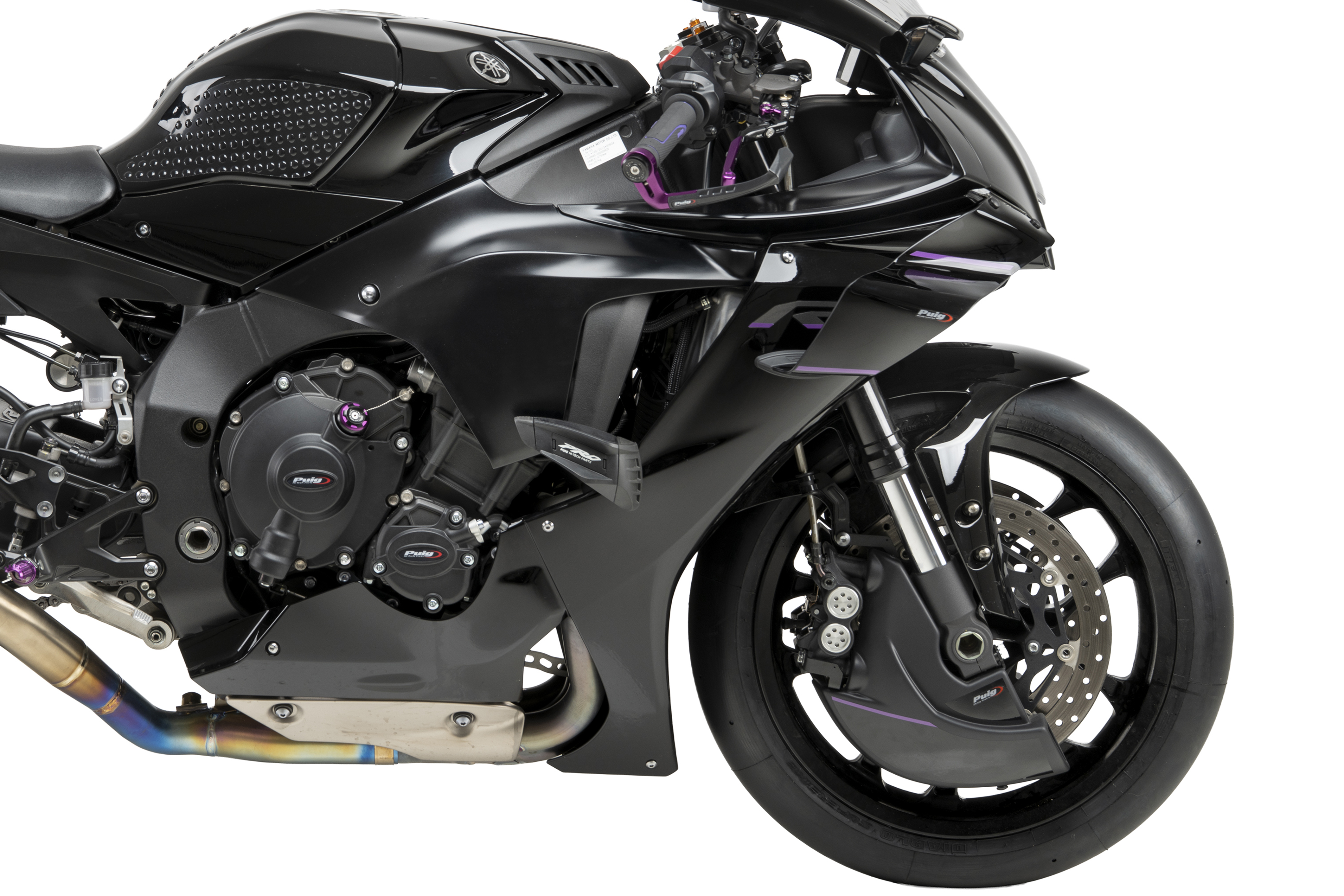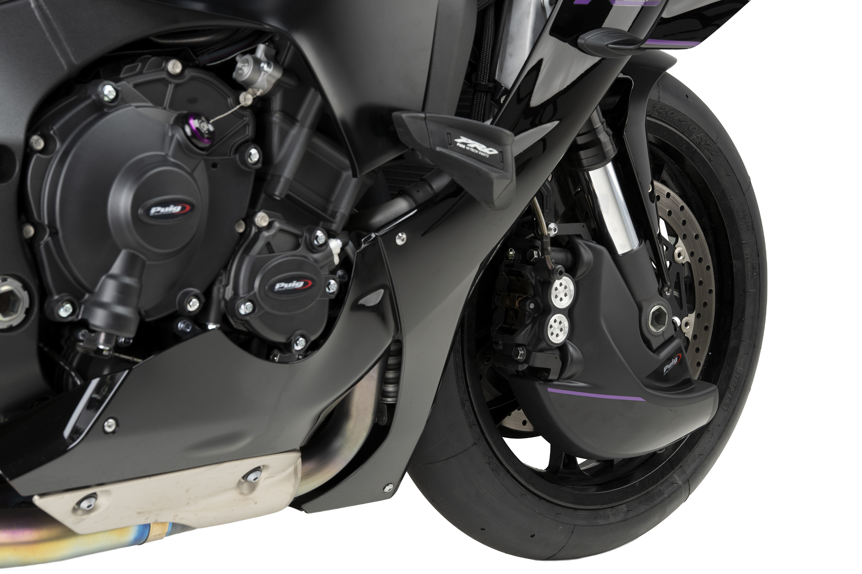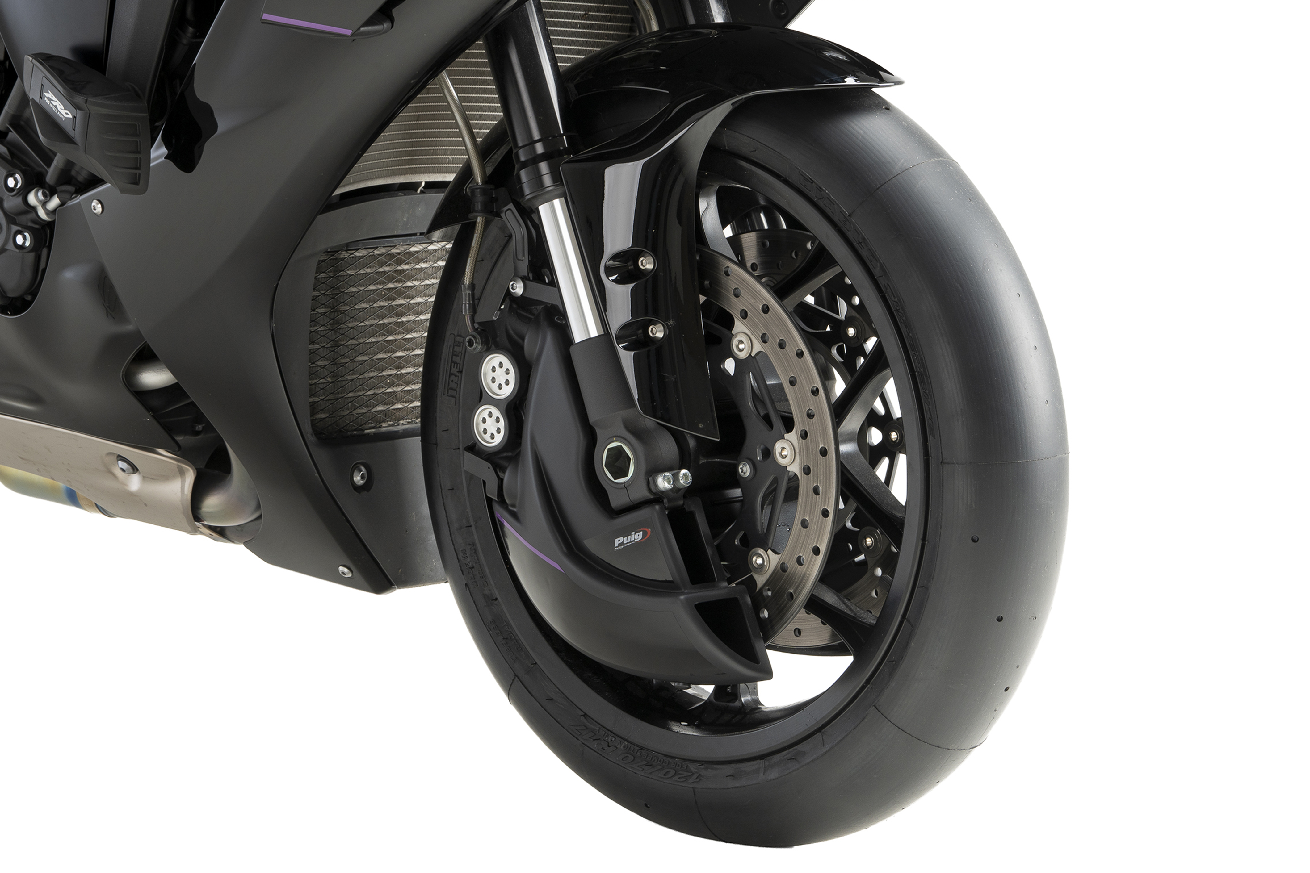 Its studied design, in addition to providing a more sporty and personalized aesthetic, eliminates turbulence at the front wheel by creating a partial lenticular cover that favors the motorcycle's aerodynamics, especially at high speeds. Includes sturdy, lightweight aluminum brackets finished in discreet textured black.
